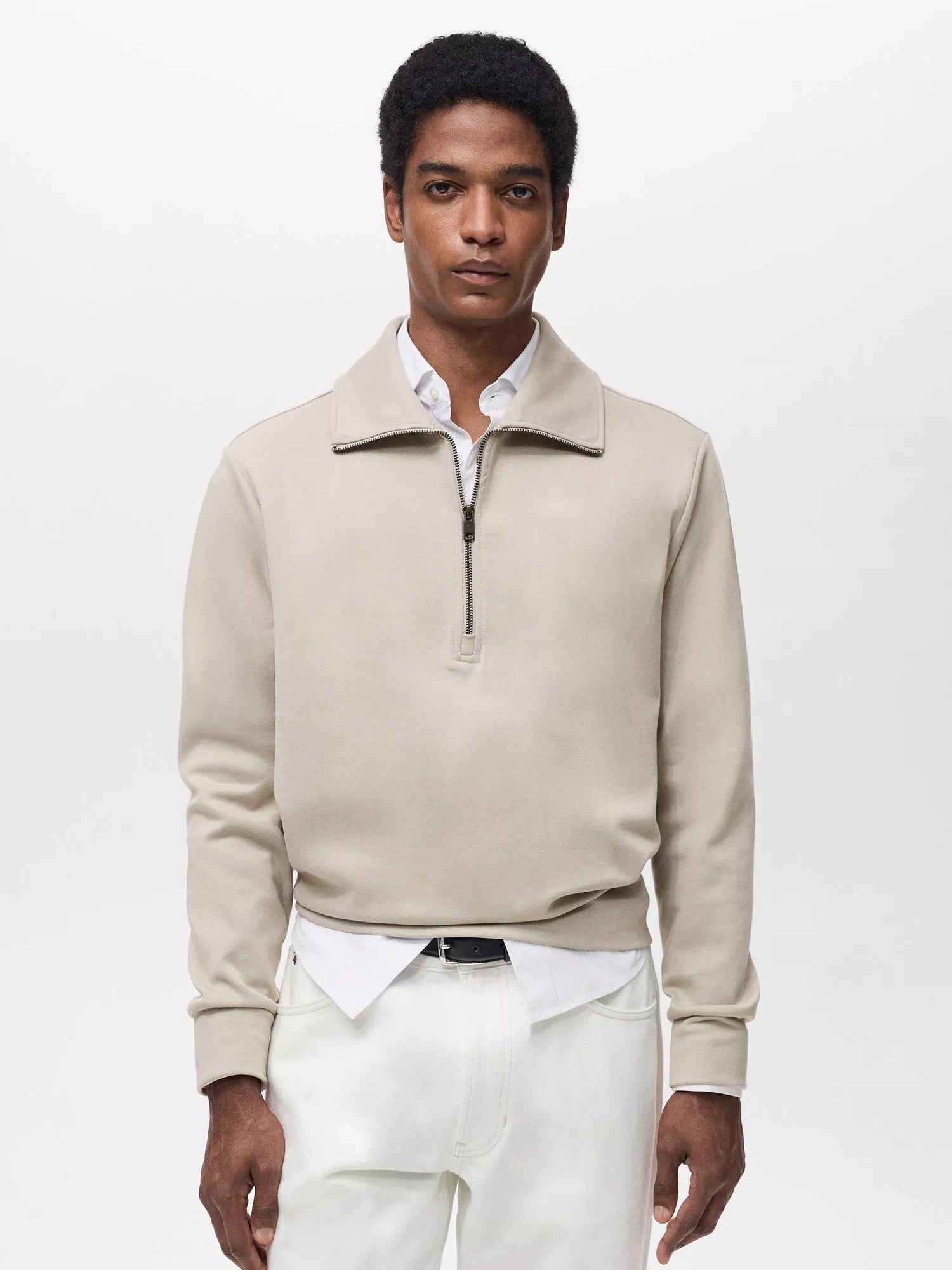 A cool-weather piece that you'll reach for time and time again, this half zip sweatshirt from Mango lends itself to layering thanks to its light cotton blend and regular fit.