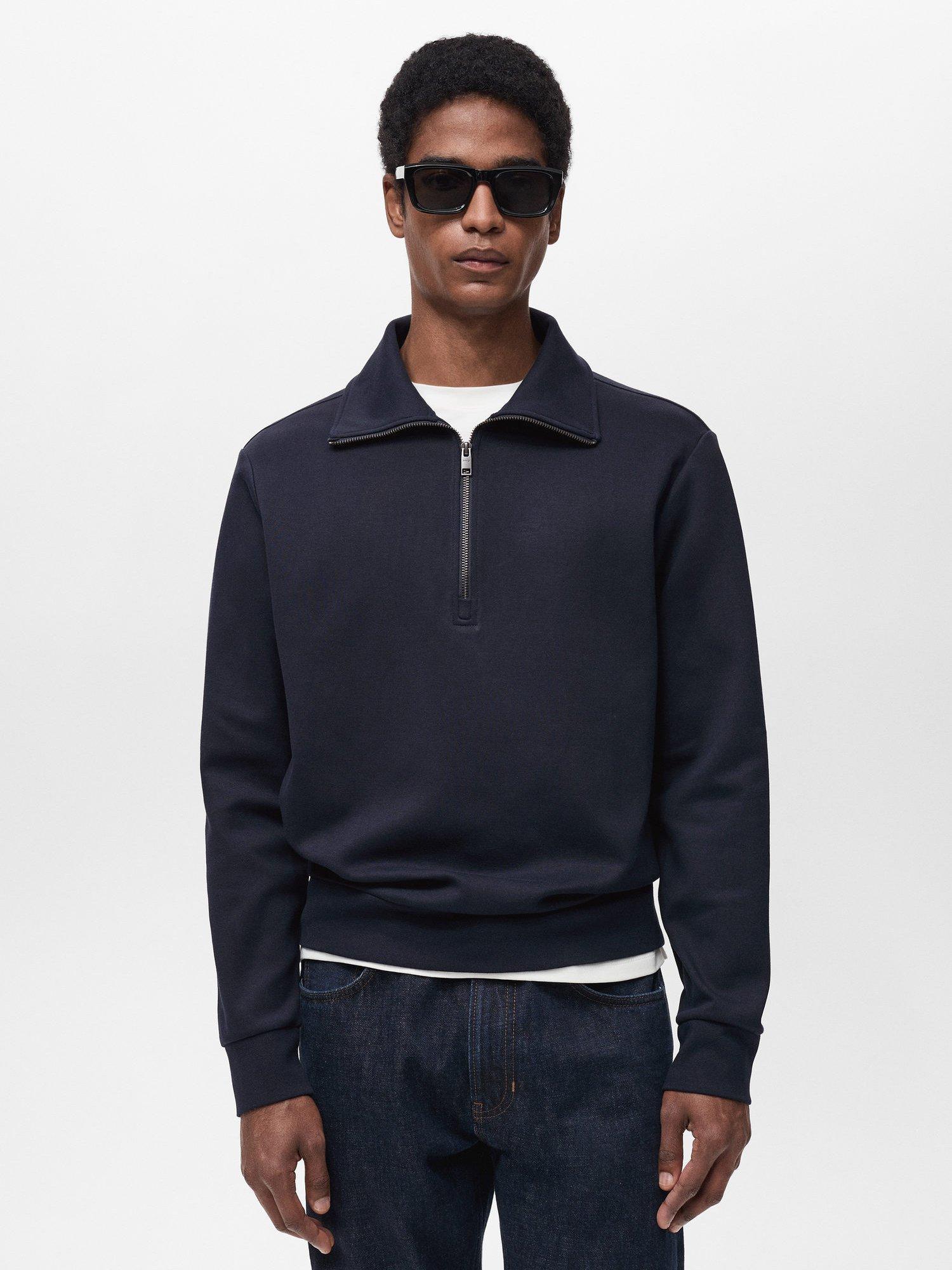 A cool-weather piece that you'll reach for time and time again, this half zip sweatshirt from Mango lends itself to layering thanks to its light cotton blend and regular fit.