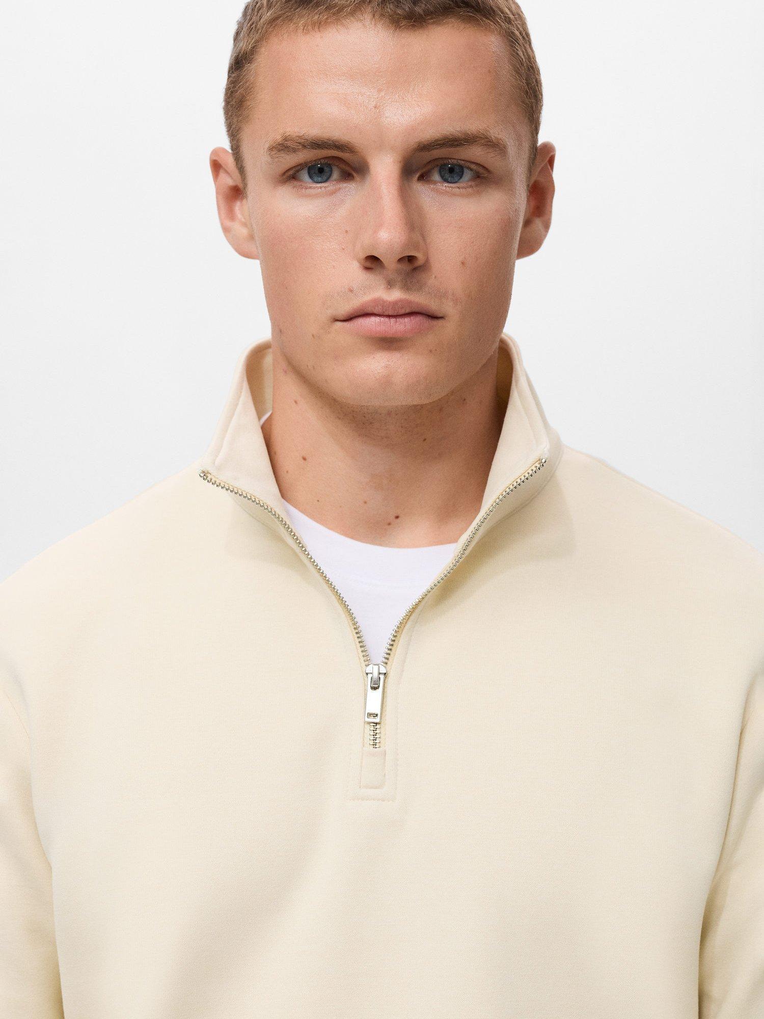 This medium-weight zip neck sweatshirt offers comfort and everyday versatility. Its plain design and long sleeves make it easy to layer, whether you are relaxing or keeping active. The cotton blend feels soft and delivers all-day ease.