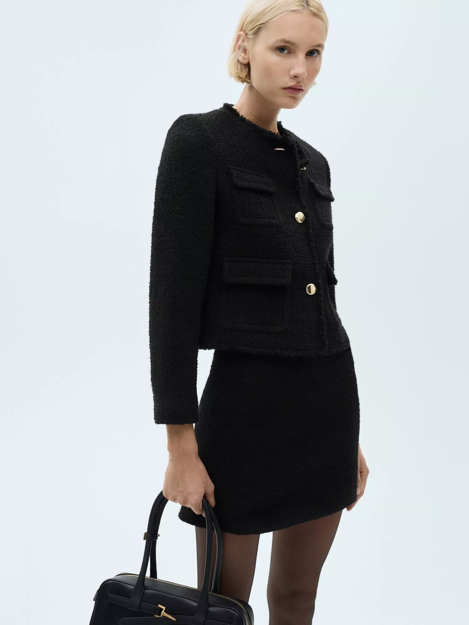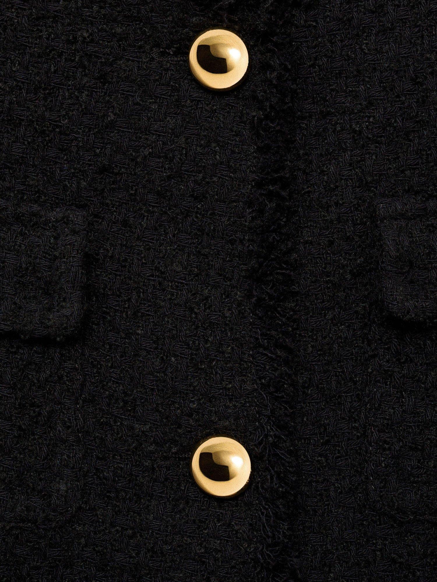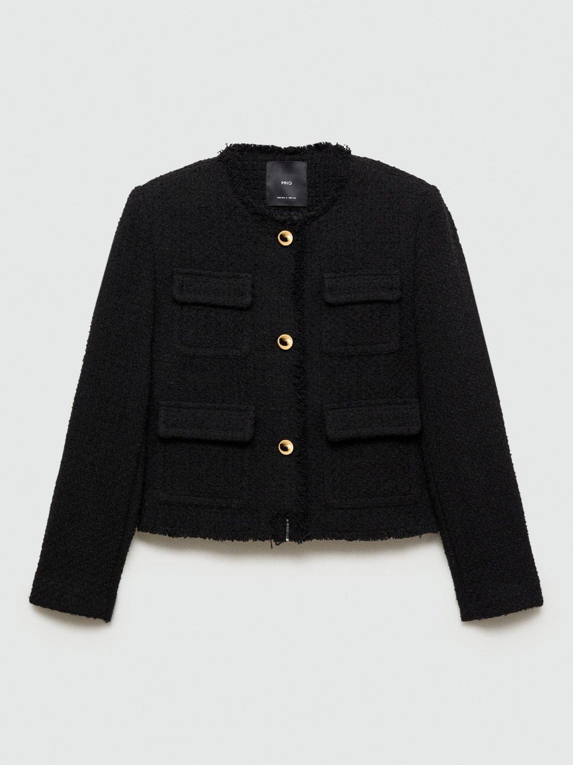 Designed with plenty of pockets, this tailored jacket by Mango features a fuss-free round neckline, a boxy fit and is made from a comfortable cotton blend tweed with frayed edging.