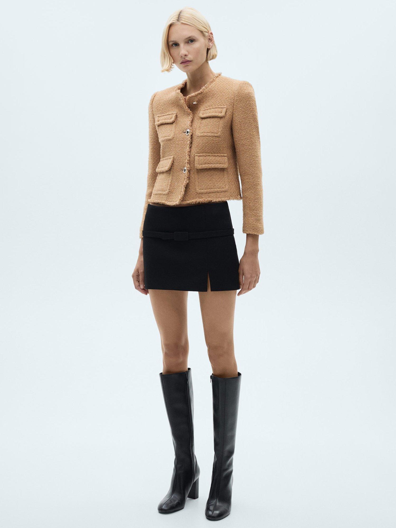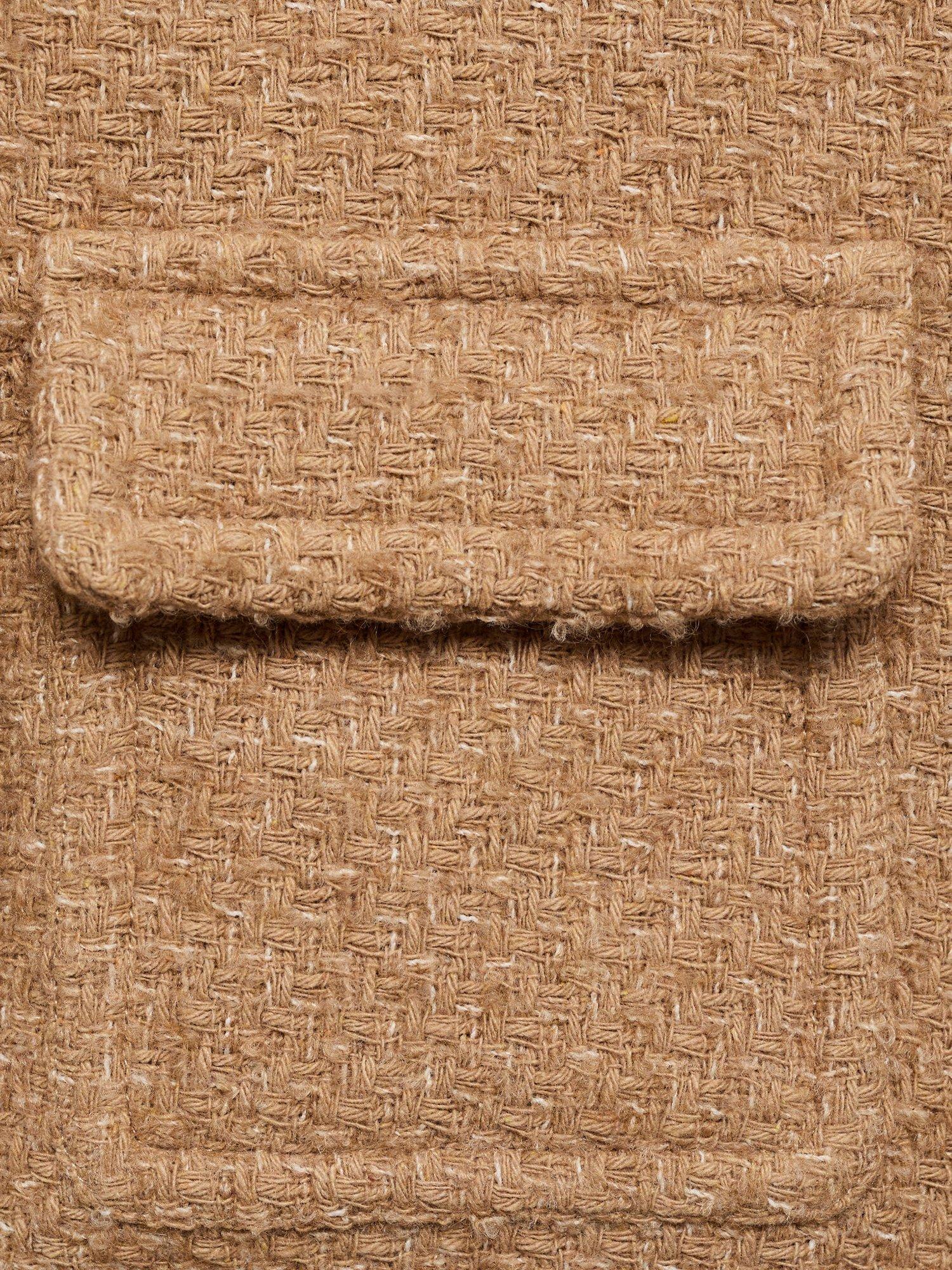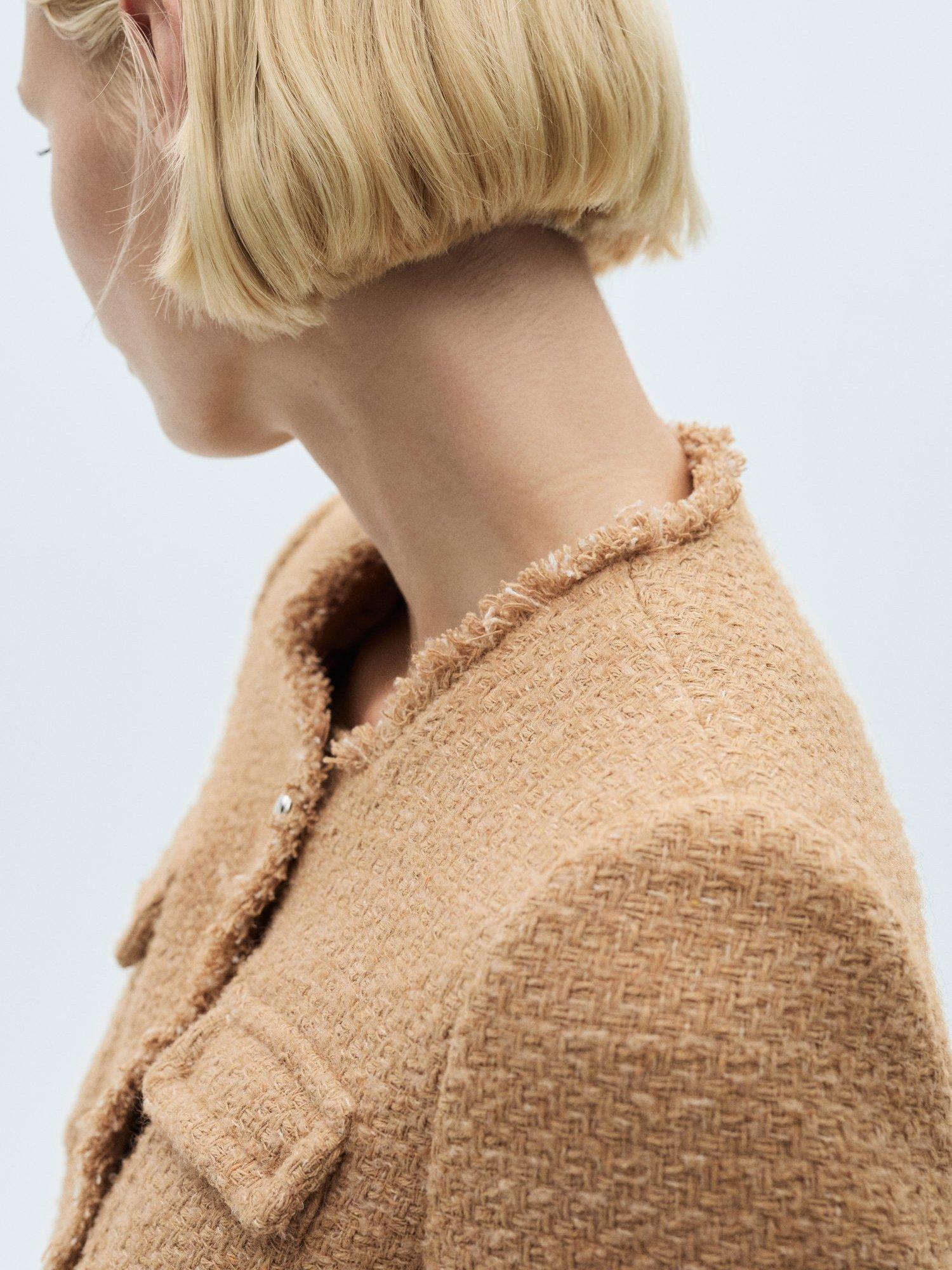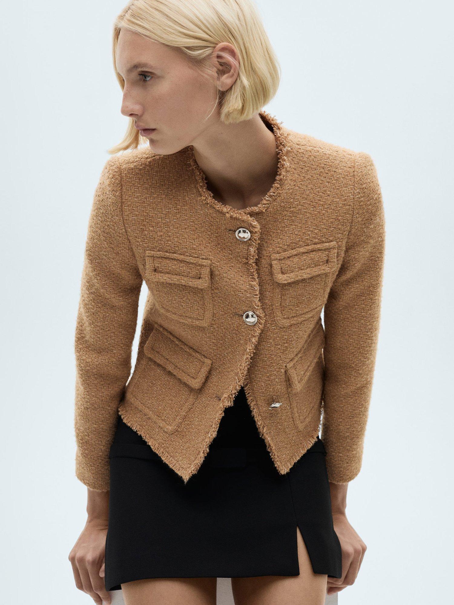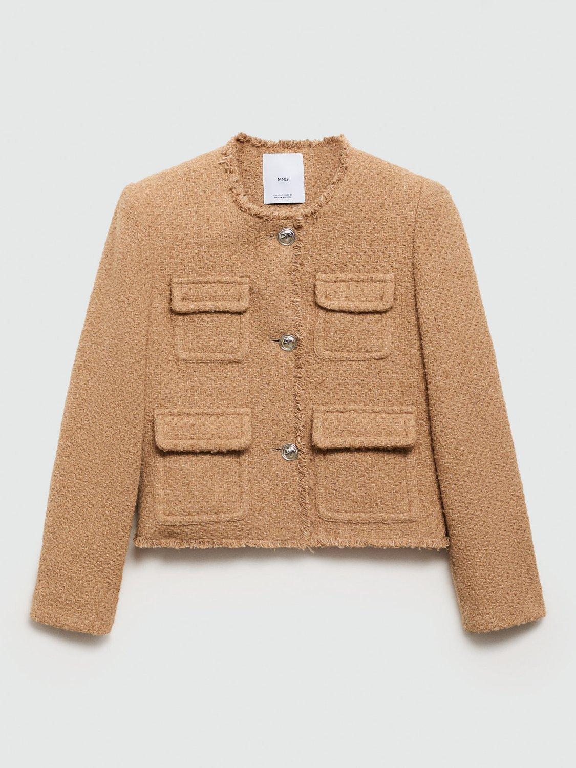Designed with plenty of pockets, this tailored jacket by Mango features a fuss-free round neckline, a boxy fit and is made from a comfortable cotton blend tweed with frayed edging.