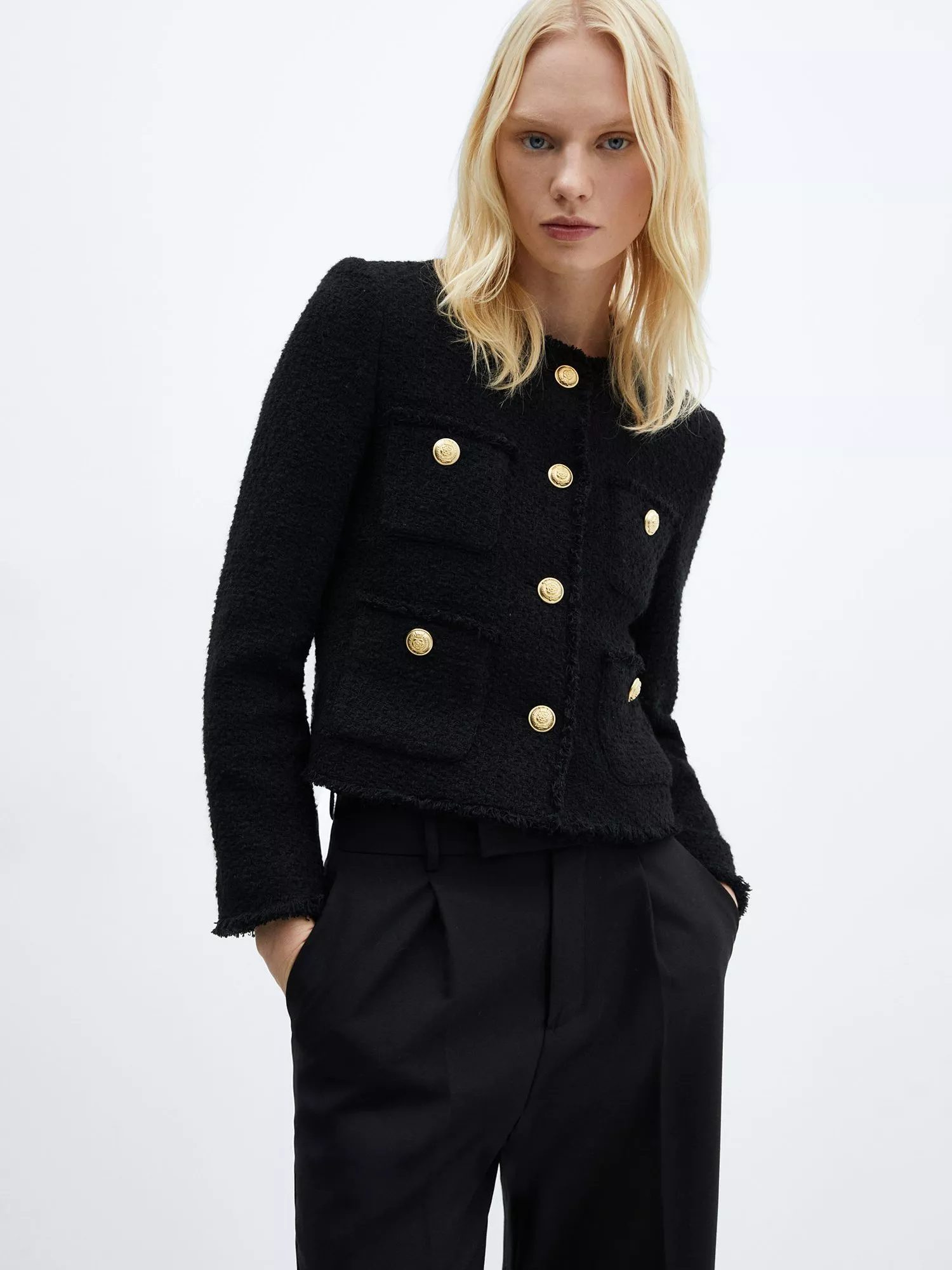 A smart outerwear piece that will pull any look together, this blazer from Mango flatters the figure with its cropped cut.