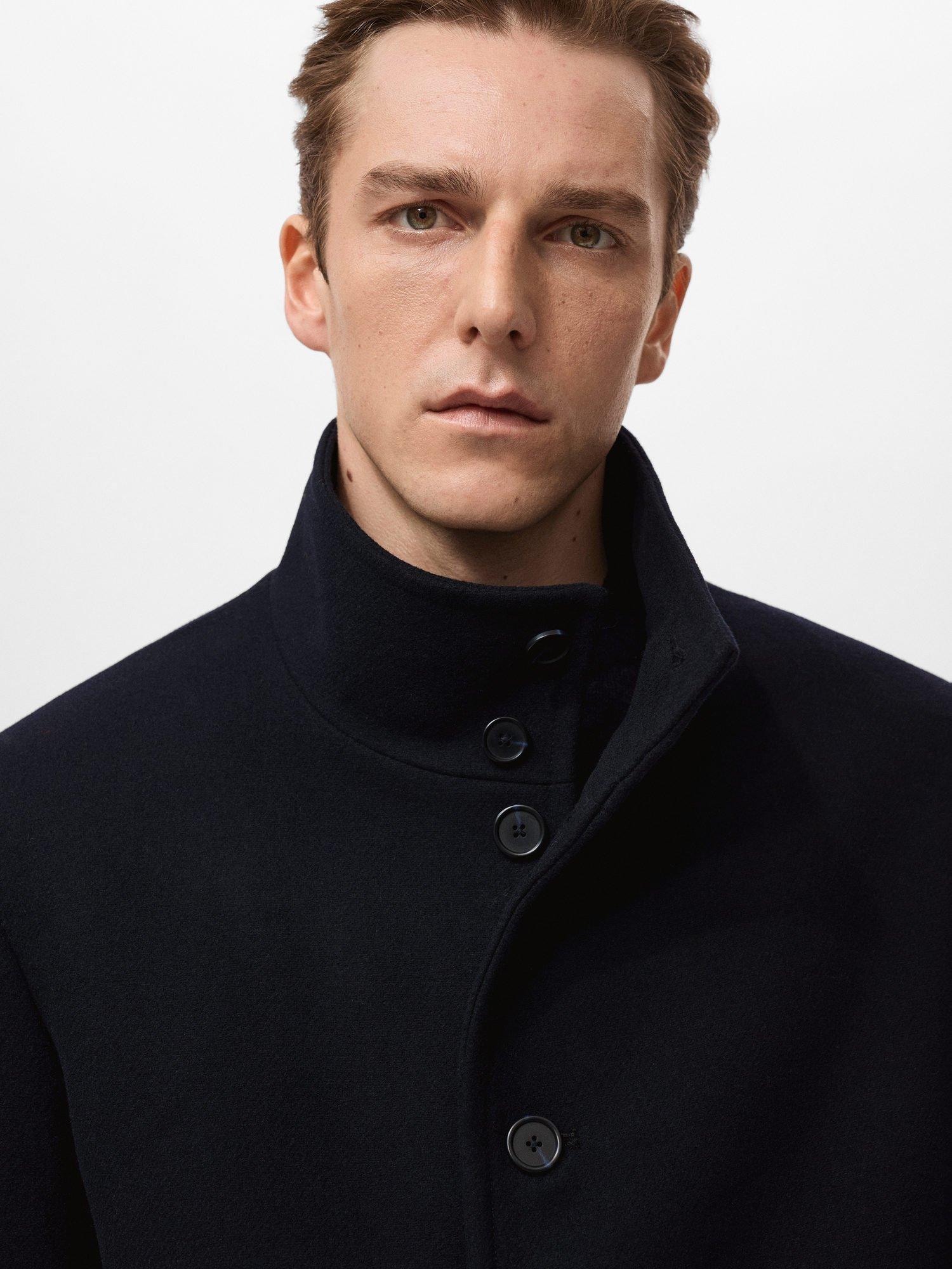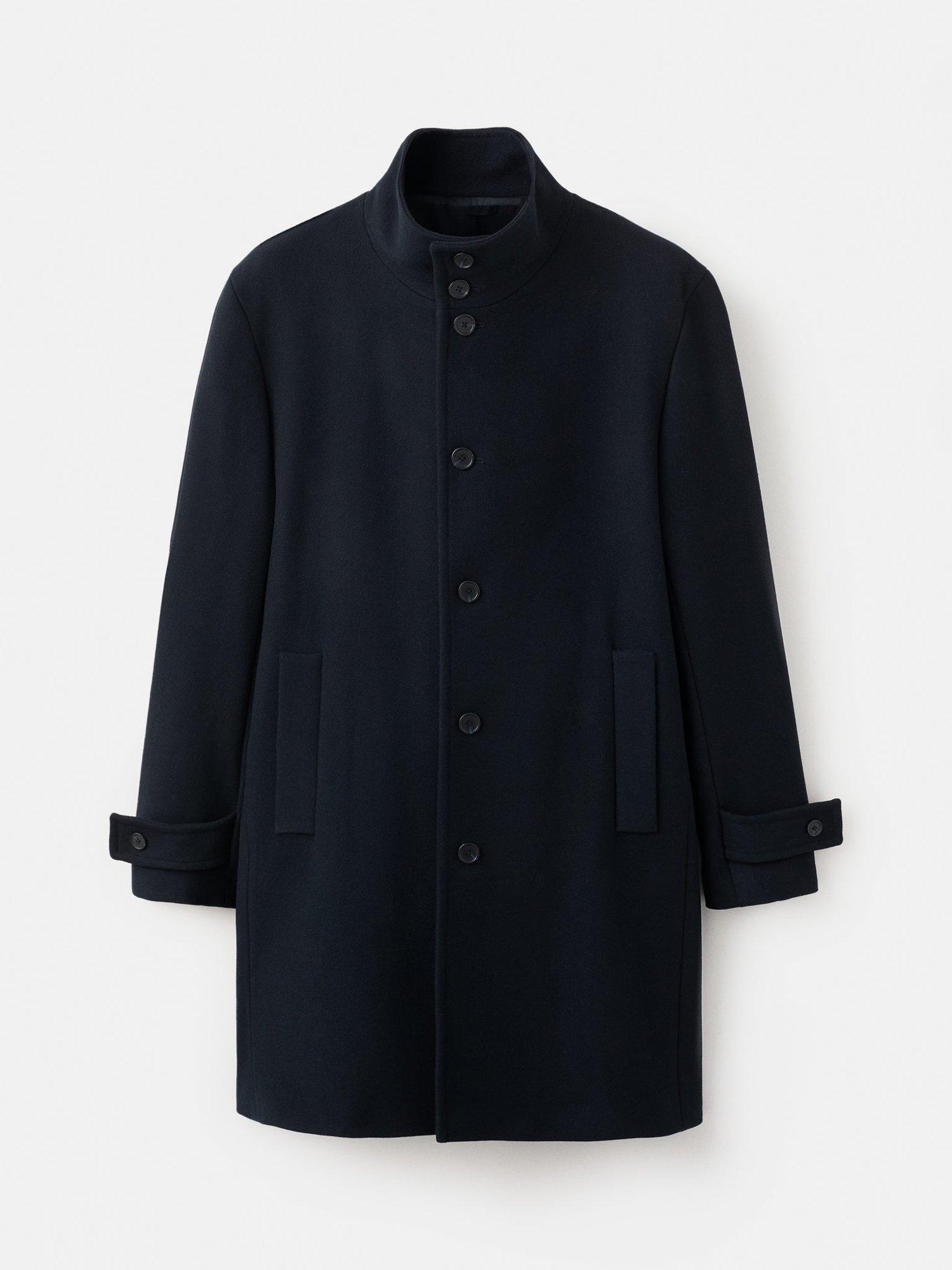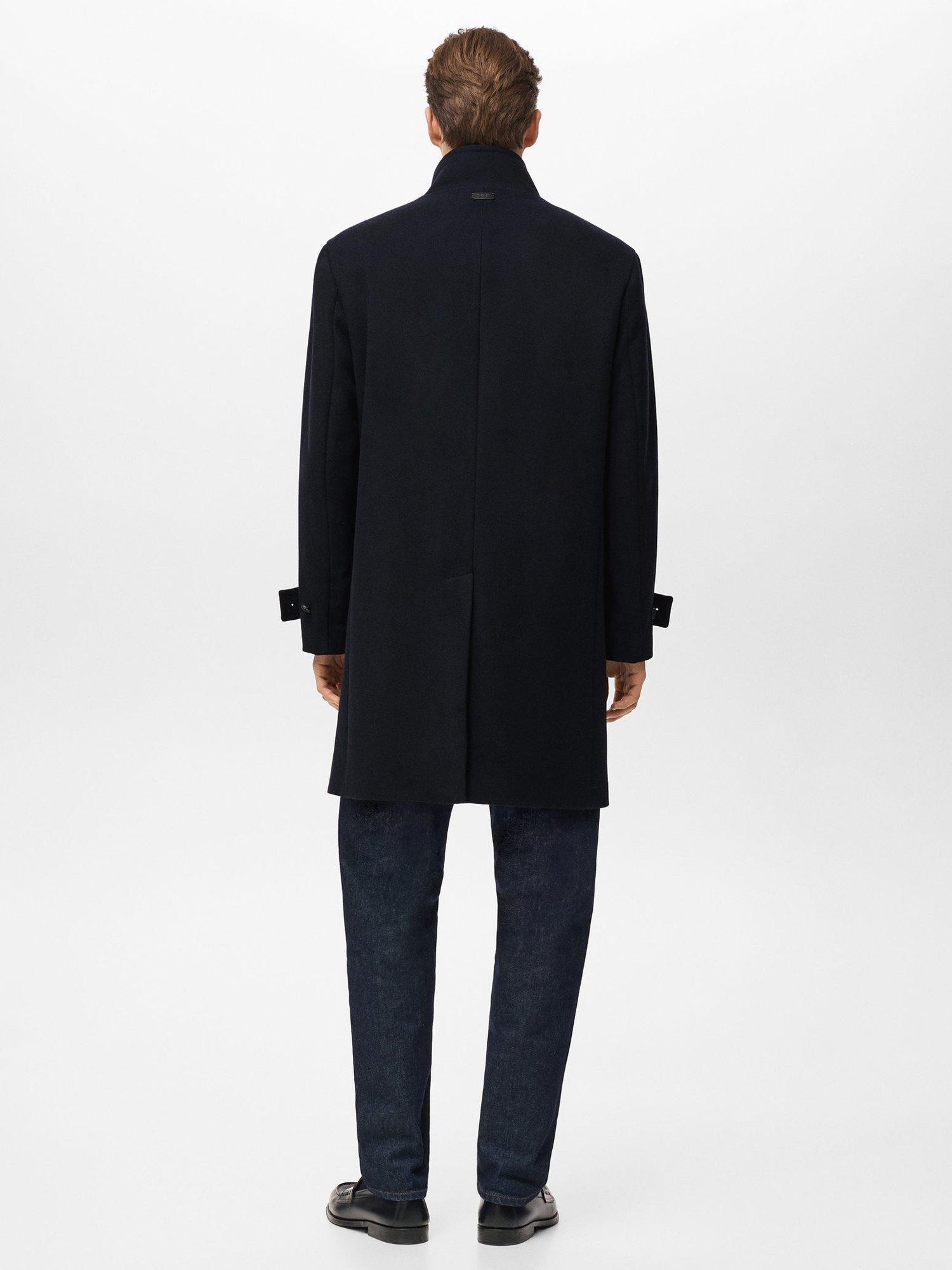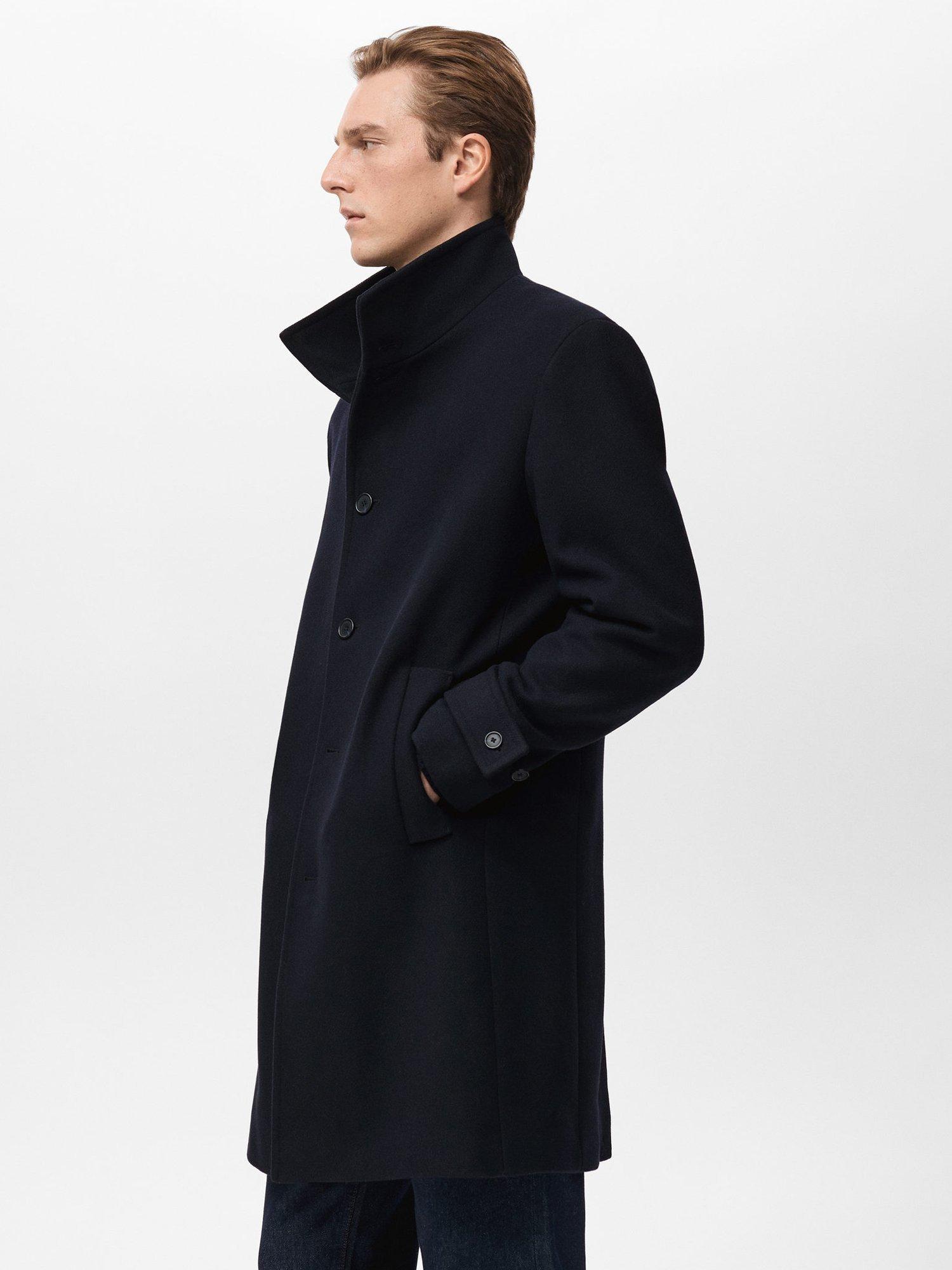 MangoWool Blend Funnel Neck Overcoat, Navy
