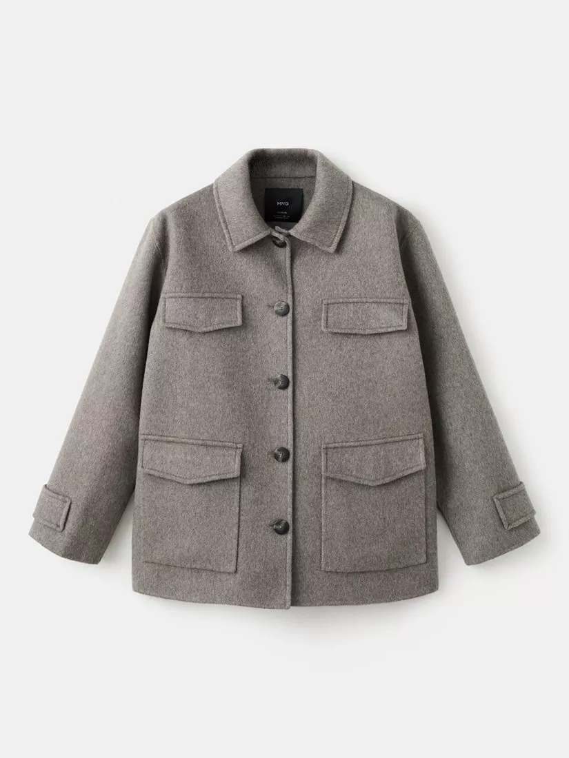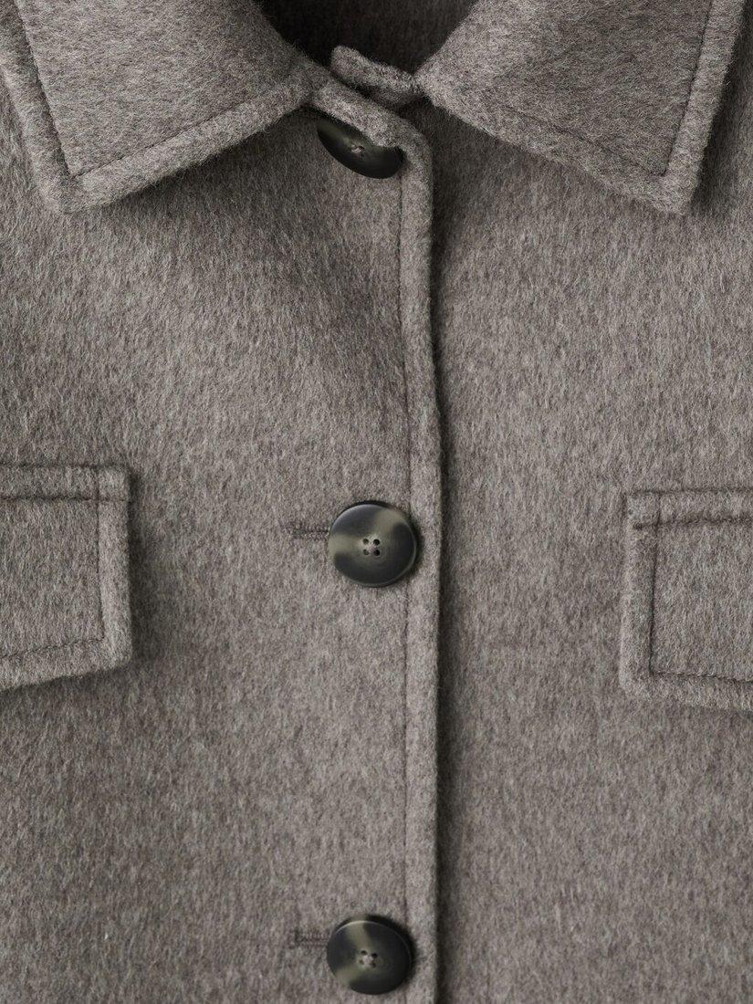 This long-sleeve shacket delivers comfort and warmth with its wool blend, finished with a collar and button fastening. Ideal for layering on busy days.