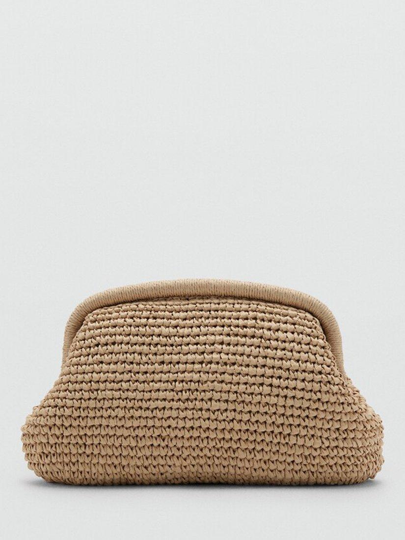 A textured clutch crafted from woven paper, designed with a structured silhouette and finished with a magnetic closure. Perfect for carrying evening essentials, it offers clever style and practical organisation for any occasion.