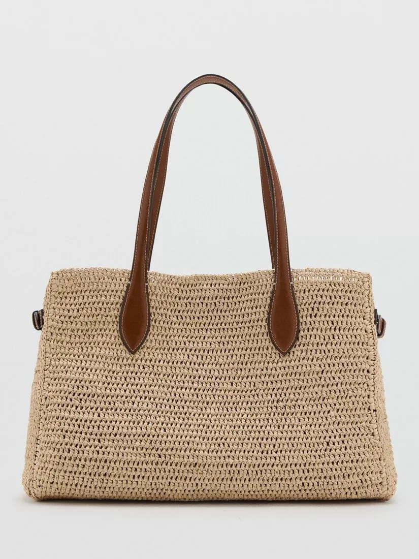 Effortless style meets practical design in this spacious natural fibre tote. Crafted from textured fabric, it features comfortable double handles and two long shoulder straps for versatile carry. Secured with a press stud fastening, it includes an inner zipped pocket and adjustable side buckles to customise your shape.