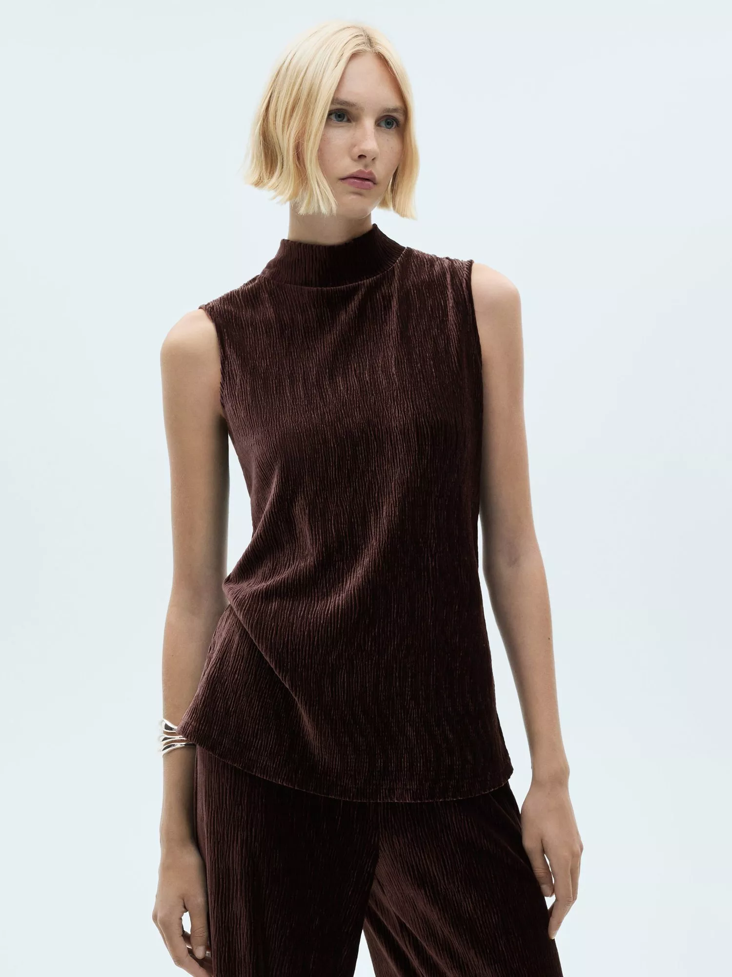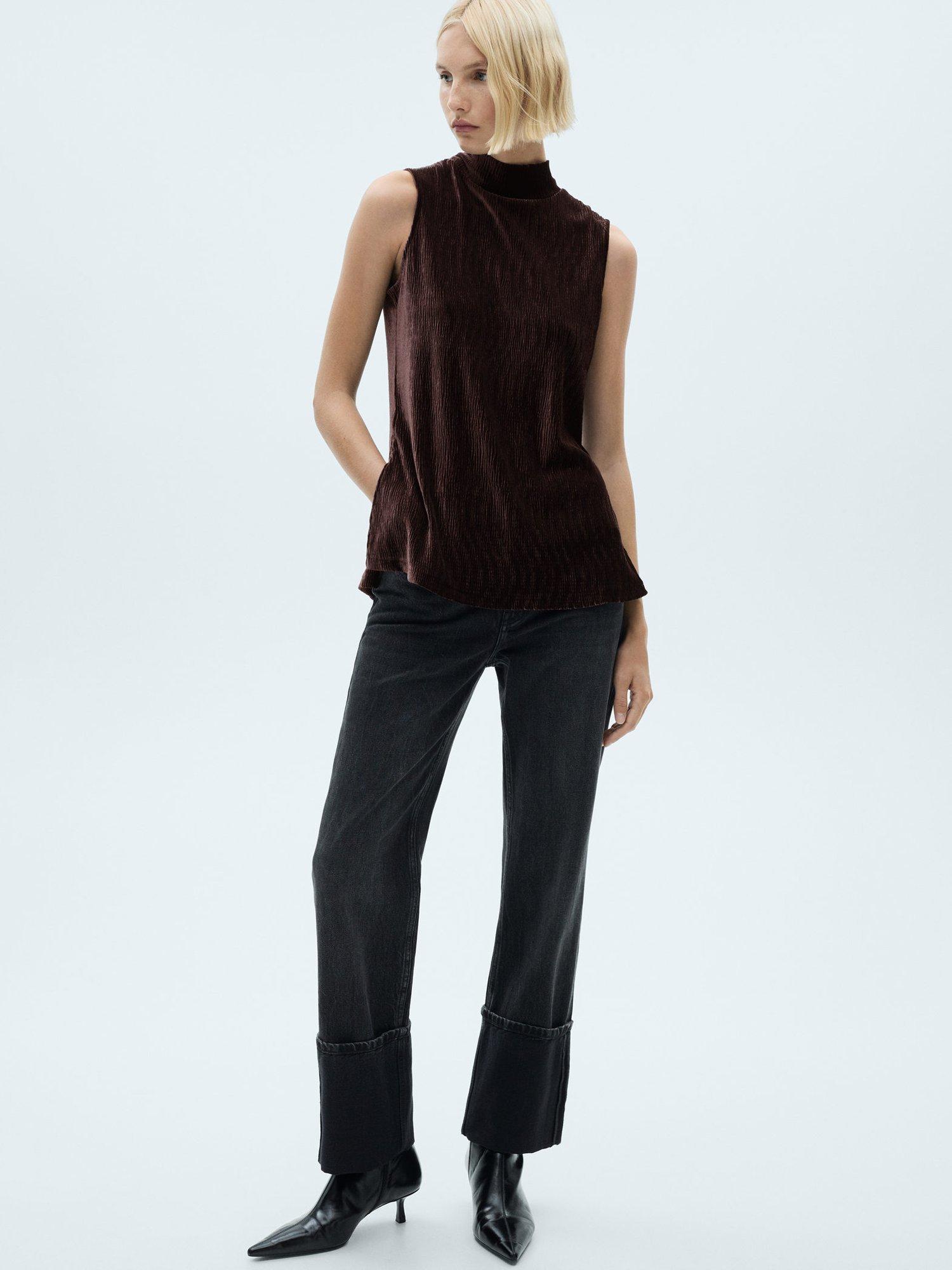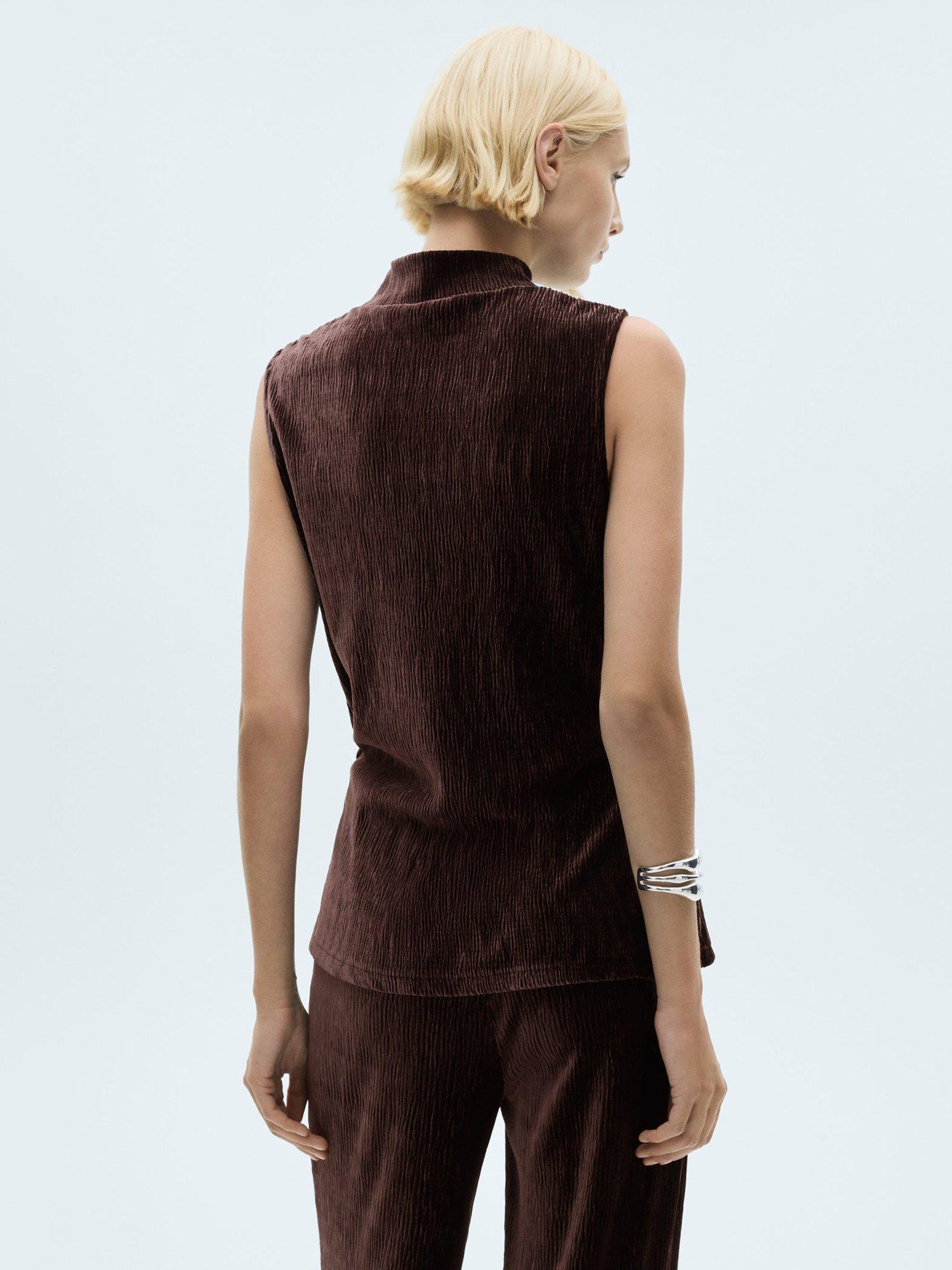A solo piece, this sleeveless top by Mango features a high neckline and an all over knitted shimmer design. Pair with the matching trousers for the ultimate look.