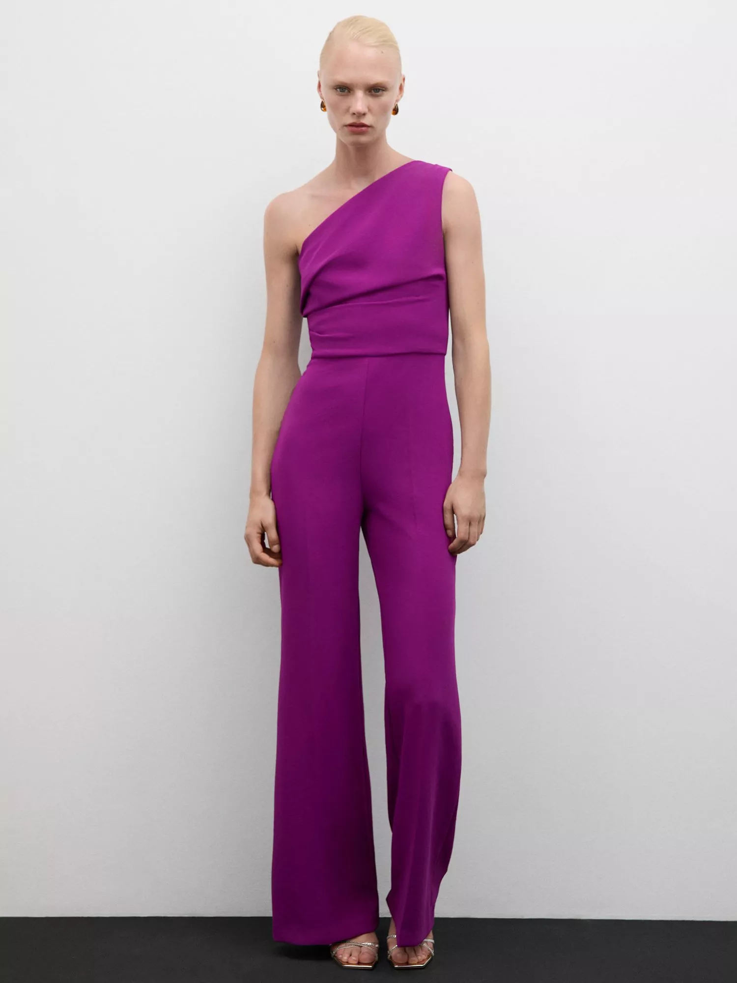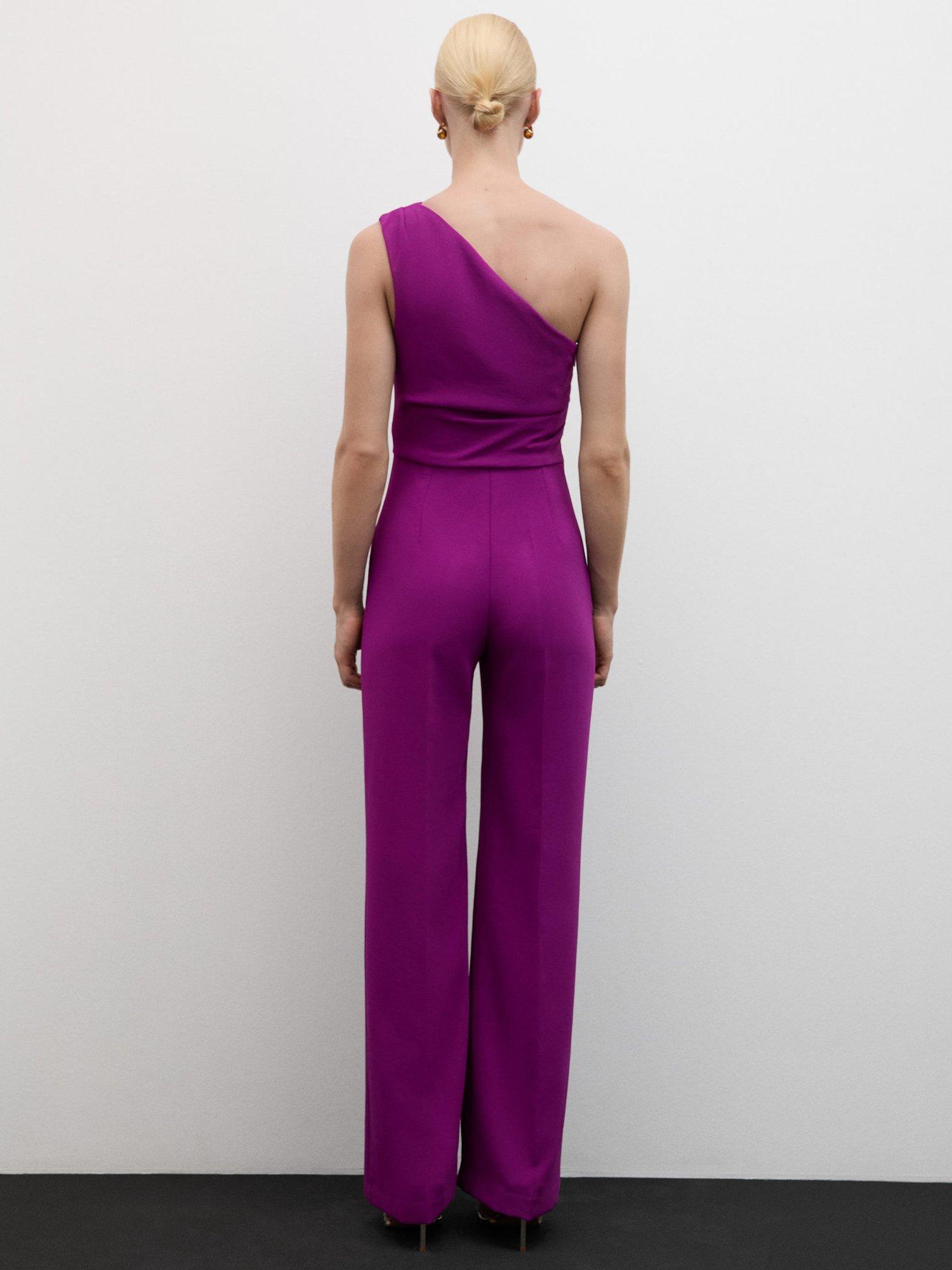 With a flattering asymmetric neck, this jumpsuit from Mango features ruching at the waist and falls to a straight leg. Pair with chunky gold accessories.