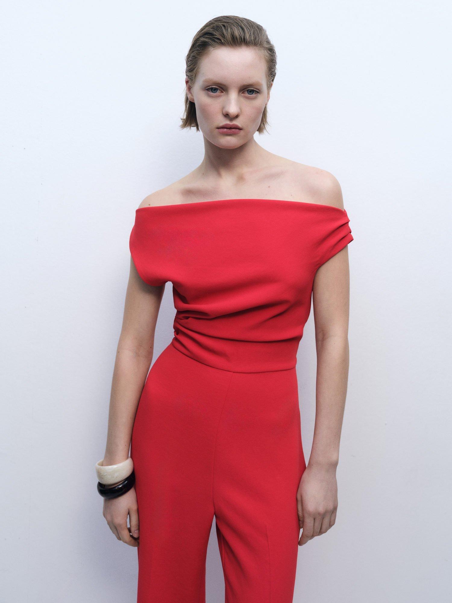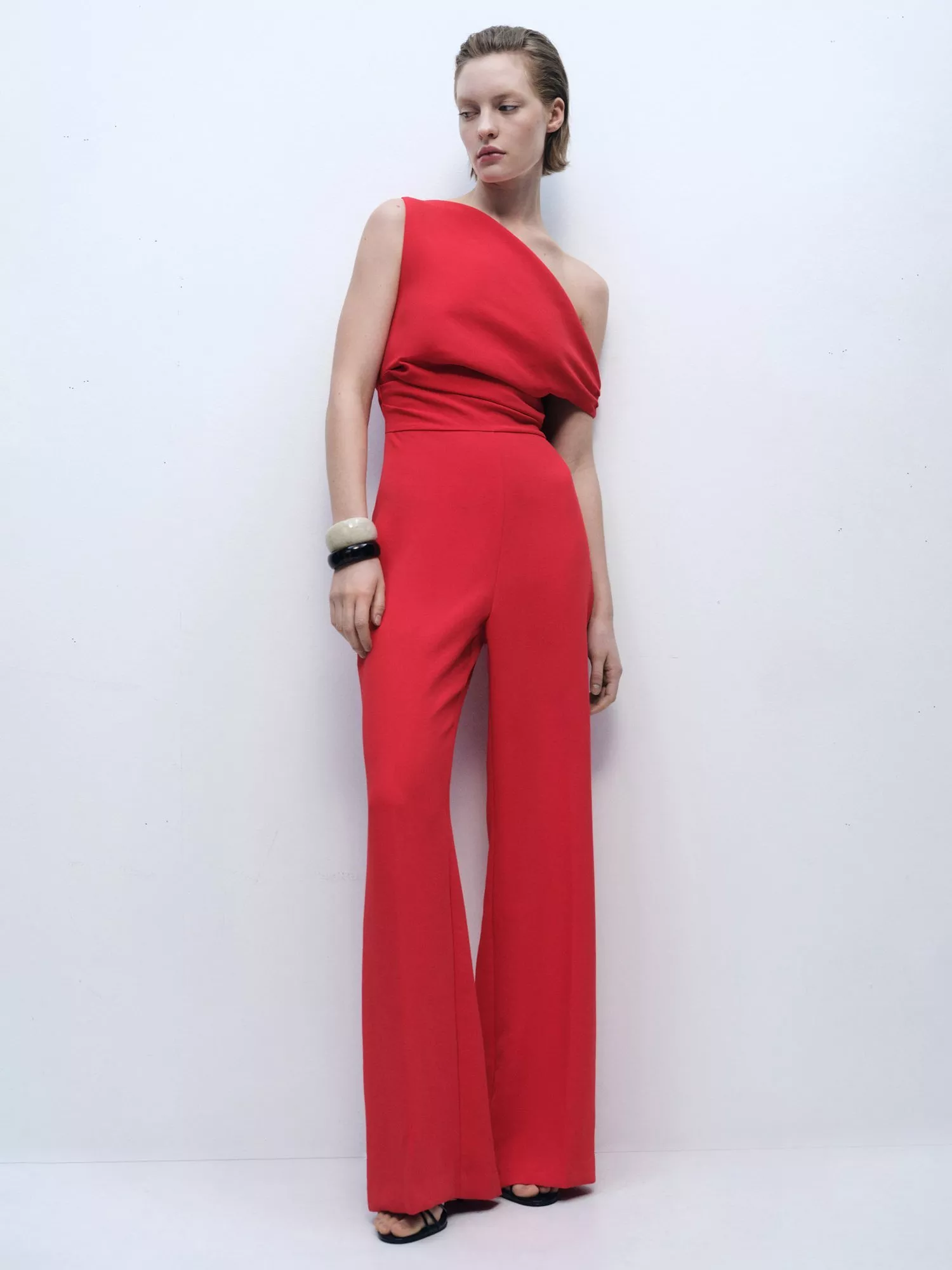 Primed to be worn off-the-shoulder with its asymmetric neckline, this playsuit by Mango will keep you comfy with their featherweight fabrication. Made to turn heads, slip it on and command the room.