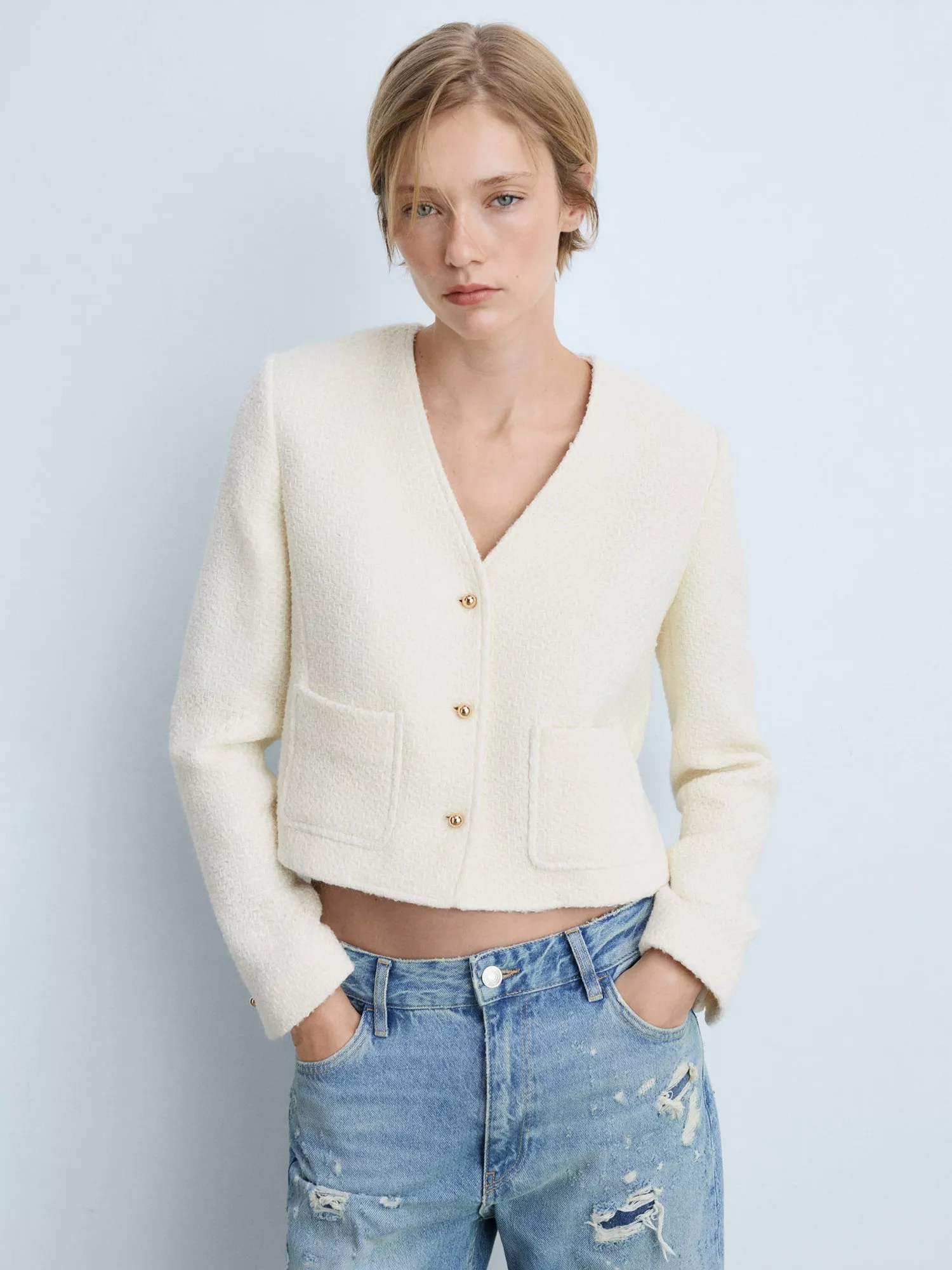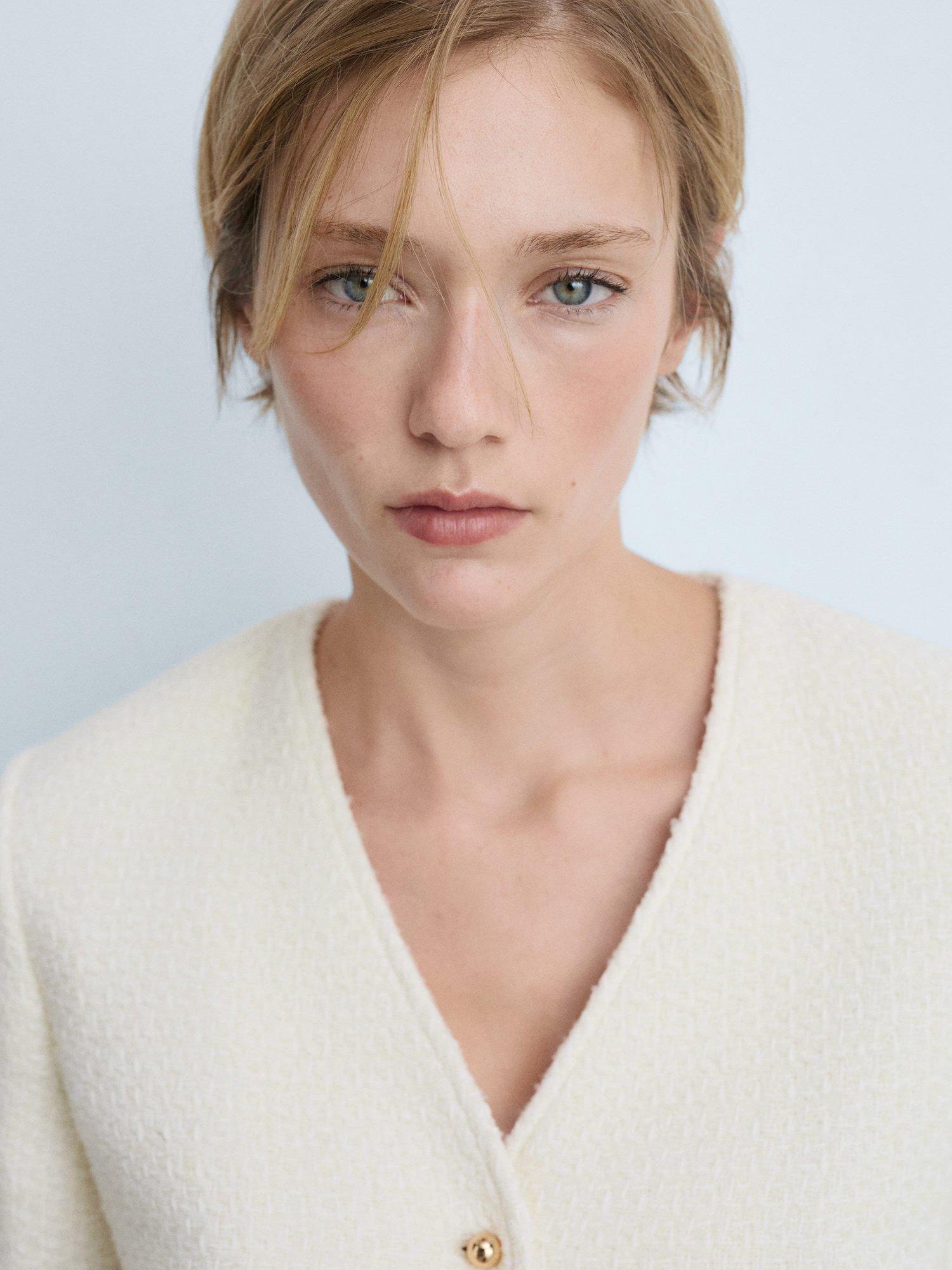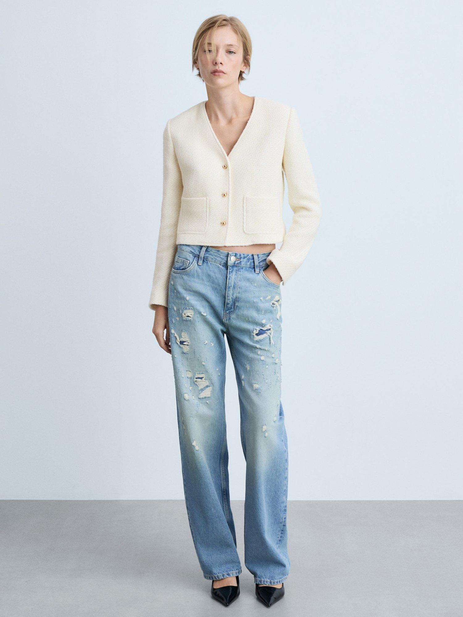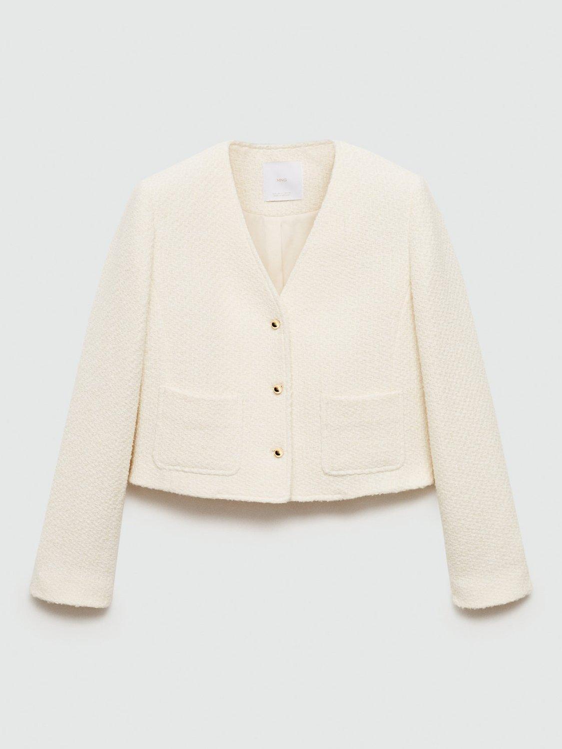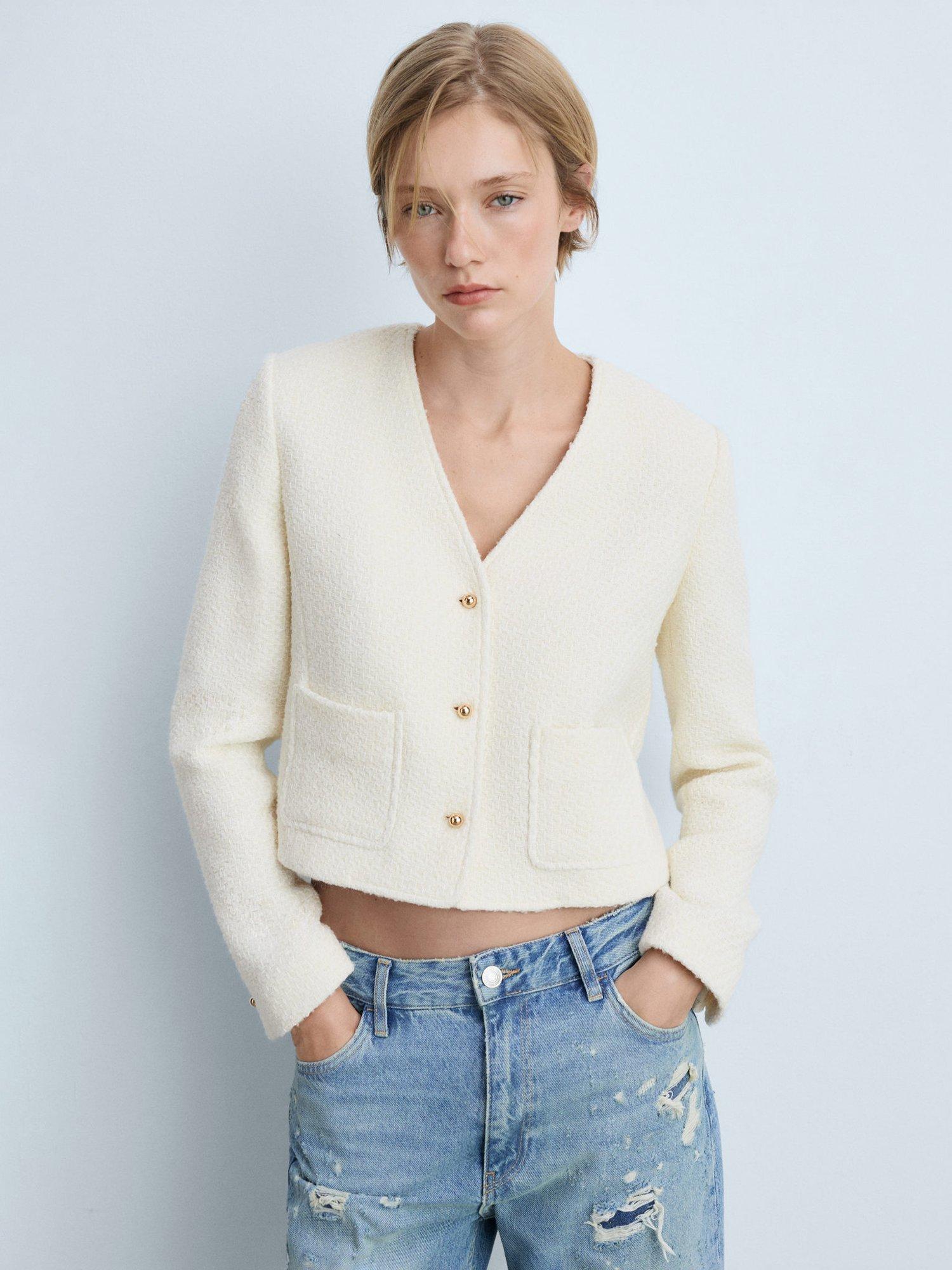 An easy layering piece that is sure to keep you cosy, this cardigan jacket from Mango is made from a soft tweed-like cotton blend and comes cropped at the hem.