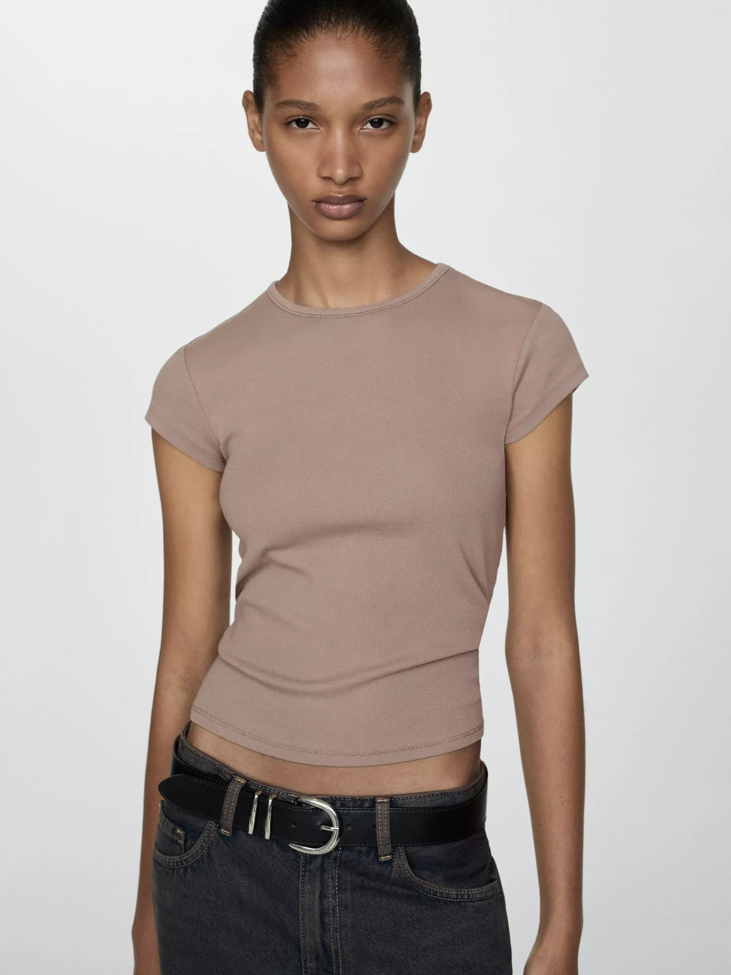 Bolstering your daytime collection, this ribbed t-shirt by Mango makes for the perfect companion to patterned layers. Cut with a fuss-free round neck and short sleeves, it offers a soft feel thanks to its cotton blend and is an easy daytime option.
