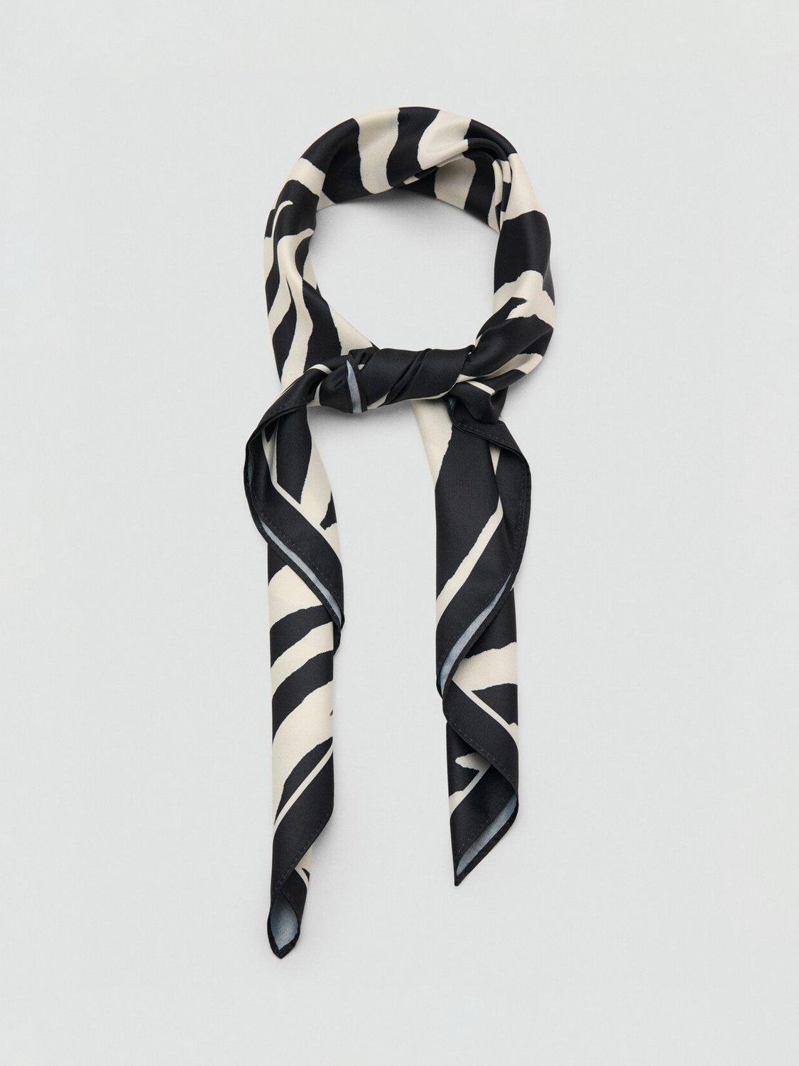 MangoZebra Print Square Scarf, Black