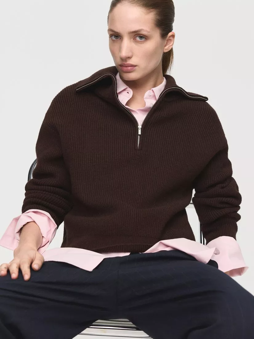 A fine knit zip neck jumper. Its soft viscose blend keeps you comfortable, while the versatile design sits well in any setting.