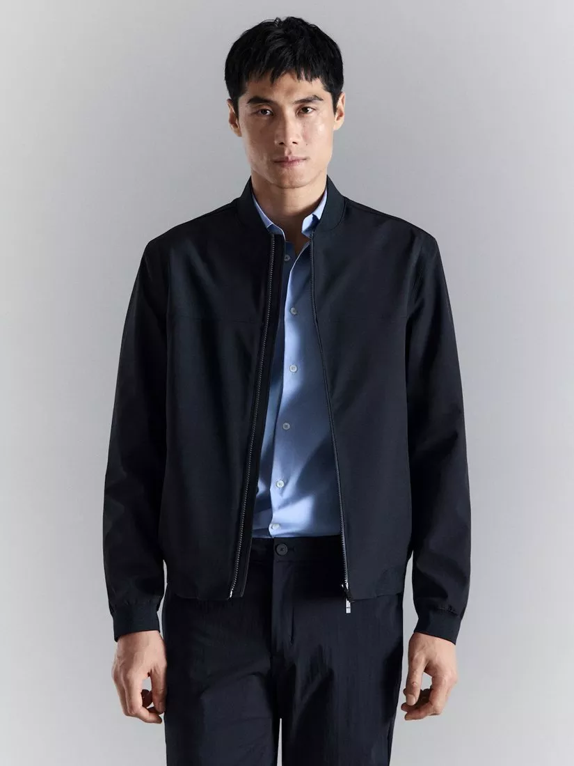 A regular-fit bomber jacket, designed for comfort and everyday practicality with a full lining and zip fastening.