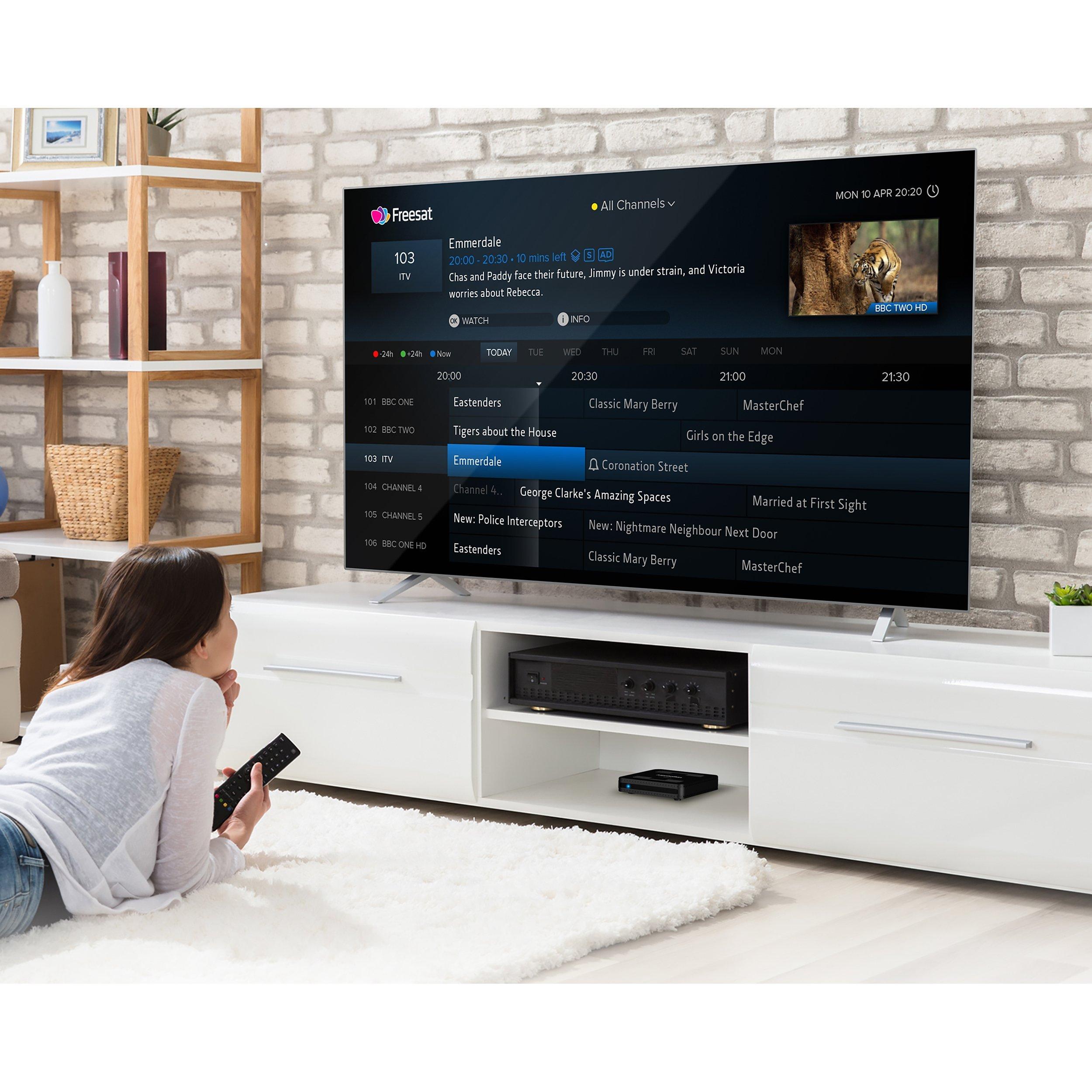 With a wide choice of more than 200 Freesat Channels, you'll have the selection of 13 in HD, including BBC One HD, BBC Two HD, BBC Four HD, BBC News HD, ITV HD, S4C HD and 5 HD. And SD channels are upscaled for improved clarity.