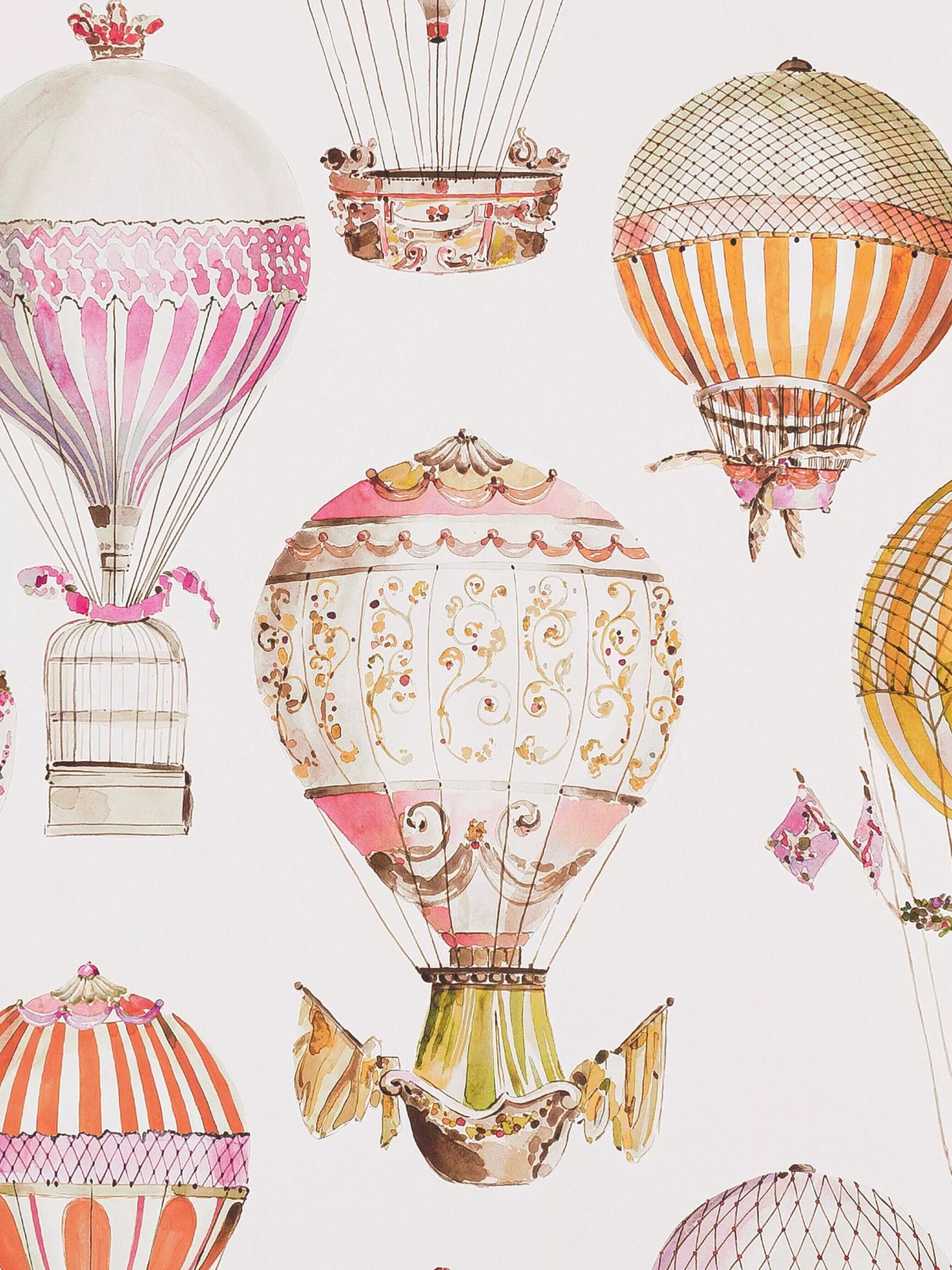 Into the sky, flying in the air, these delicately detailed balloons are hand painted in a very refined palette. Be transported to new horizons with this glorious design.