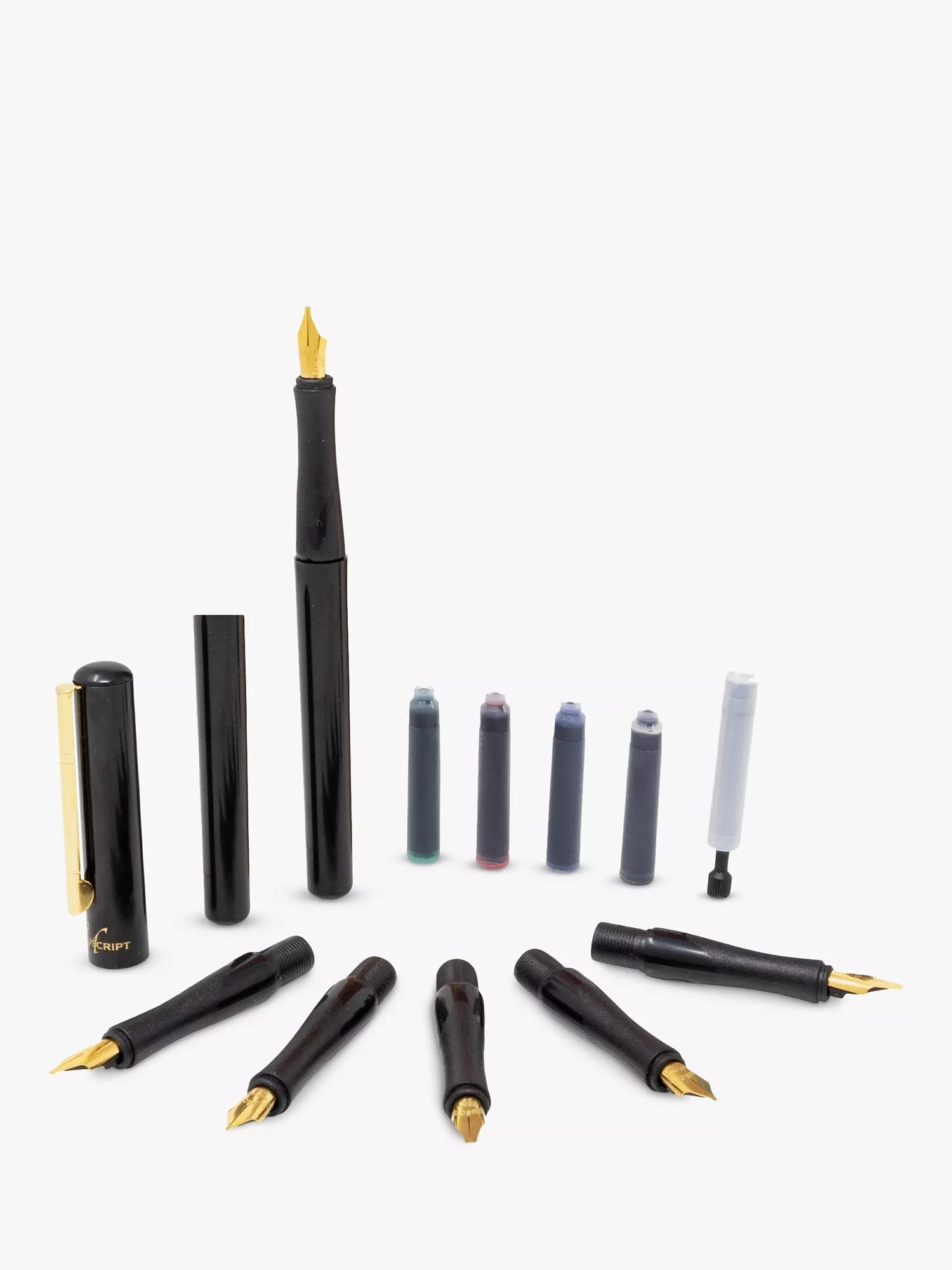 The Deluxe Calligraphy Set is the perfect gift set ideal for fountain pen calligraphy and every day writing. Create italic calligraphy and practice lettering with ease with this diverse set. Made in the United Kingdom, this 13 piece set includes the following: