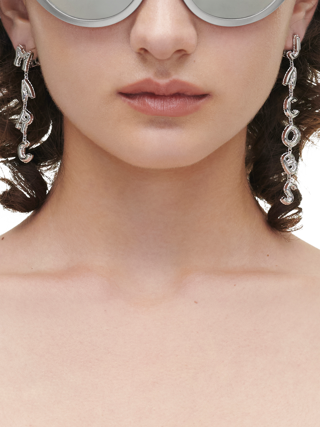 A new Marc Jacobs icon. These asymmetrical drop earrings play up the puffed up proportions of the season with a mylar balloon-inspired design.