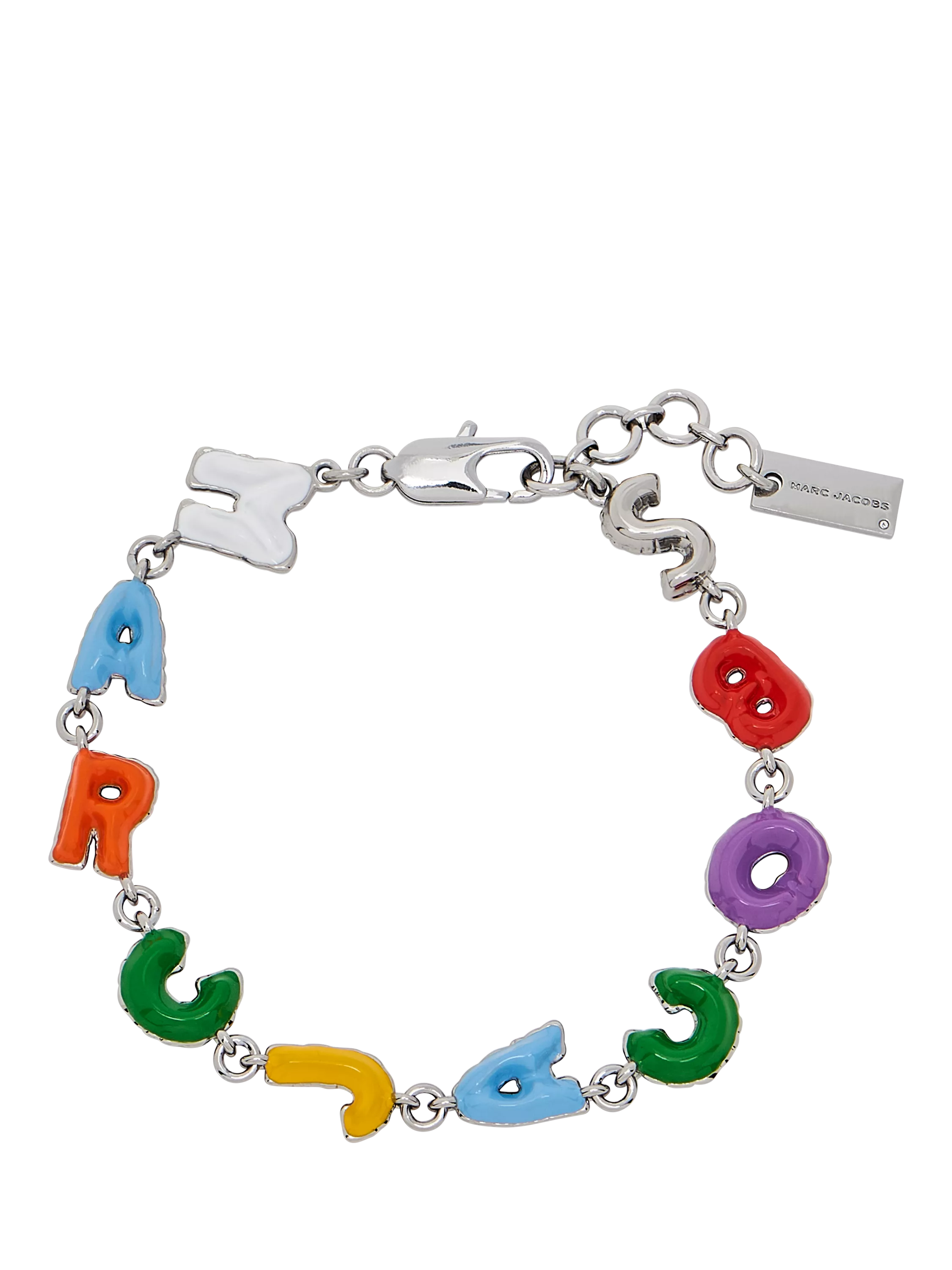 This playful bracelet from Marc Jacobs features a burst of colourful enamel letters in their signature, balloon-inspired logo. Secured with a lobster clasp fastening.