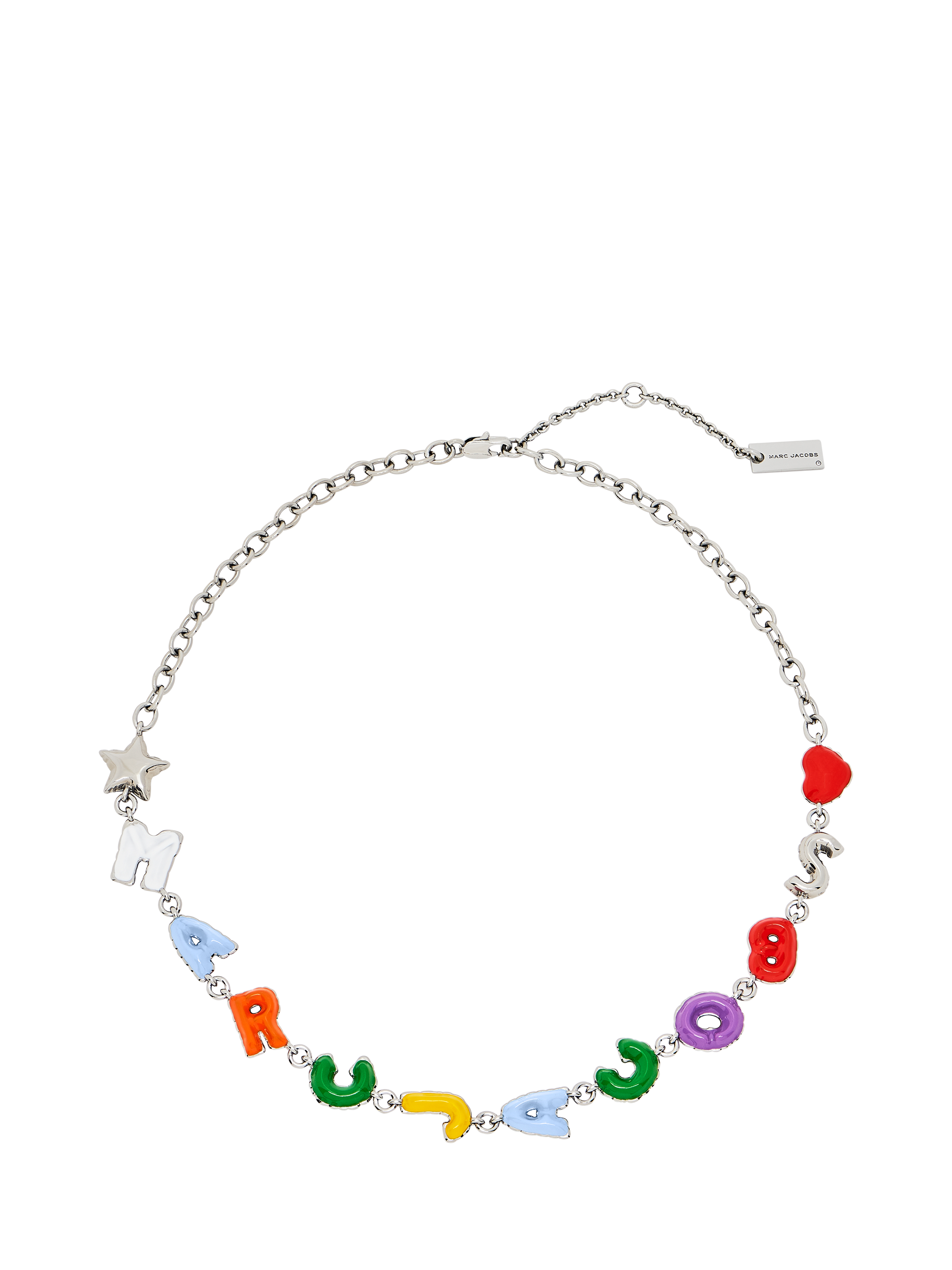 Make a statement with this necklace from Marc Jacobs, featuring vibrant enamel balloon letters. Finished with a lobster clasp for an adjustable fit.