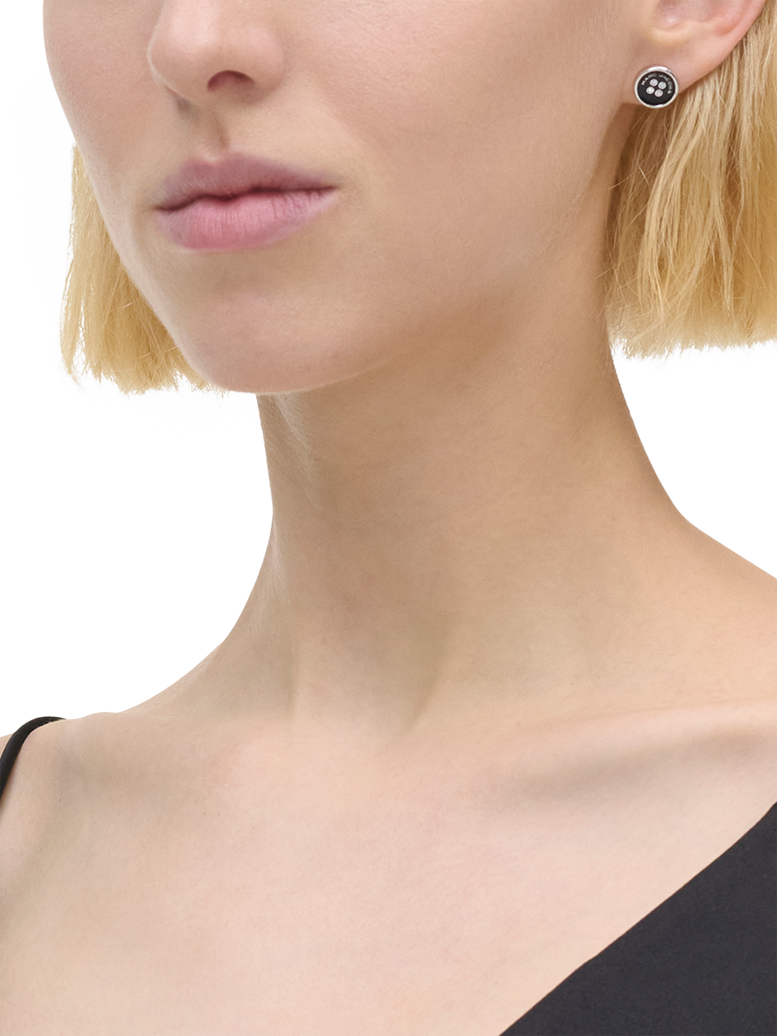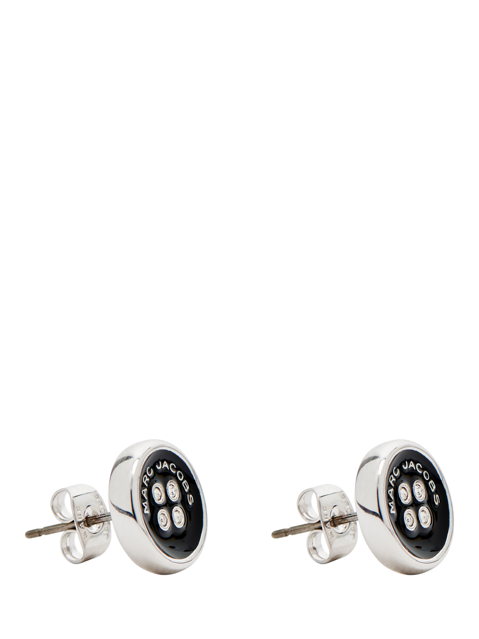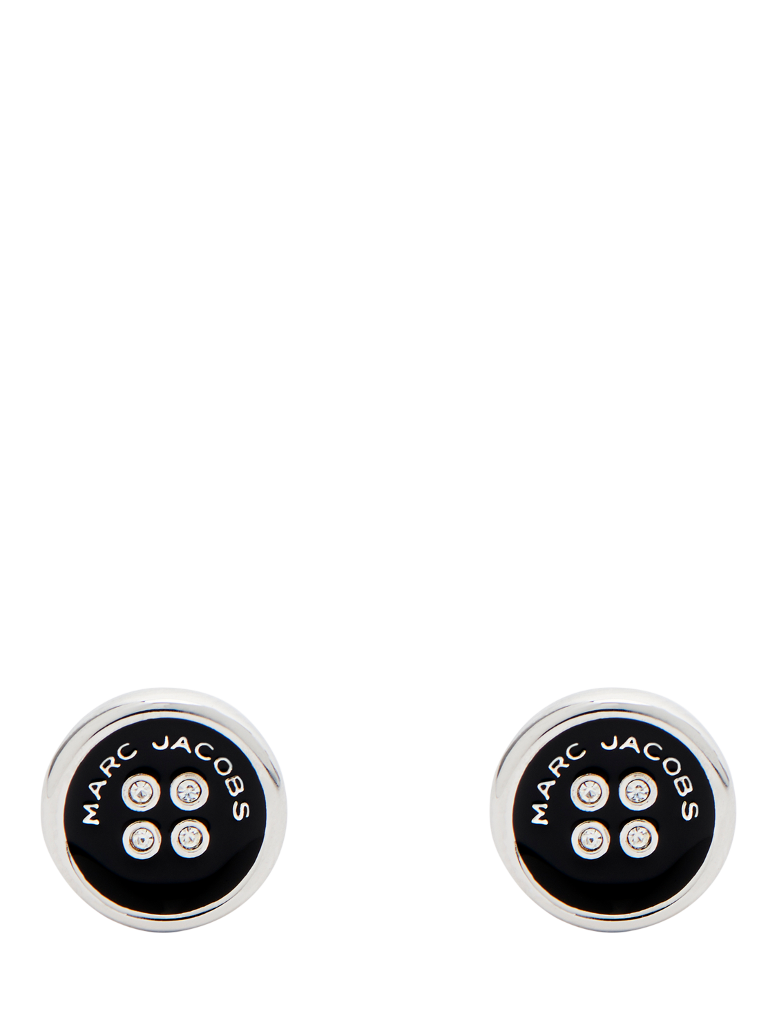 Inspired by Marc's love of trims and detailing, these earrings feature hand-painted enamel or mother of pearl buttons adorned with glass crystal accents and signature logo branding.