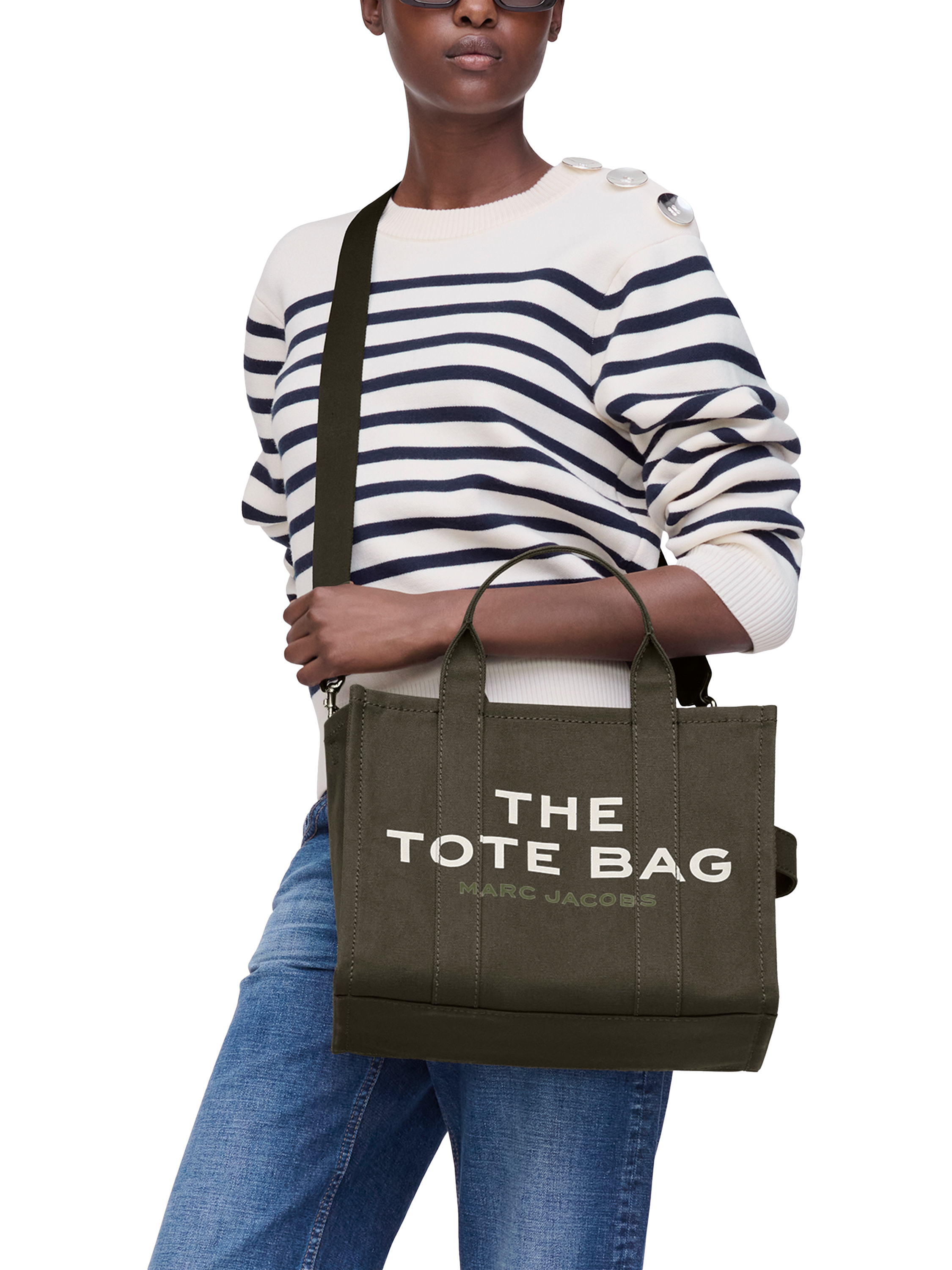 The most classic version of MJ's Medium Tote brings style to your every day with a quintessential Marc twist. Crafted from textural cotton canvas, this silhouette is intended to fade and relax over time for an authentically broken-in look that Marc himself loves to wear. A chunky top zip closure, one slip pocket, one card slot and the namesake branding make the canvas medium tote perfect for an errand or the office. Carry yours by the top handles or attach the adjustable, removable crossbody strap for hands-free styling. Part of THE collection.
