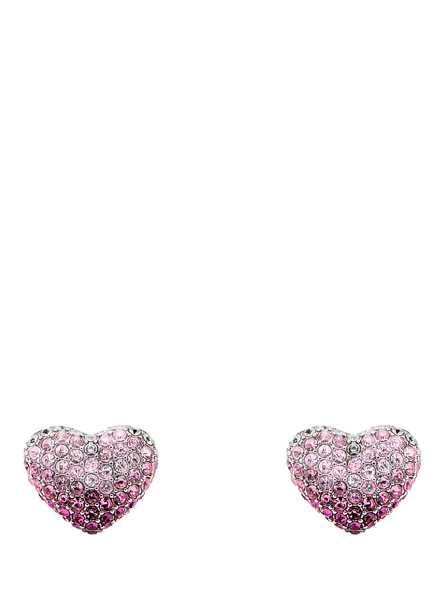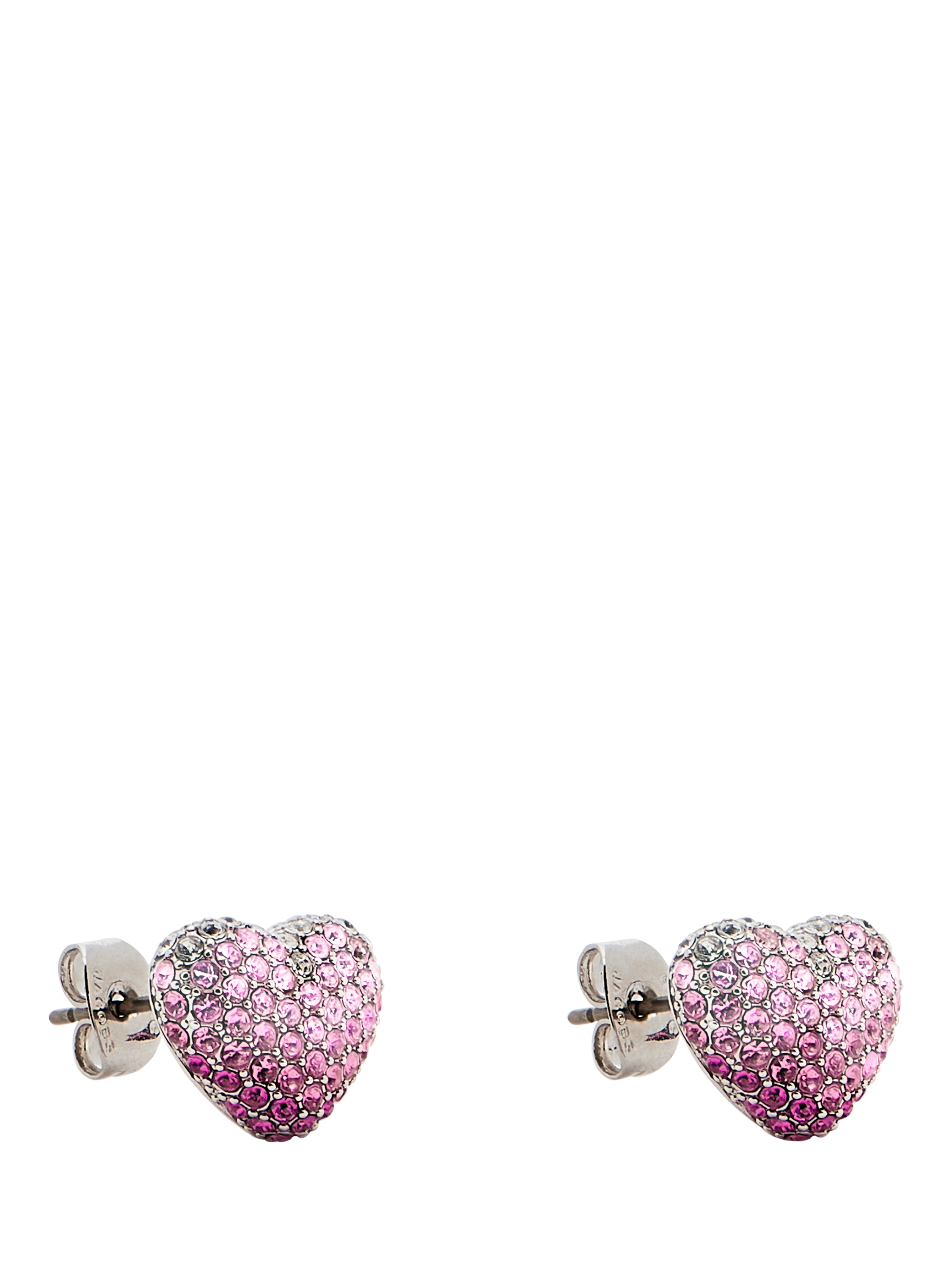 Dimensional heart-shaped studs from Marc Jacobs, encrusted with all-over pave crystals. The post top and butterfly clutch ensure effortless, everyday statement wear. Sitting on post fittings, they are suitable for pierced ears only.