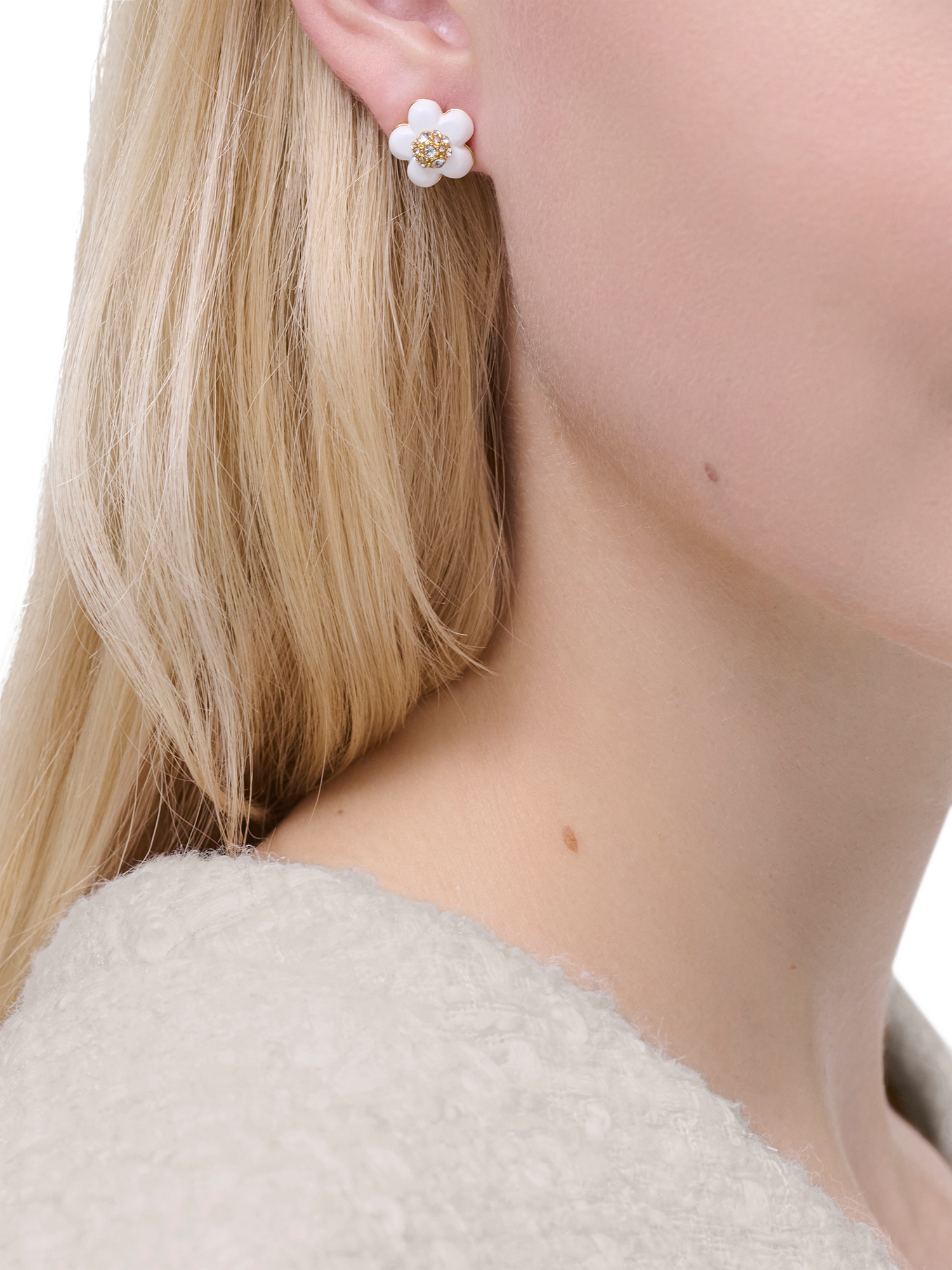 Taking a cue from the brand's iconic fragrance, the Daisy stud earrings from Marc Jacobs showcase enamel-crafted daisies adorned with crystal accents. The post top and butterfly clutch ensure seamless day-to-night elegance. Sitting on post fittings, they are suitable for pierced ears only.