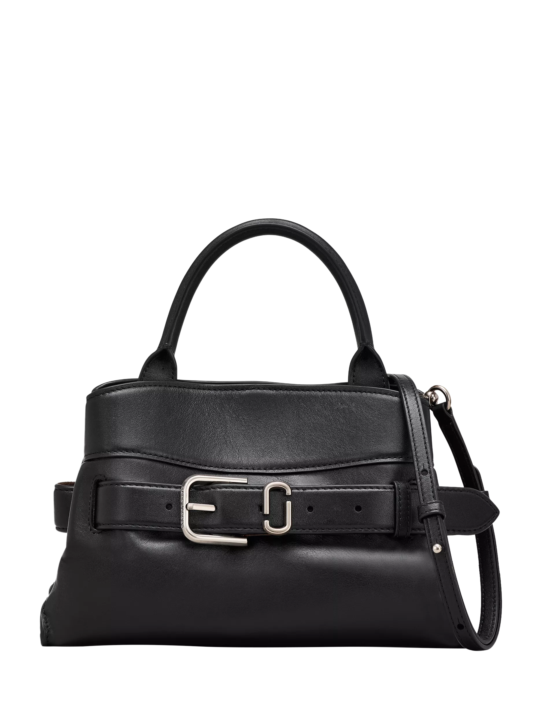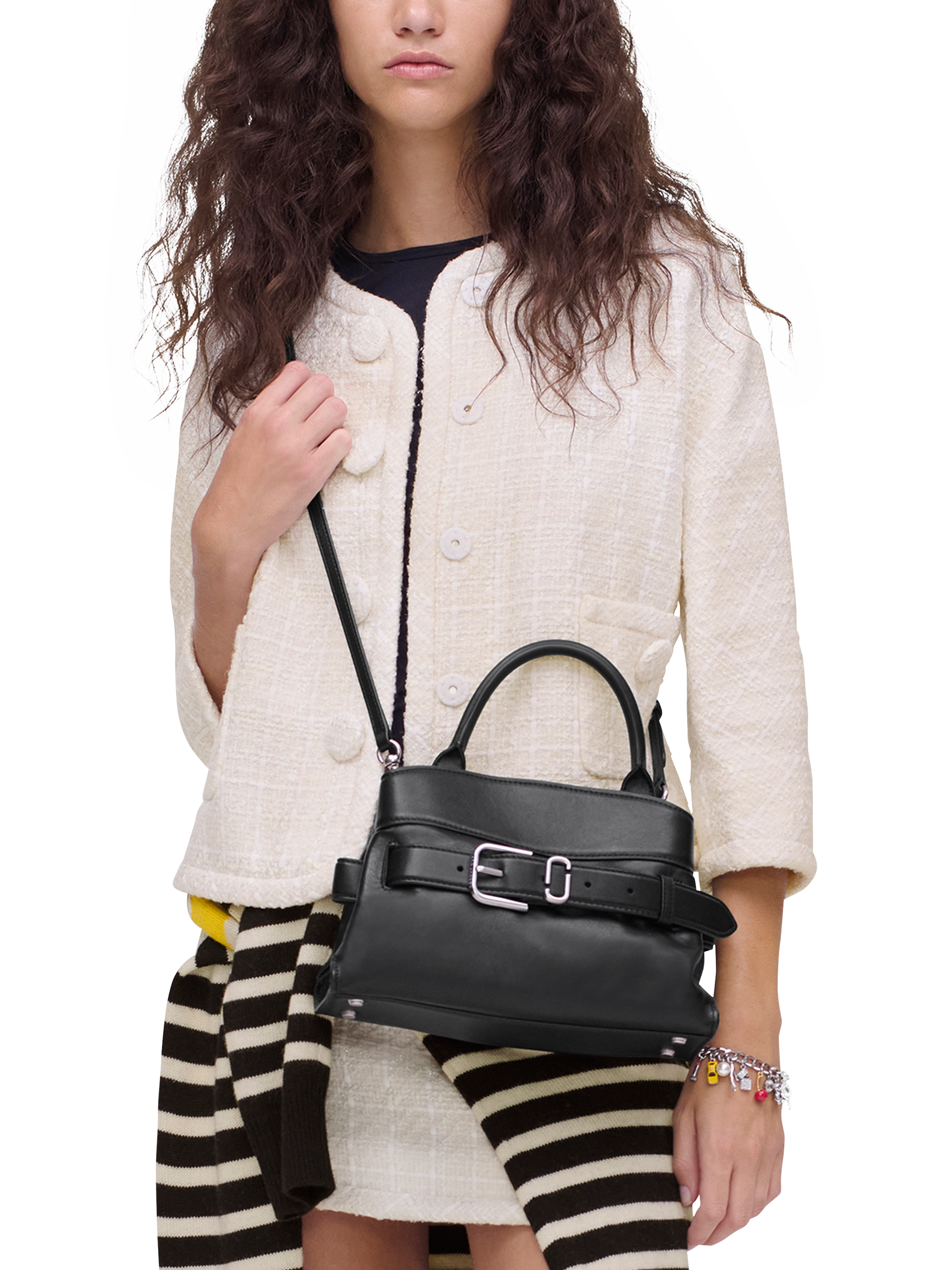 This compact version brings the same refined attitude in a smaller silhouette. Crafted from smooth leather, it features a fixed J Marc logo belt along with a magnetic closure, an internal zip pocket and structured leather top handle. A removable, adjustable leather crossbody strap adds hands-free versatility with a personalised feel.
