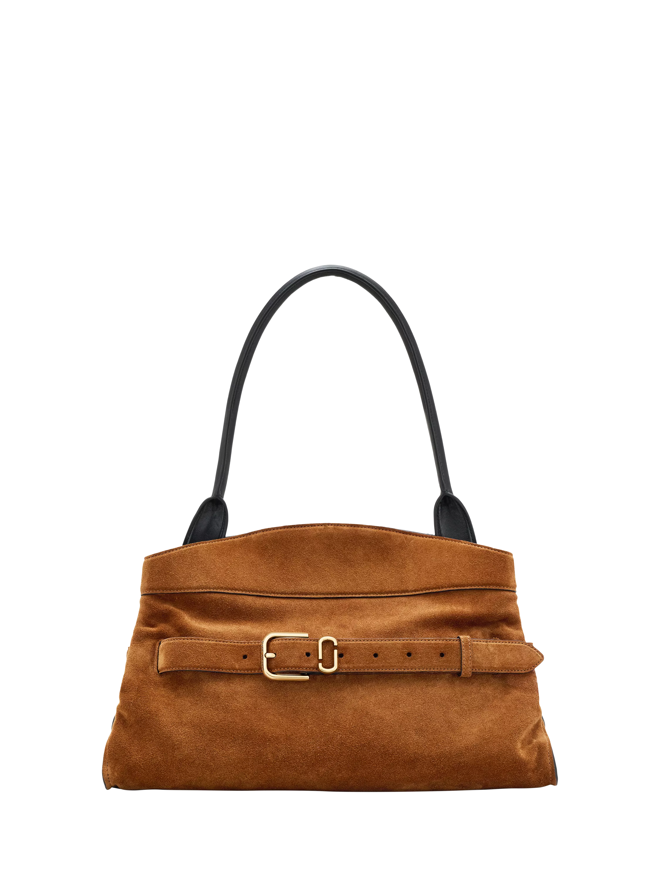 A refined balance of structure and ease, the Dakota Satchel merges utility with quiet sophistication. Crafted in rich suede, it’s defined by a fixed J Marc logo belt, a nod to the Marc by Marc Jacobs archival Belt collection. Thoughtfully designed, it features a magnetic closure, two interior compartments and considered pockets that speak to everyday practicality. Metal feet ground the design, while a top handle adds a sculptural finish.