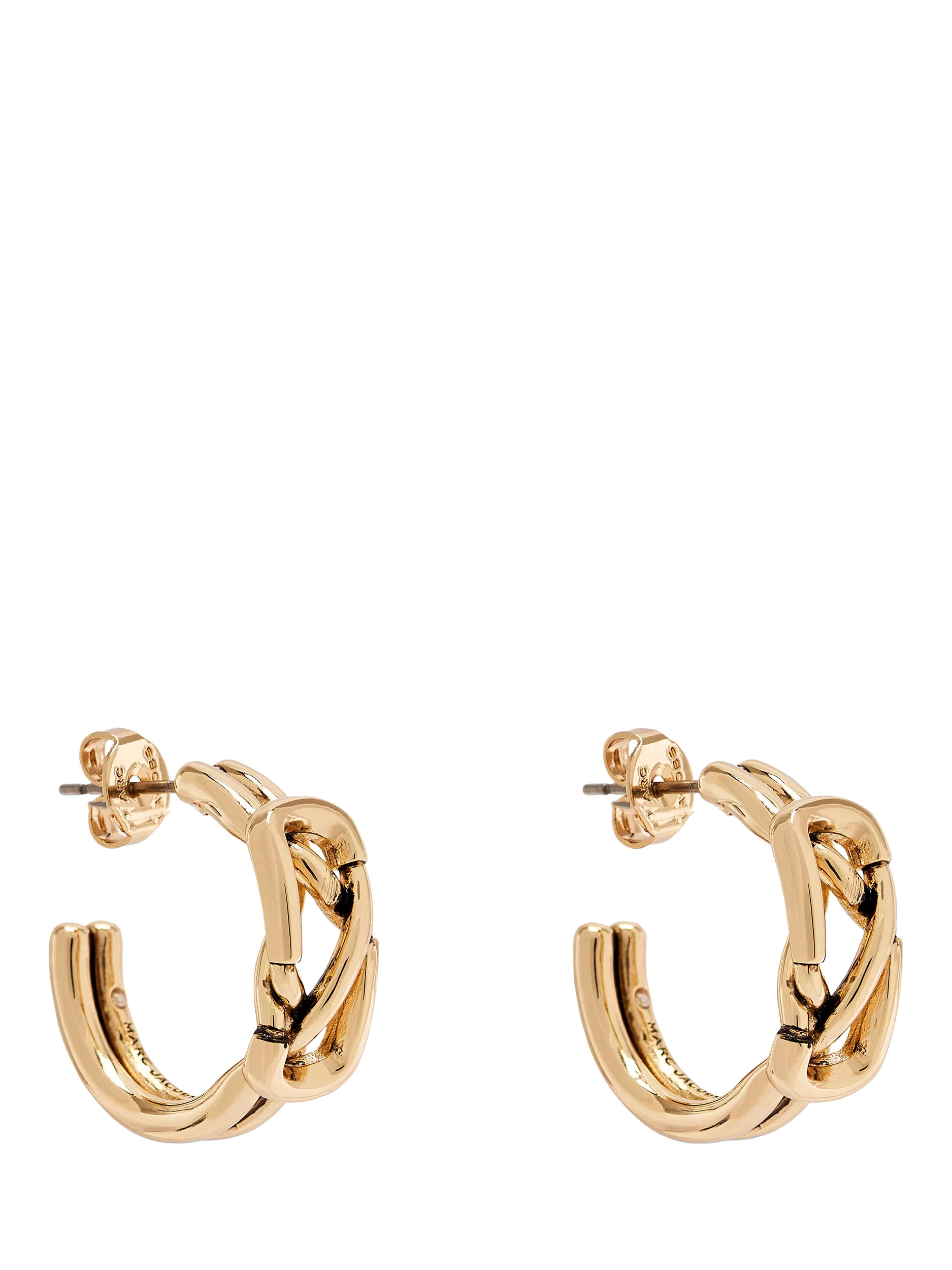 Classic hoop earrings infused with the bold branding of the brand's iconic Dual Bag. Featuring signature interlocking J Marc hardware as the focal point, they blend simplicity with intricate craftsmanship for a uniquely striking look. Suitable for pierced ears only.