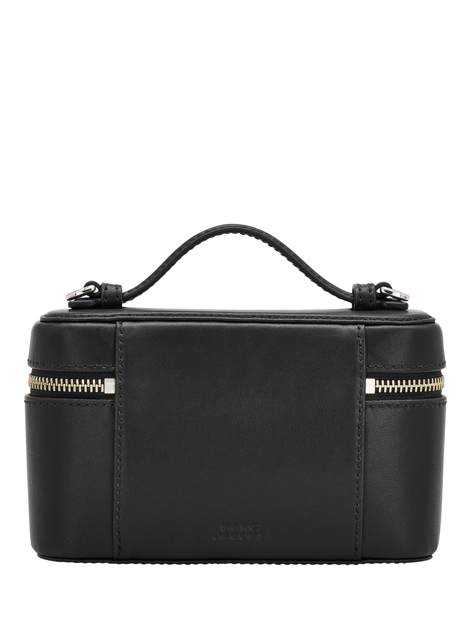 This compact bag is crafted in smooth leather with a structured, boxy shape that fits your phone, keys, cards and earbuds - no squeezing required. The zip-around closure keeps everything secure, while the top handle and adjustable, removable strap let you carry it three ways: Crossbody, top-handle or tucked into a larger bag. Finished with sleek metal logo branding for a polished touch.