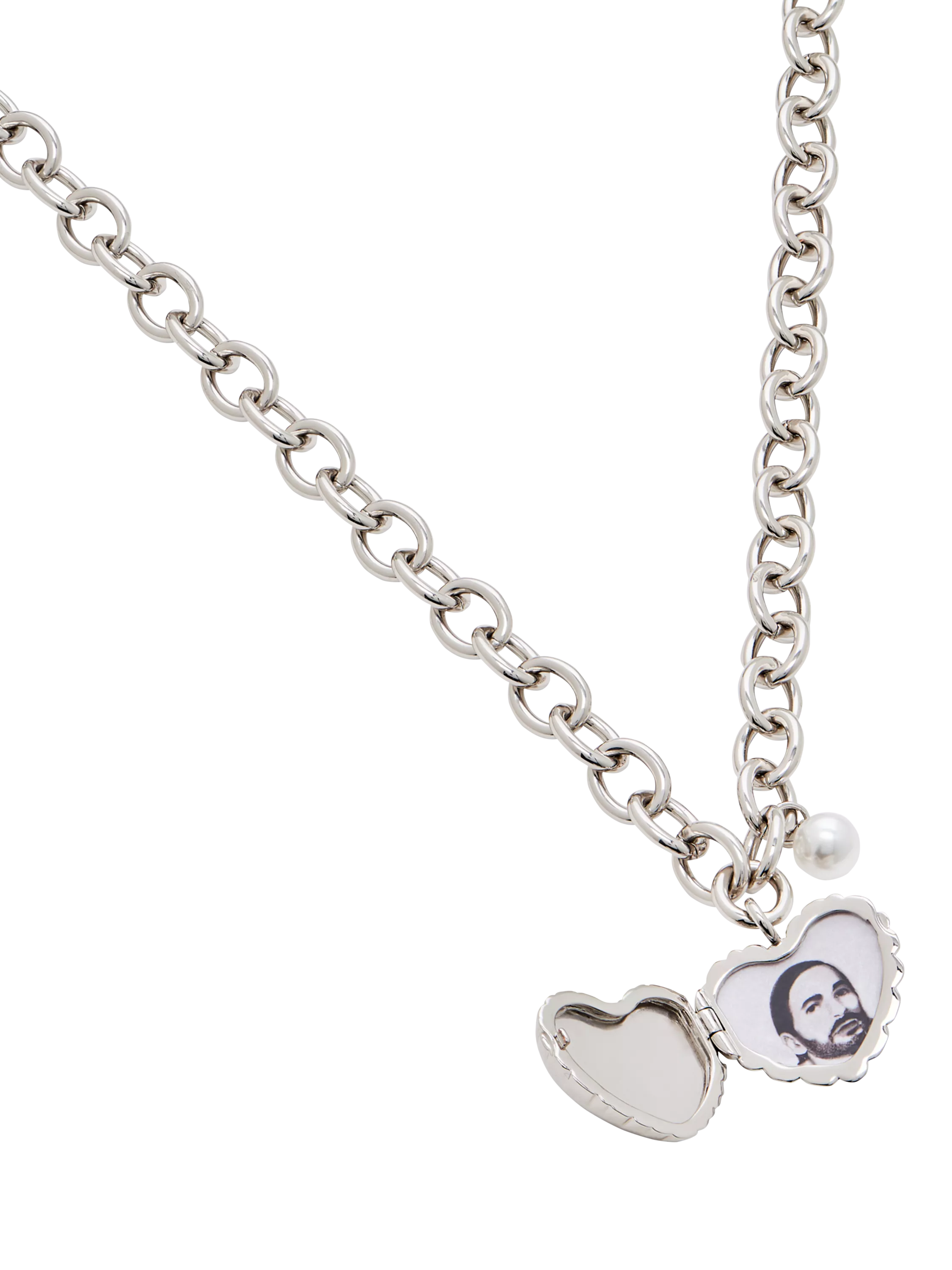 A classic silhouette with a playful Marc Jacobs twist, the Heart Balloon Locket reinterprets an iconic design. Hanging on a classic link chain for everyday elegance, the dimensional hinged locket features signature Marc Jacobs engraved logo branding and a removable photo of Marc himself for a personalized touch.