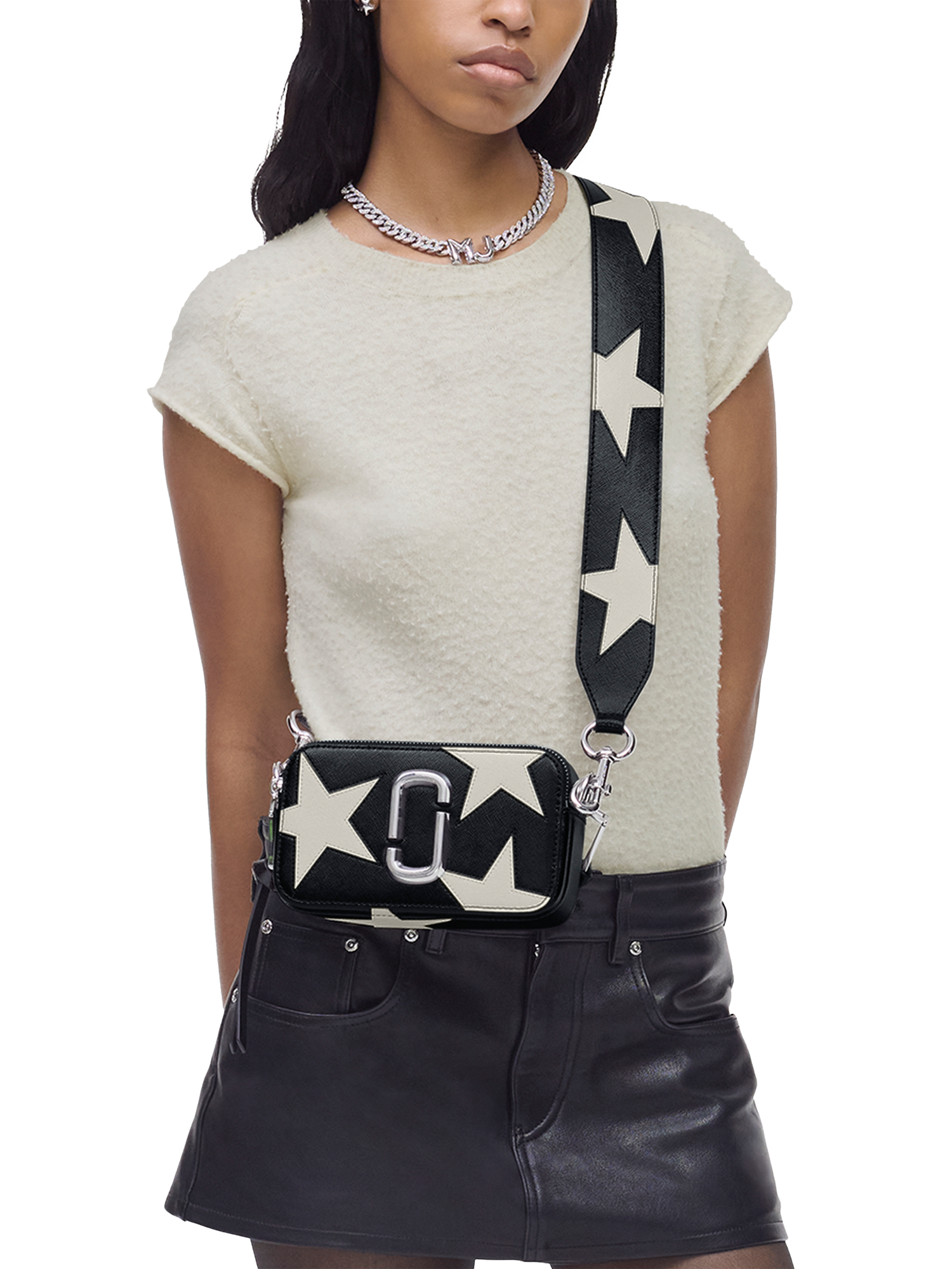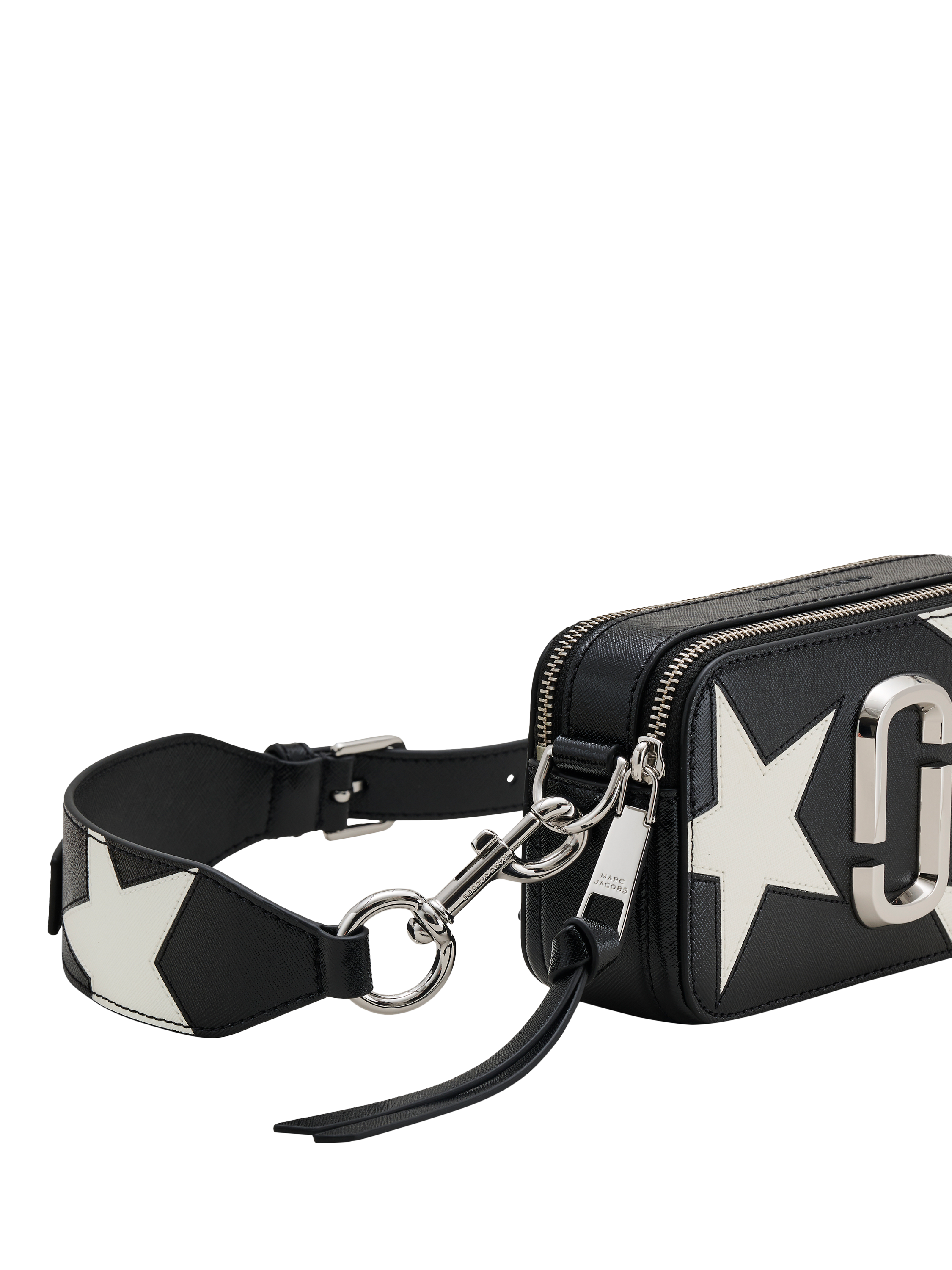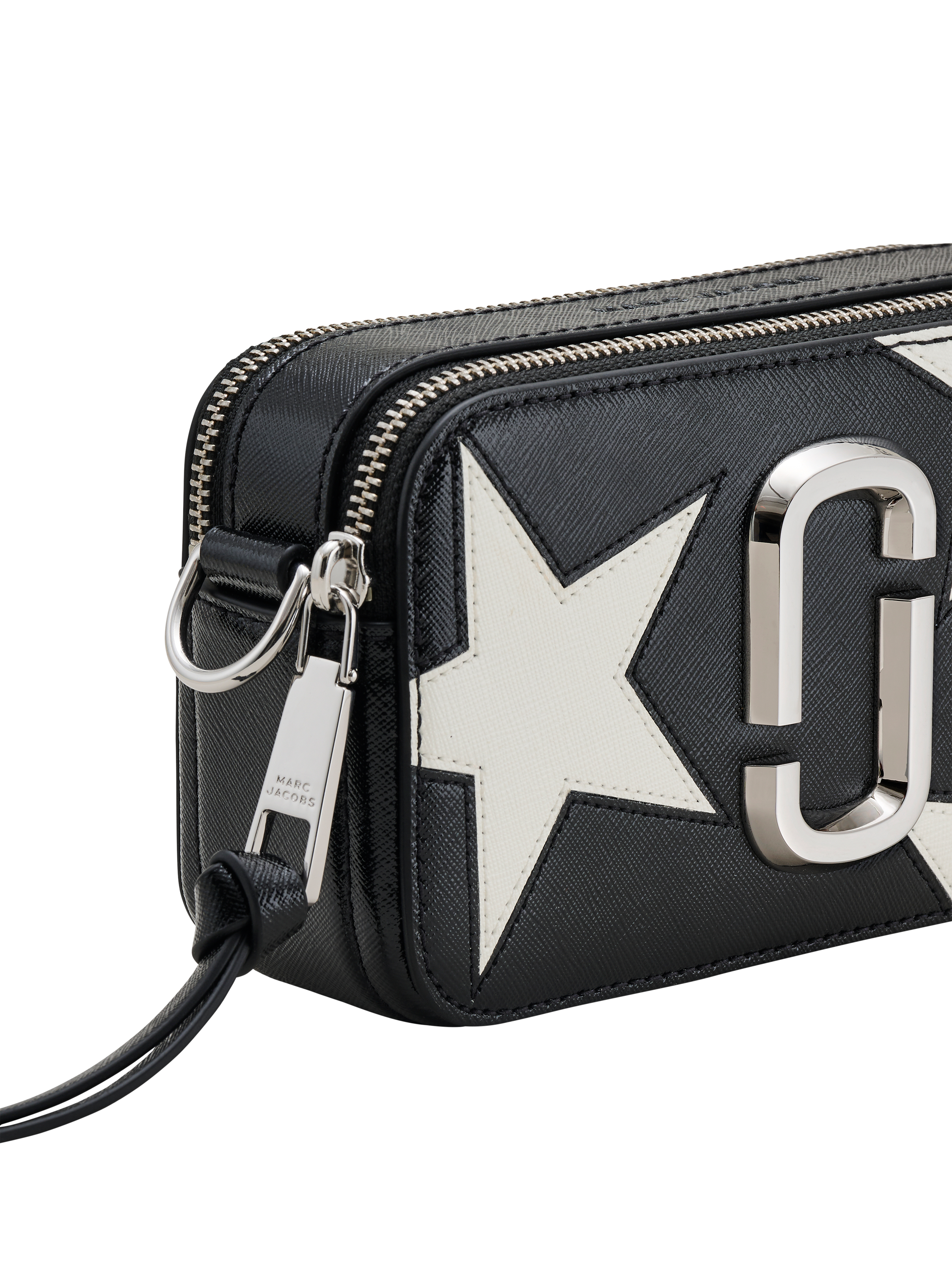 An archival runway piece turned cult-favourite, this sleek and iconic Snapshot crossbody bag in luxurious Saffiano leather features two zip-top compartments for optimal storage, a signature J Marc hardware seal and leather star patchwork detailing. With a product-exclusive leather star-patched crossbody strap, this elevated silhouette is an unparalleled favourite among commuters and travellers.