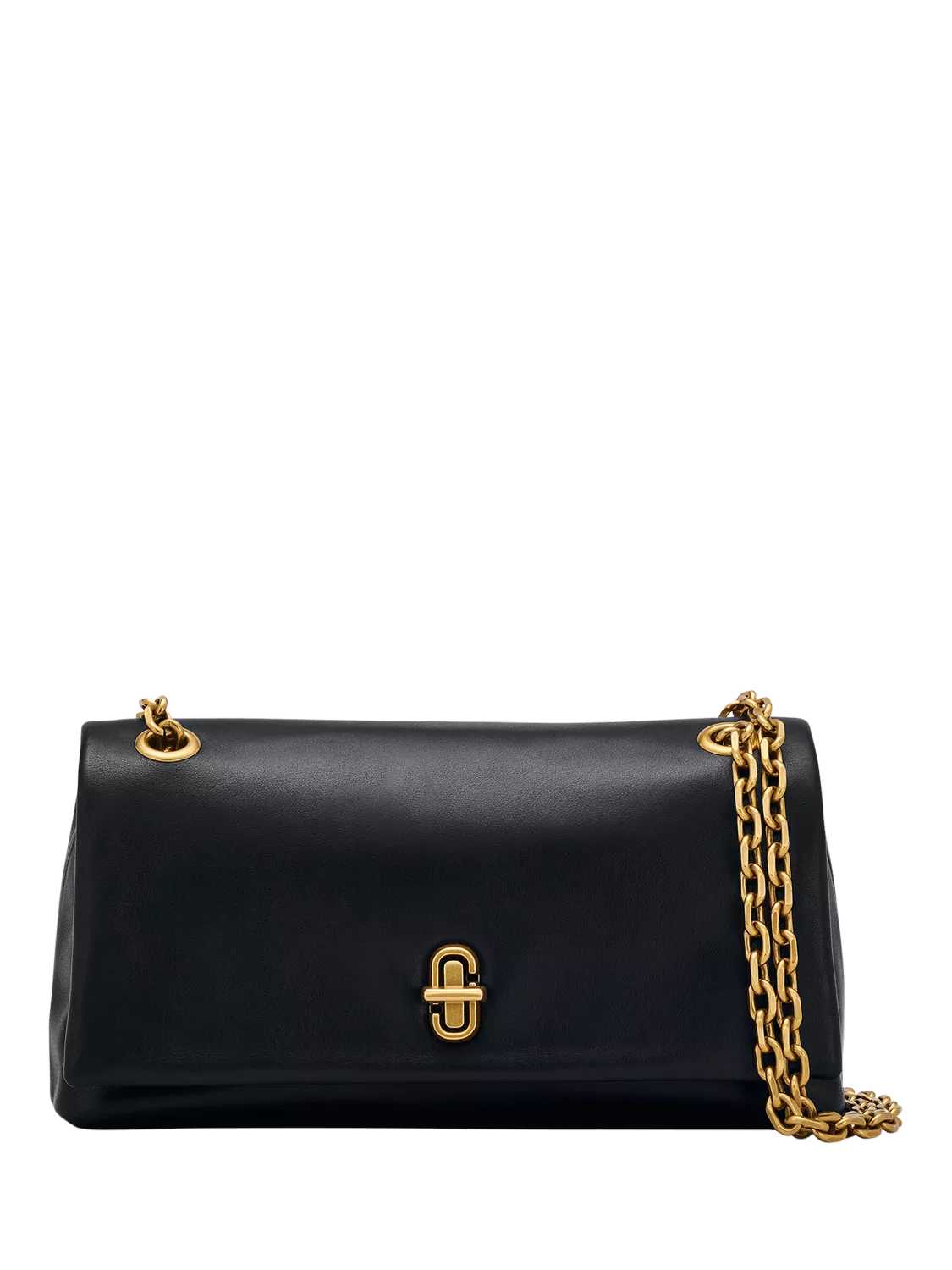 A sleek and elegant accessory inspired by the silhouette of Marc Jacobs' Dual collection. This high-style compact mini bag effortlessly stows your phone, credit cards, cash, keys and lipstick. Crafted in buttery smooth leather, The Dual Chain Mini Bag features an elevated J Marc turn-lock closure and a refined pull-through chain strap for over-the-shoulder or crossbody styling.