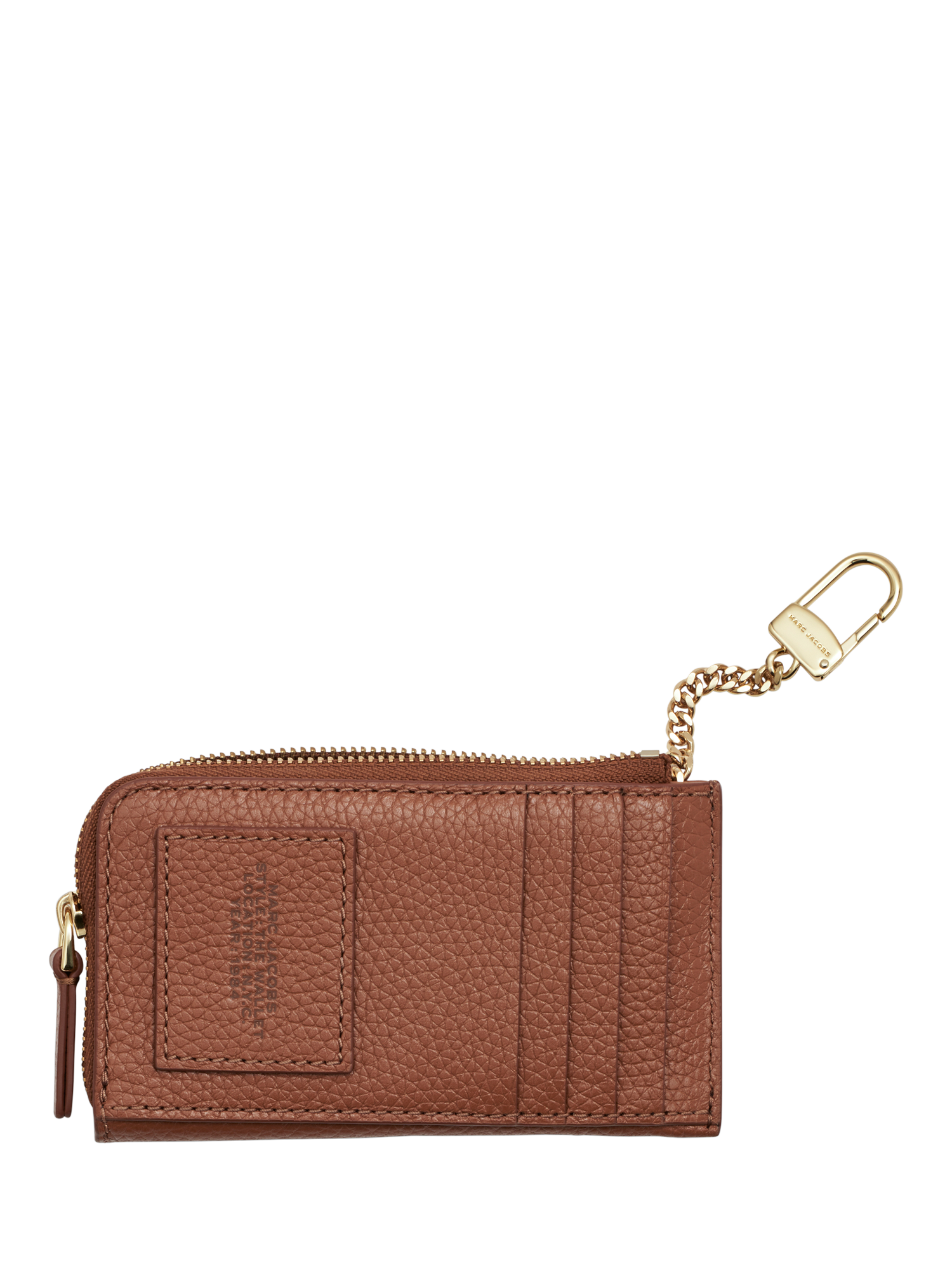 Look familiar? This leather wallet is designed with the same bold branding as Marc Jacobs' bestselling tote. Securing with a zip-around closure, it includes four card slots, two interior slip pockets, and a dog clip chain that can be used to hold your keys. For a perfect Marc match, complete the set with one of the brand's signature leather bags.