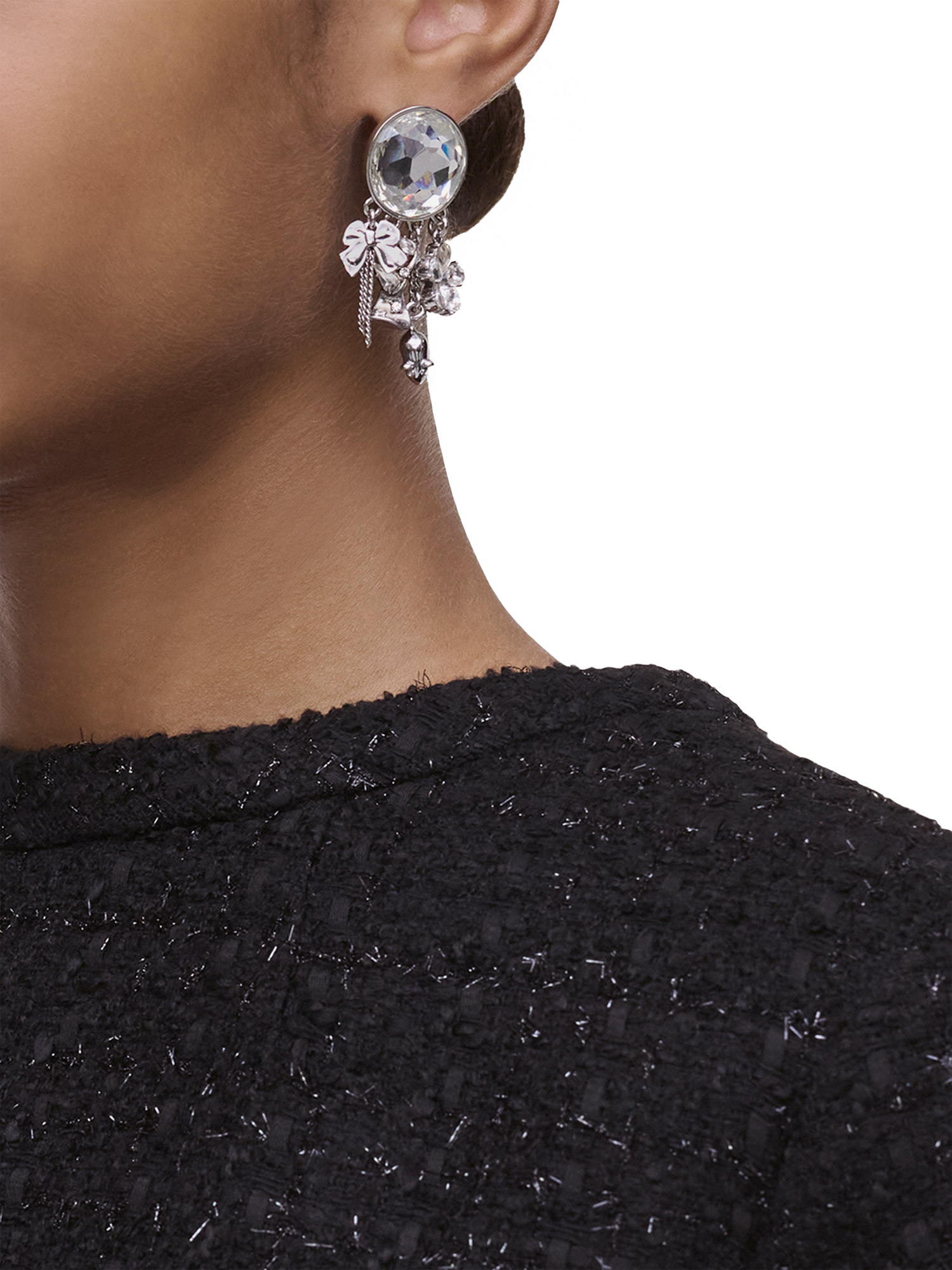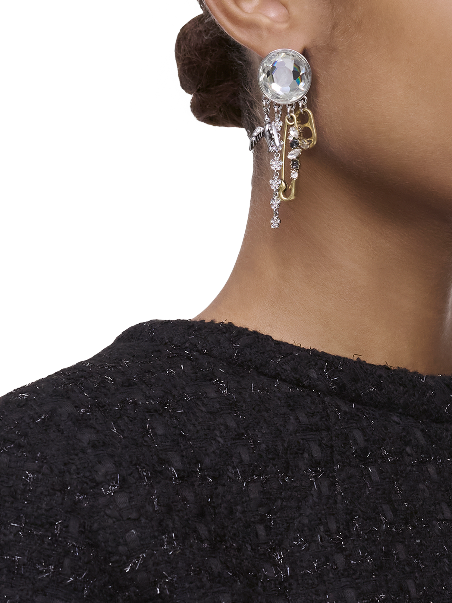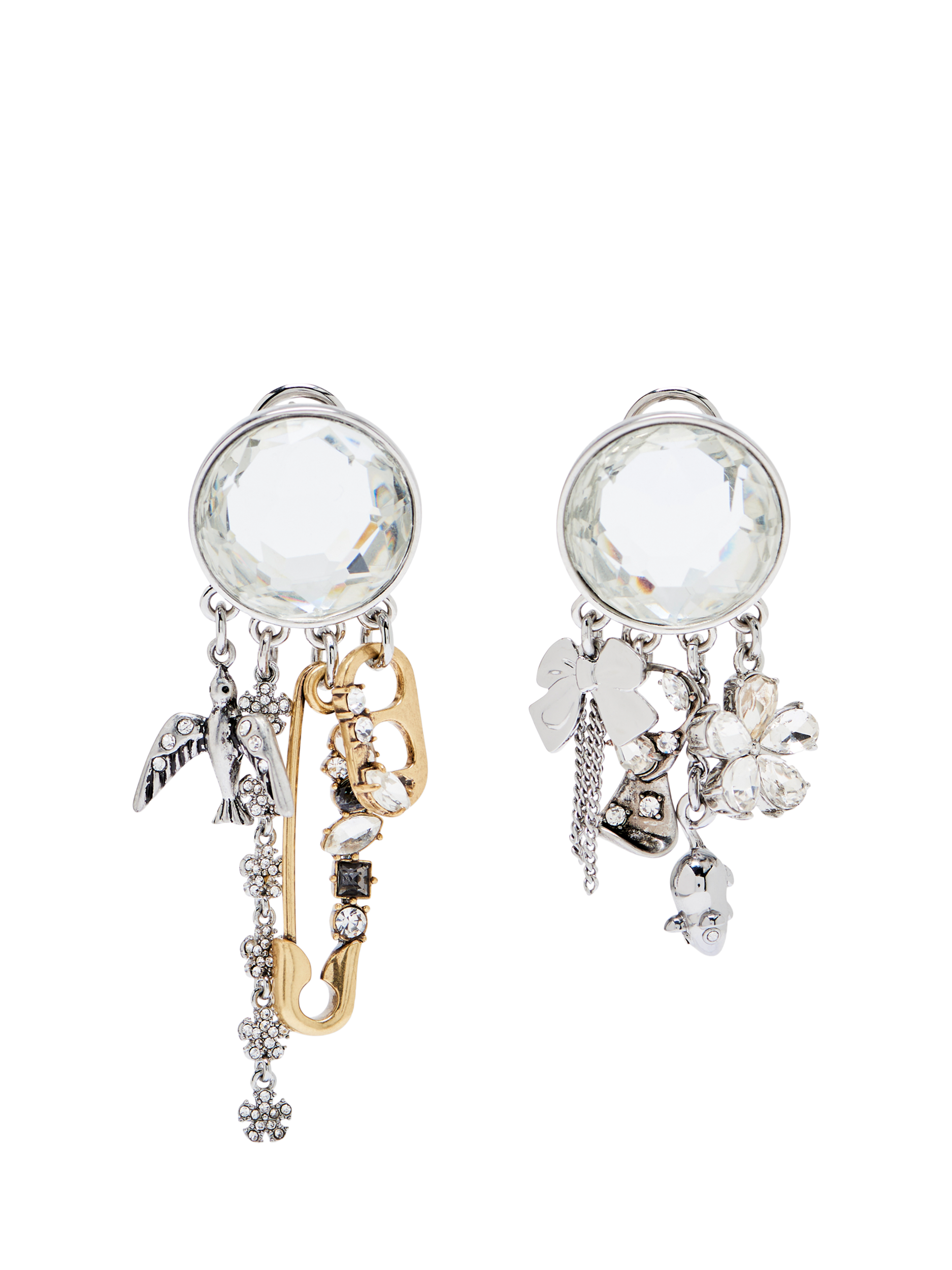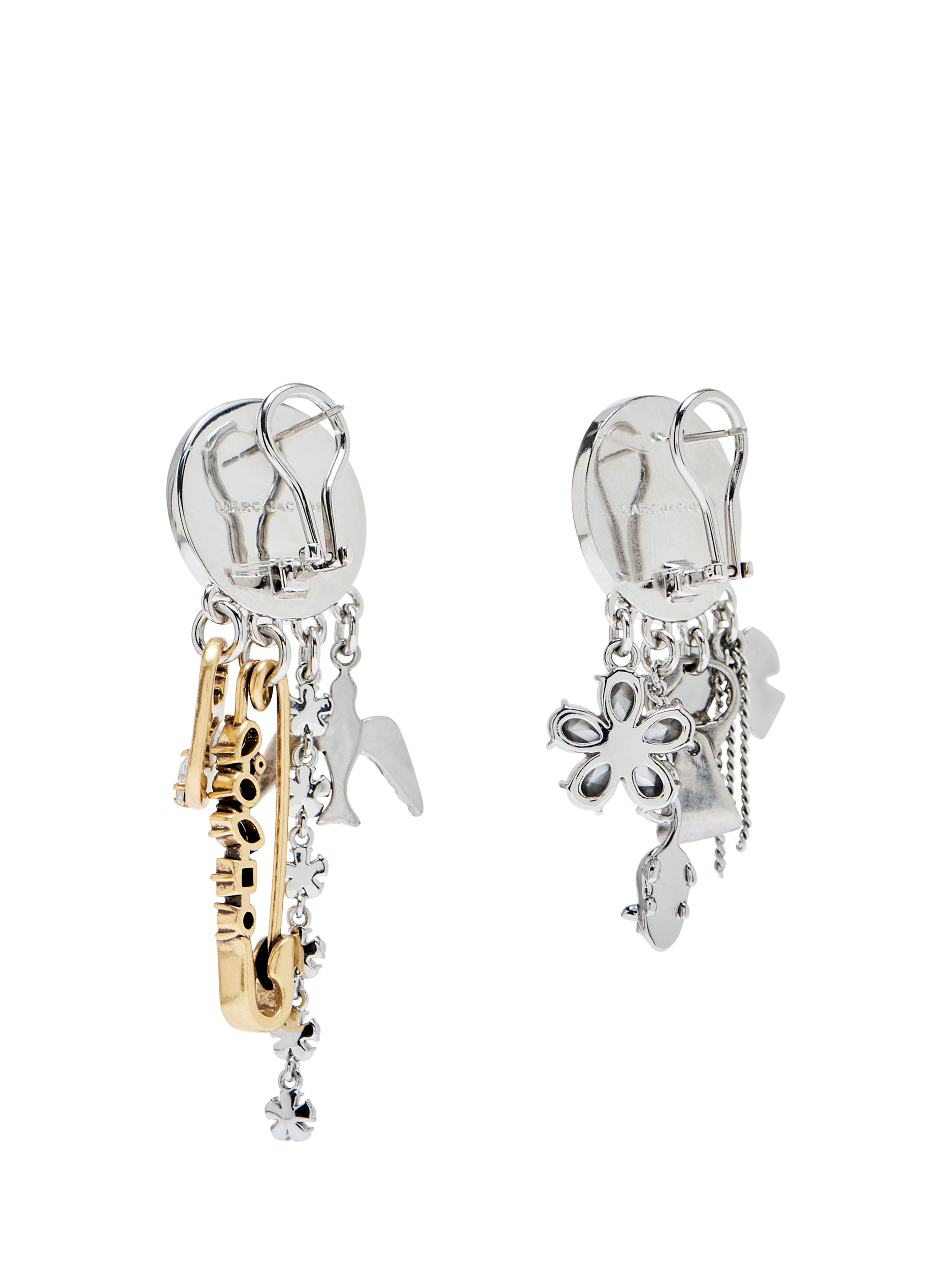 An asymmetrical earring set celebrating the archival origins of Marc's iconic designs. Showcasing new and classic grunge-infused dangling charms, this elegant silhouette refines punk-inspired chaos with sophisticated composition and detailing.