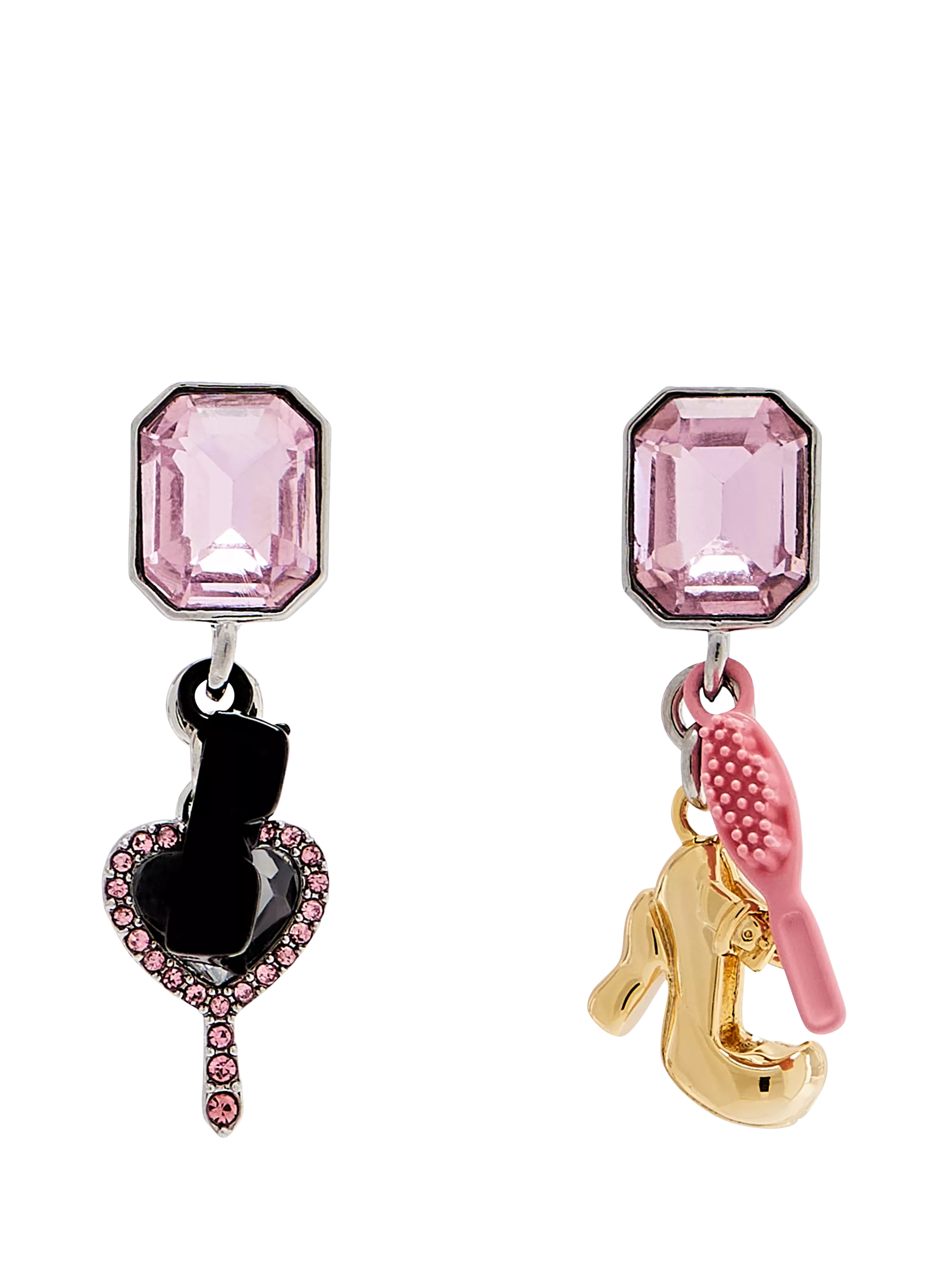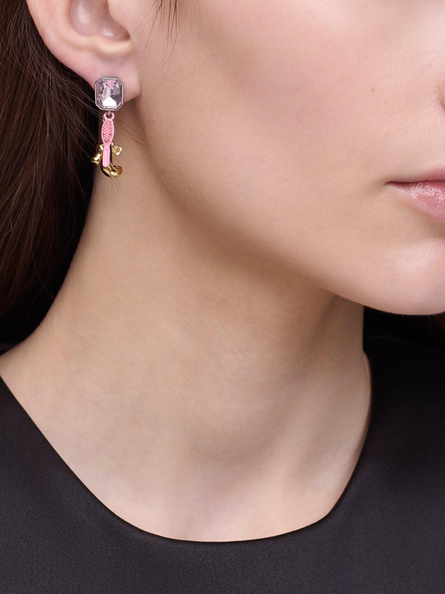 Inspired by the Spring ’24 runway, this asymmetrical earring set blends statement gem stone studs with dollhouse-inspired charms, capturing Marc’s playful approach to proportion and detail. Bold yet whimsical, these earrings embrace play and sophistication for head-turning style. Suitable for pierced ears only.