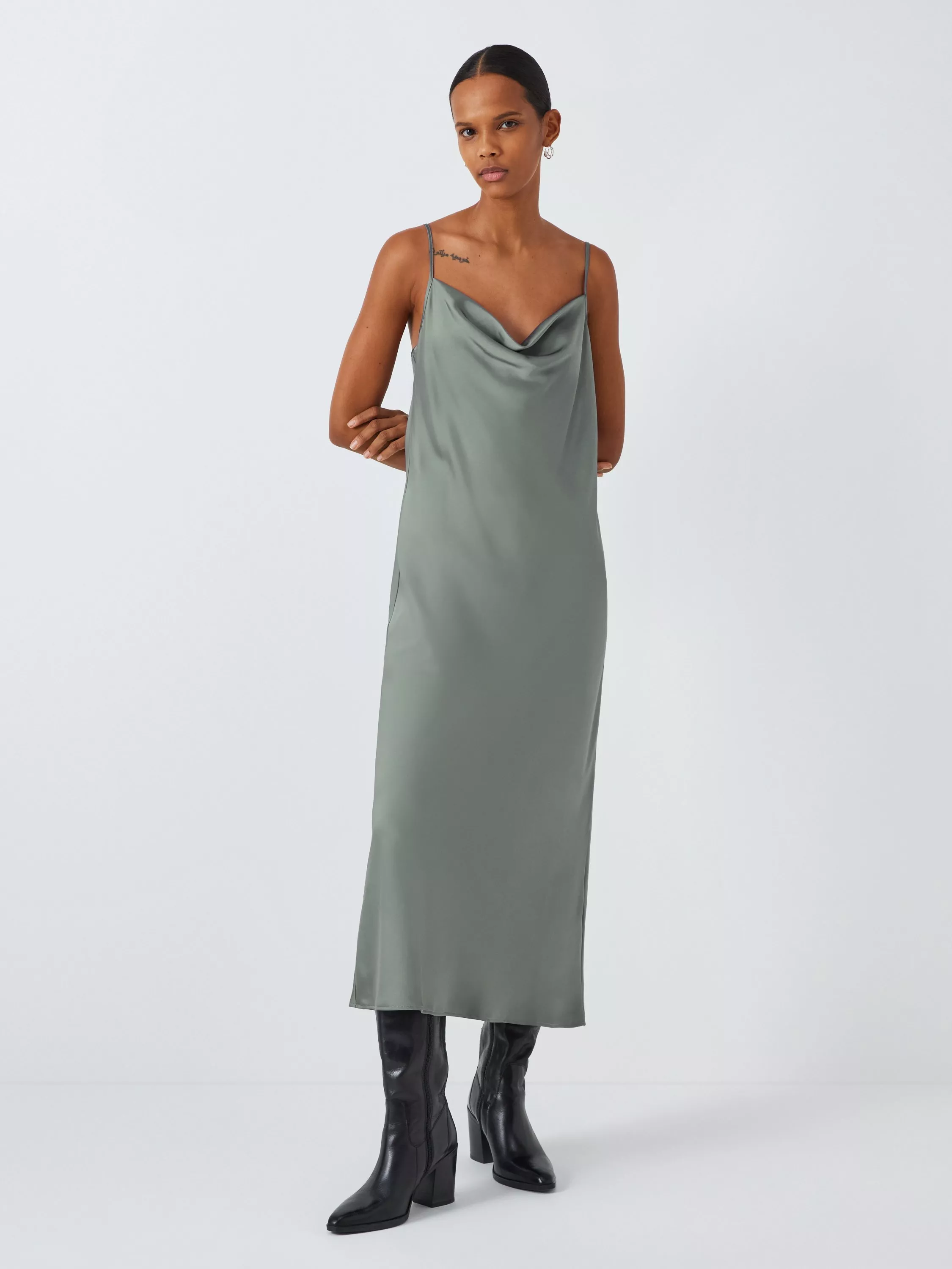 Effortlessly cascading down your figure, this mid-length dress from Marella is made with longevity thanks to its fabrication. Structured with a cowl neckline, this strappy style allows you to showcase its versatility.