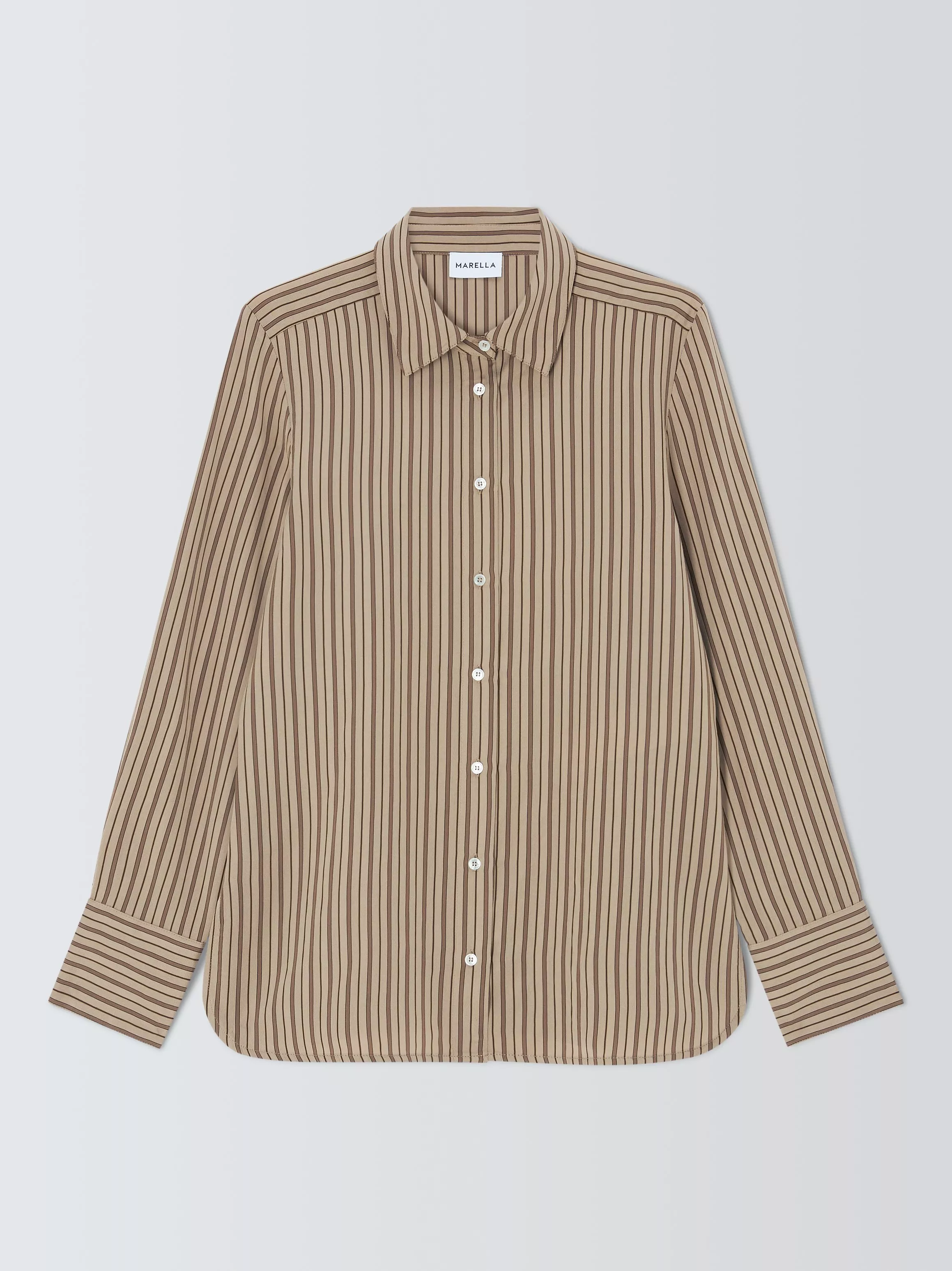 A smart, pinstripe shirt with classic collar and long sleeves.