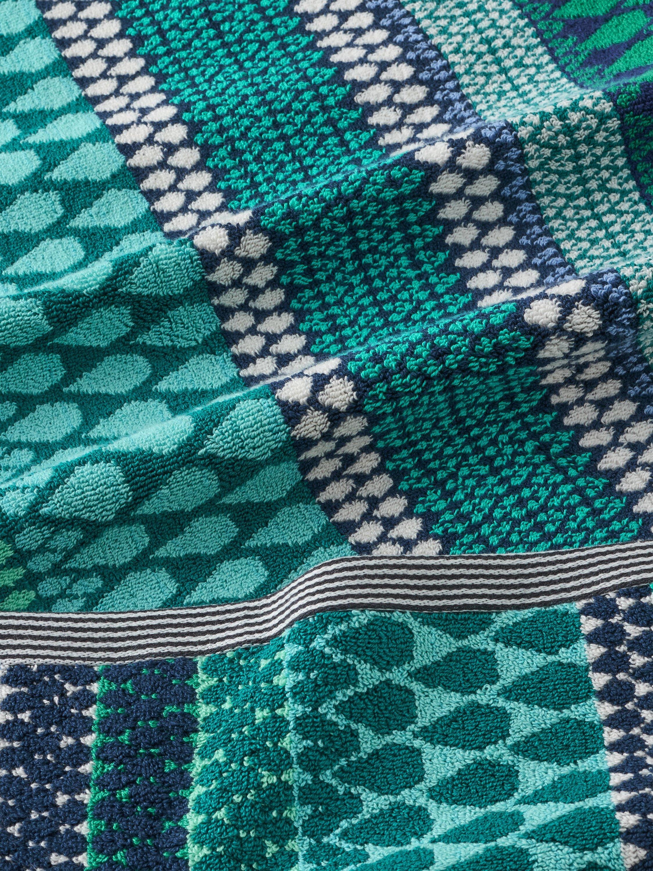 The Olivia design is derived from cut glass patterns, combined with broad stripes, providing a geometric structure to carry the vibrant colour combination. This bath mat provides an instant splash of enlivening colour.