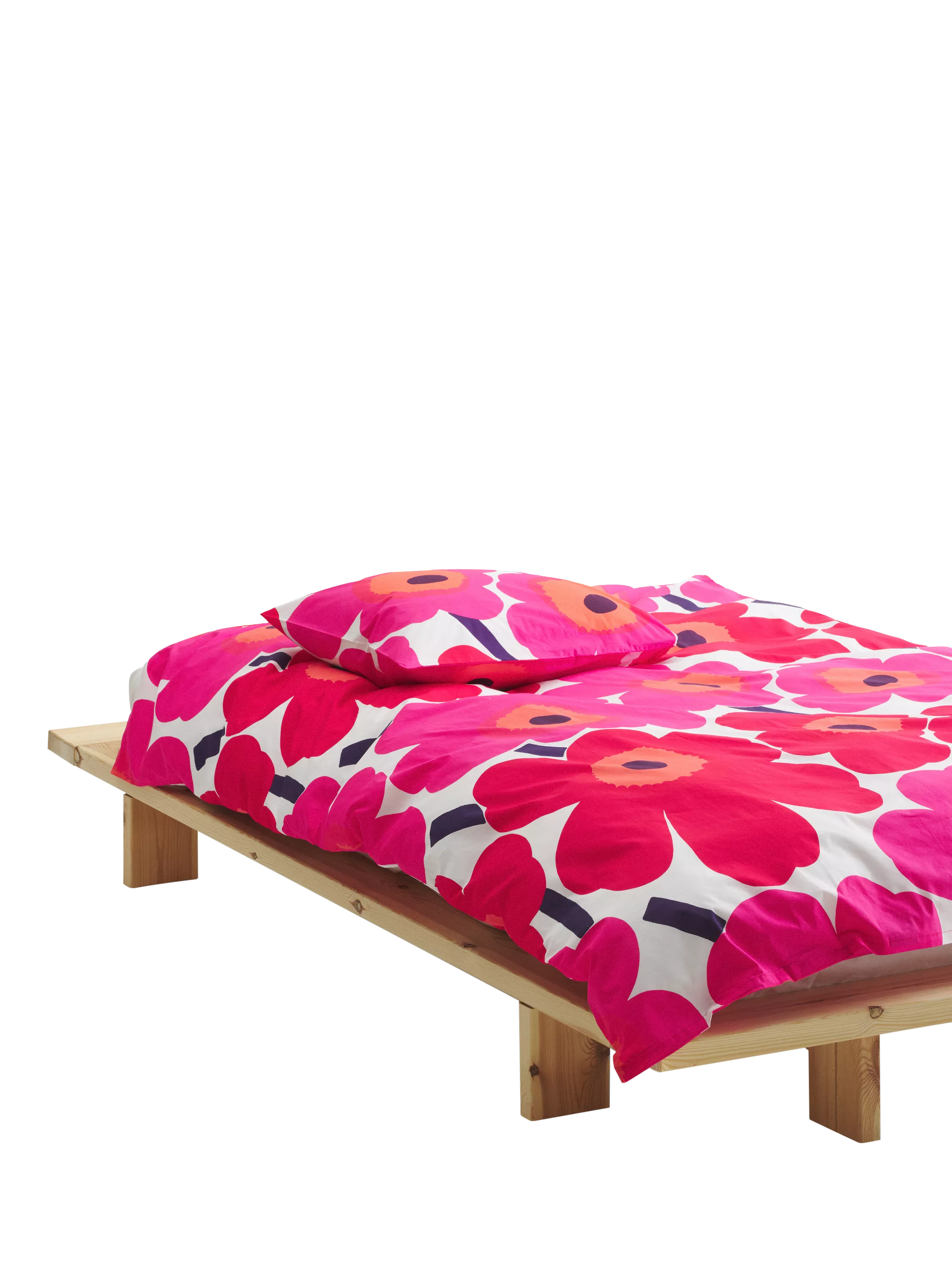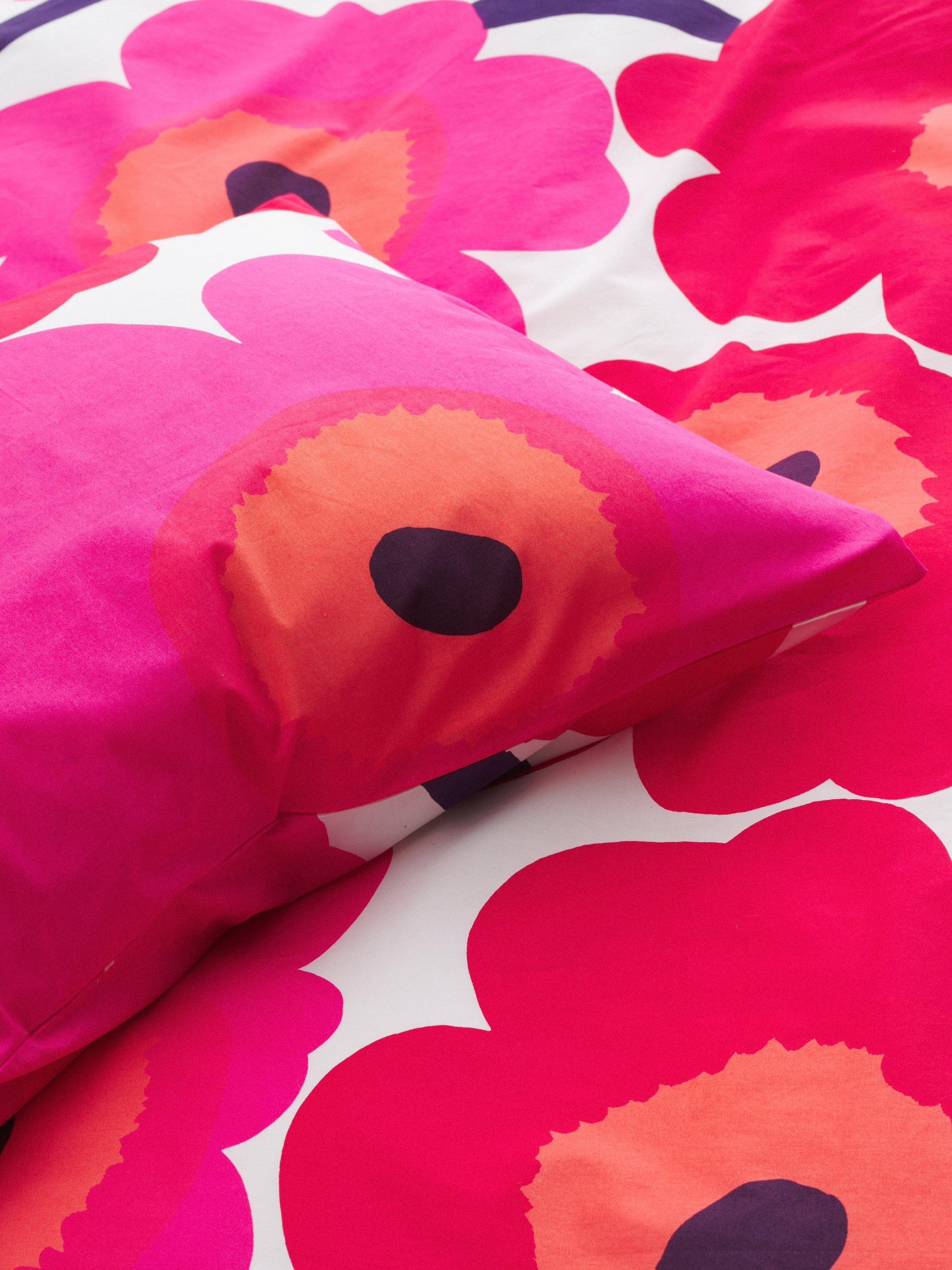 The classic Unikko pattern blooms on this cotton percale duvet cover.