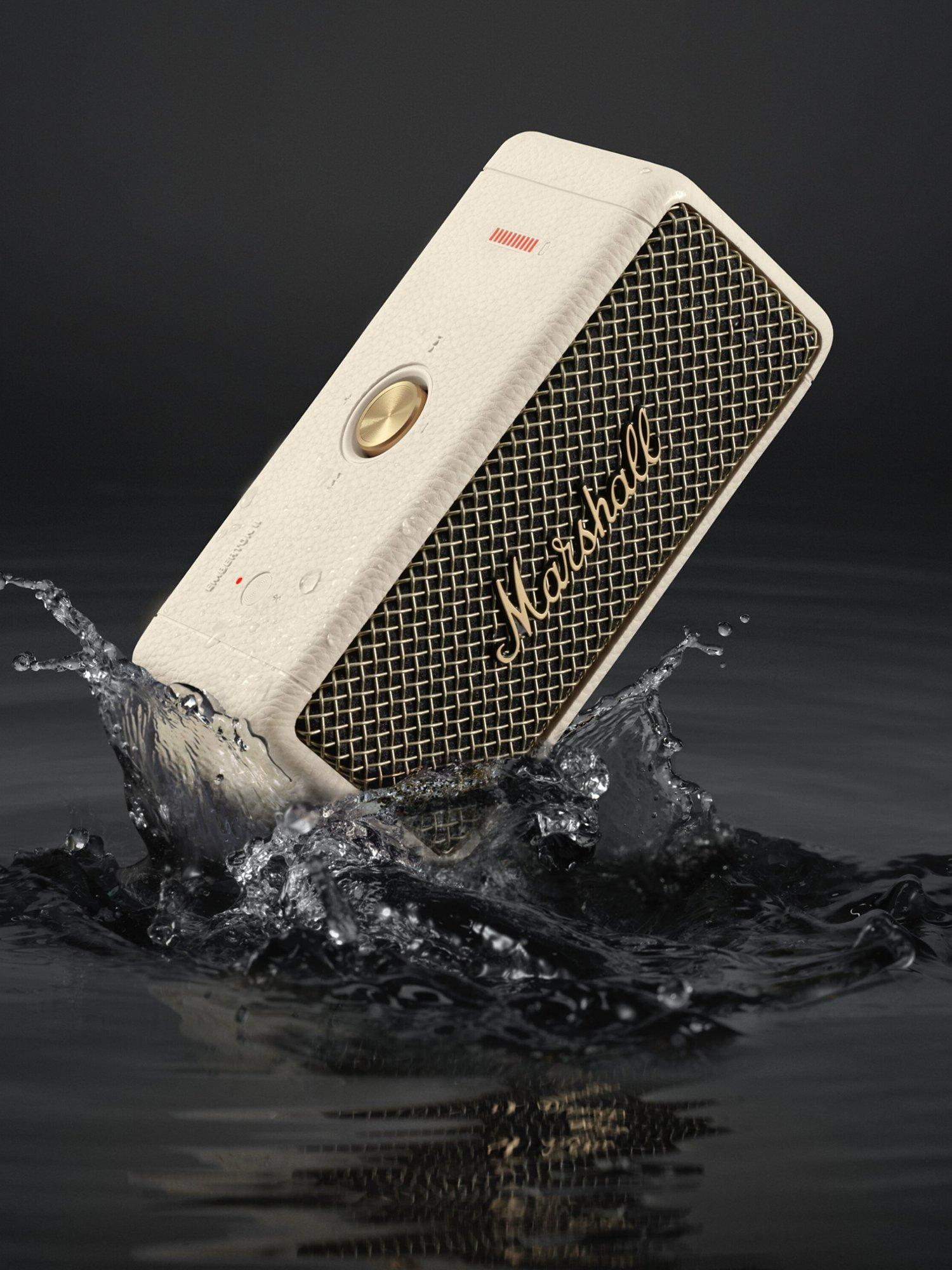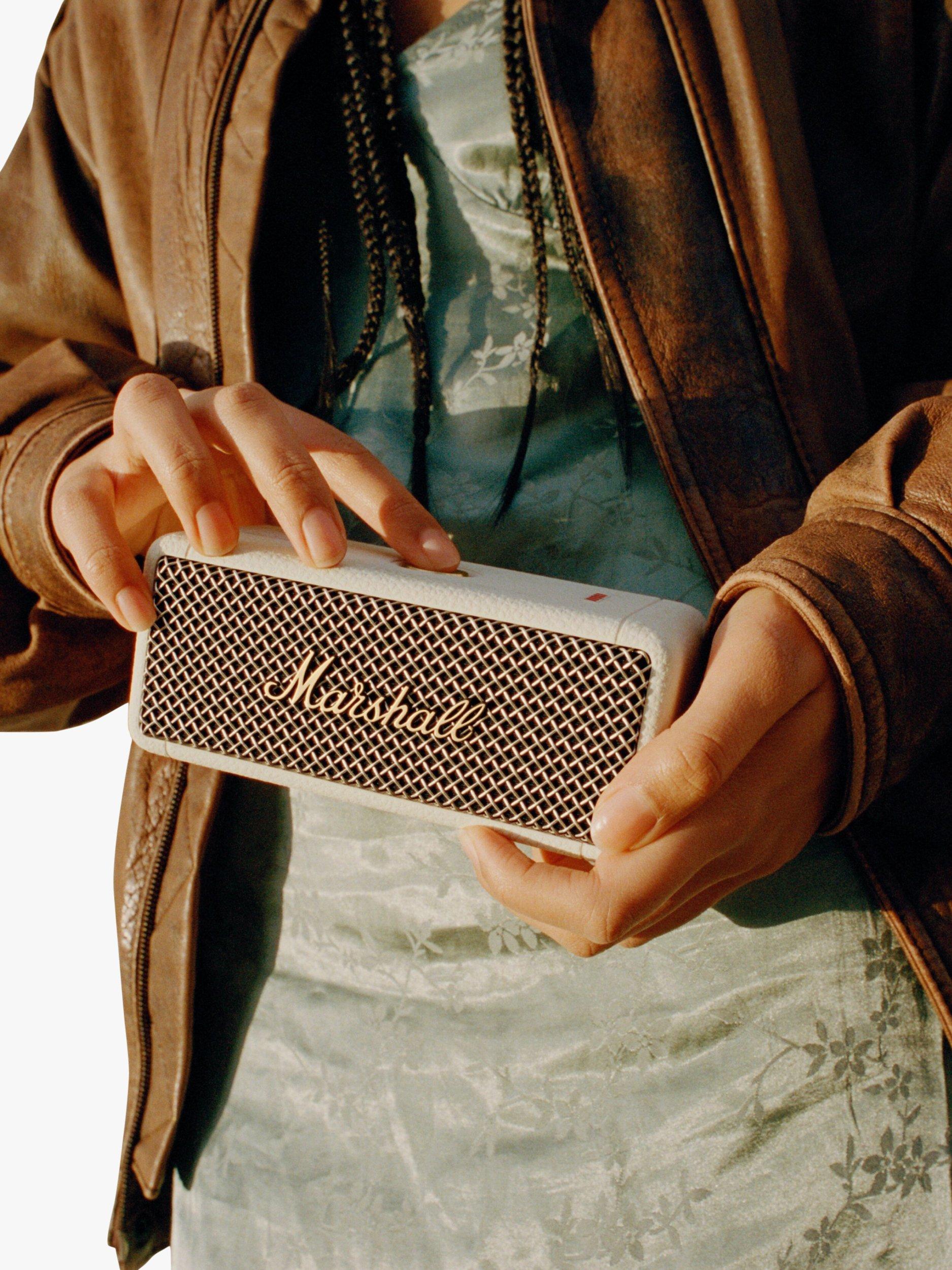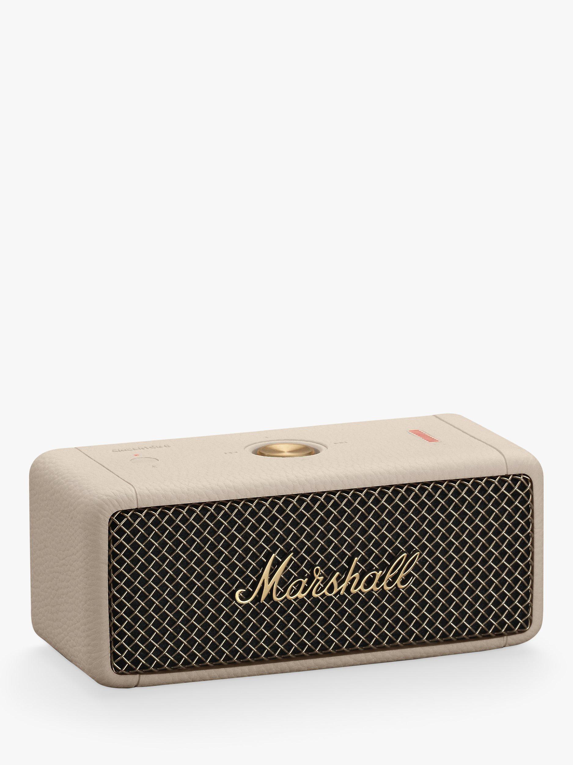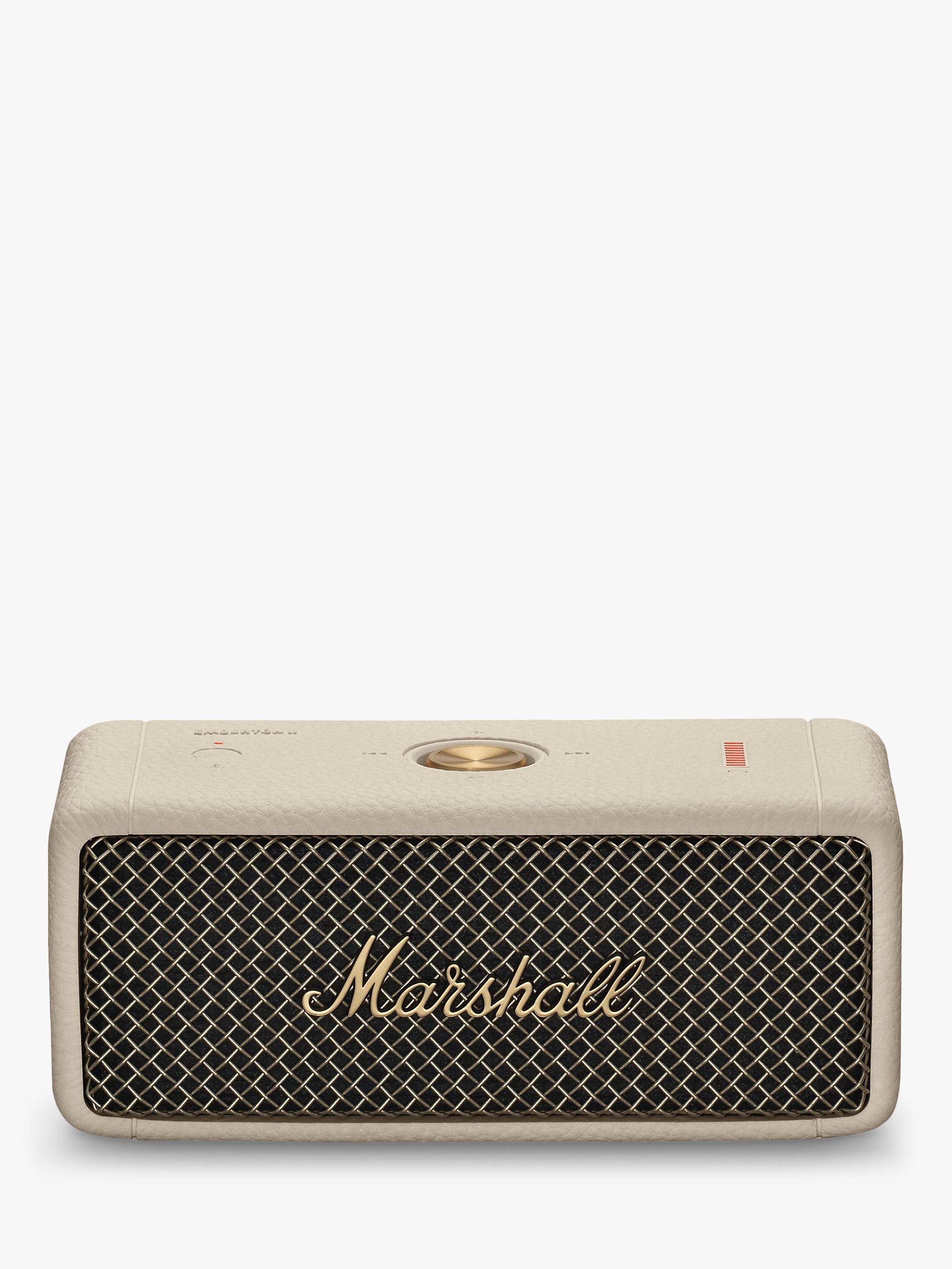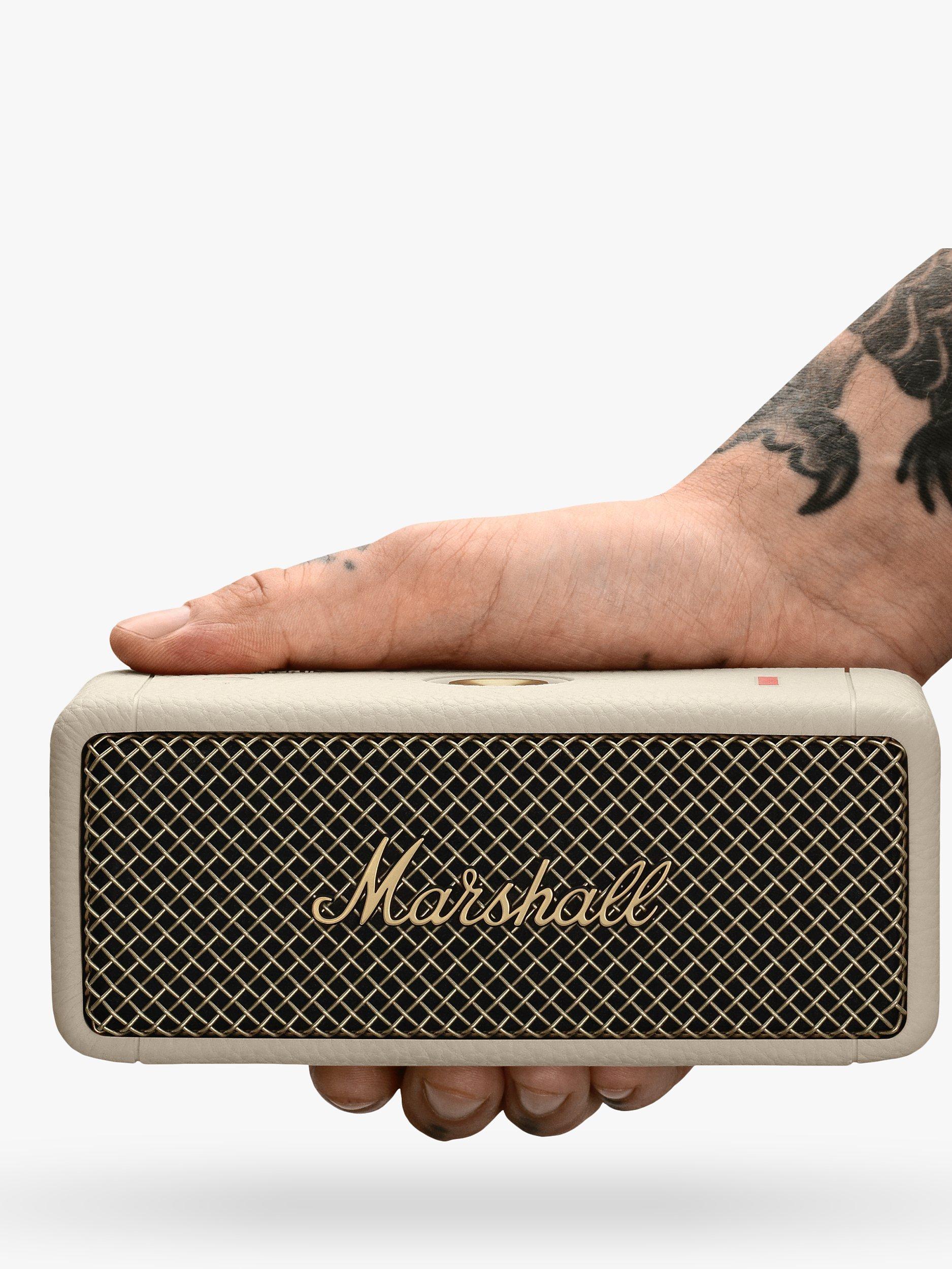 Upgraded on the original design, the eminently portable Emberton II is perfect for taking the rock-power Marshall sound on your travels. Weighing just 0.7kg, this light, resilient, compact Bluetooth speaker delivers up to an extended thirty hours of loud and vibrant portable music with a sound that belies its size.