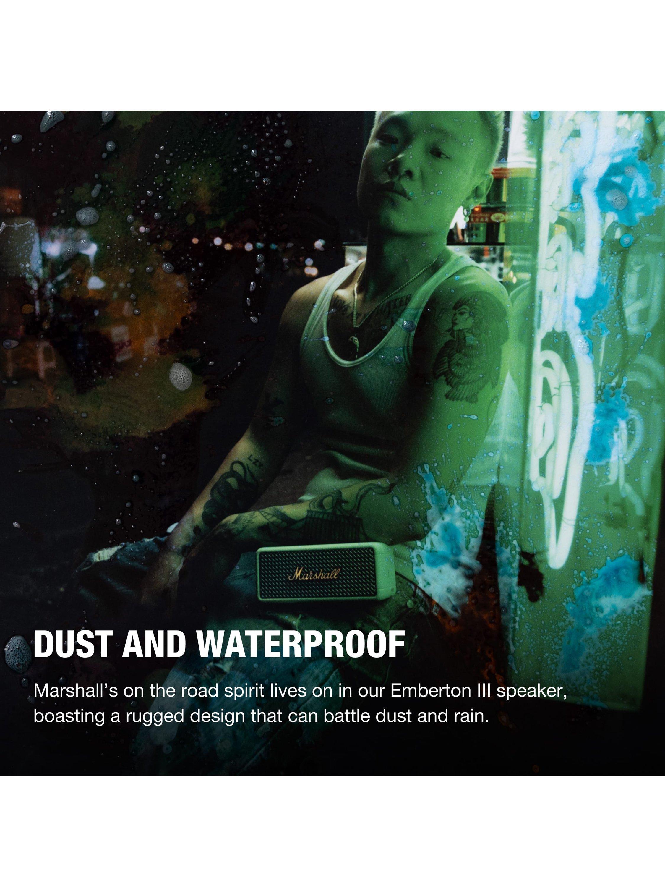 Marshall have also updated Emberton III’s design to make it more straightforward and convenient to use while staying true to its rock ’n’ roll heritage. The classic grill, textured sleeve and iconic Marshall script hark back to the company’s legendary amps, with the added benefit of a built-in mic.