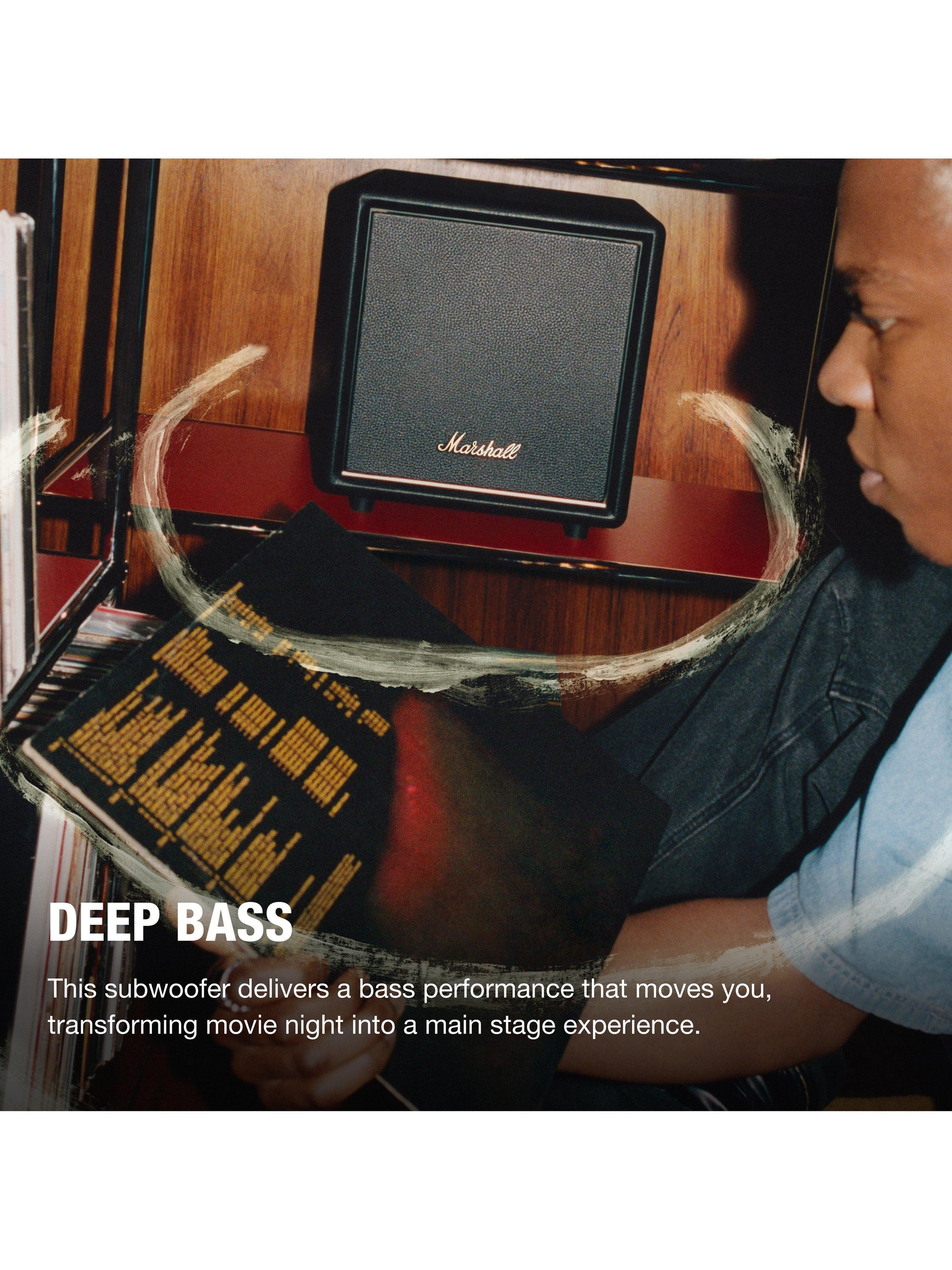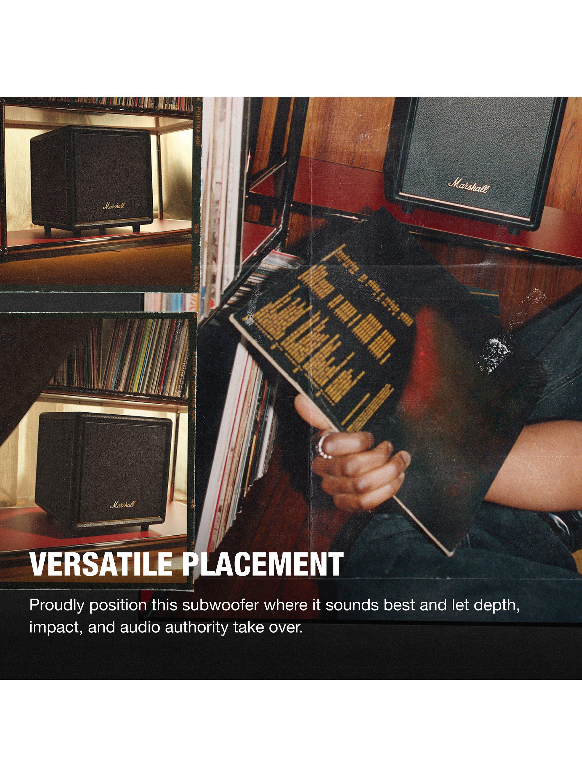 Bring home the lifelike rumble that only decades of soundstage mastery can deliver. Classic in design, colossal in performance, Heston Sub 200 makes a foundation-shaking statement. Designed to fit seamlessly into your home, this subwoofer delivers next-level bass wherever it stands. Wireless pairing to Marshall’s TV sound line-up makes the set-up simple.