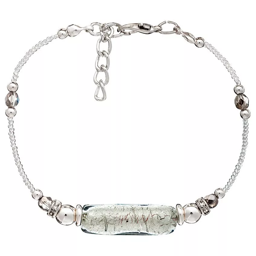 The fashionable piece reinvents the classic chain design. It is presented with various faceted Murano glass beads with a prominent rectangular-cut element taking centre stage. The bracelet has an adjustable chain with a lobster clasp.