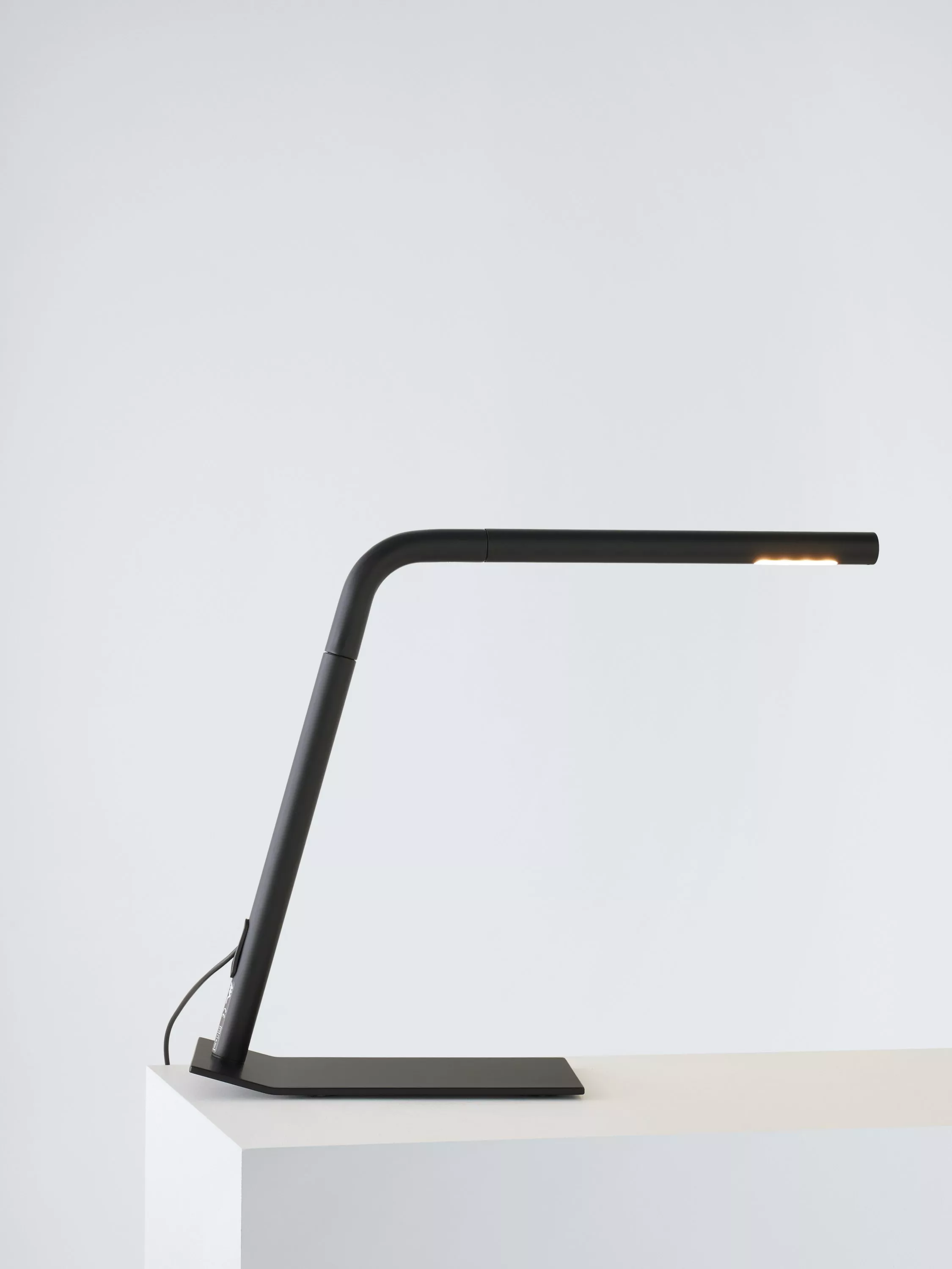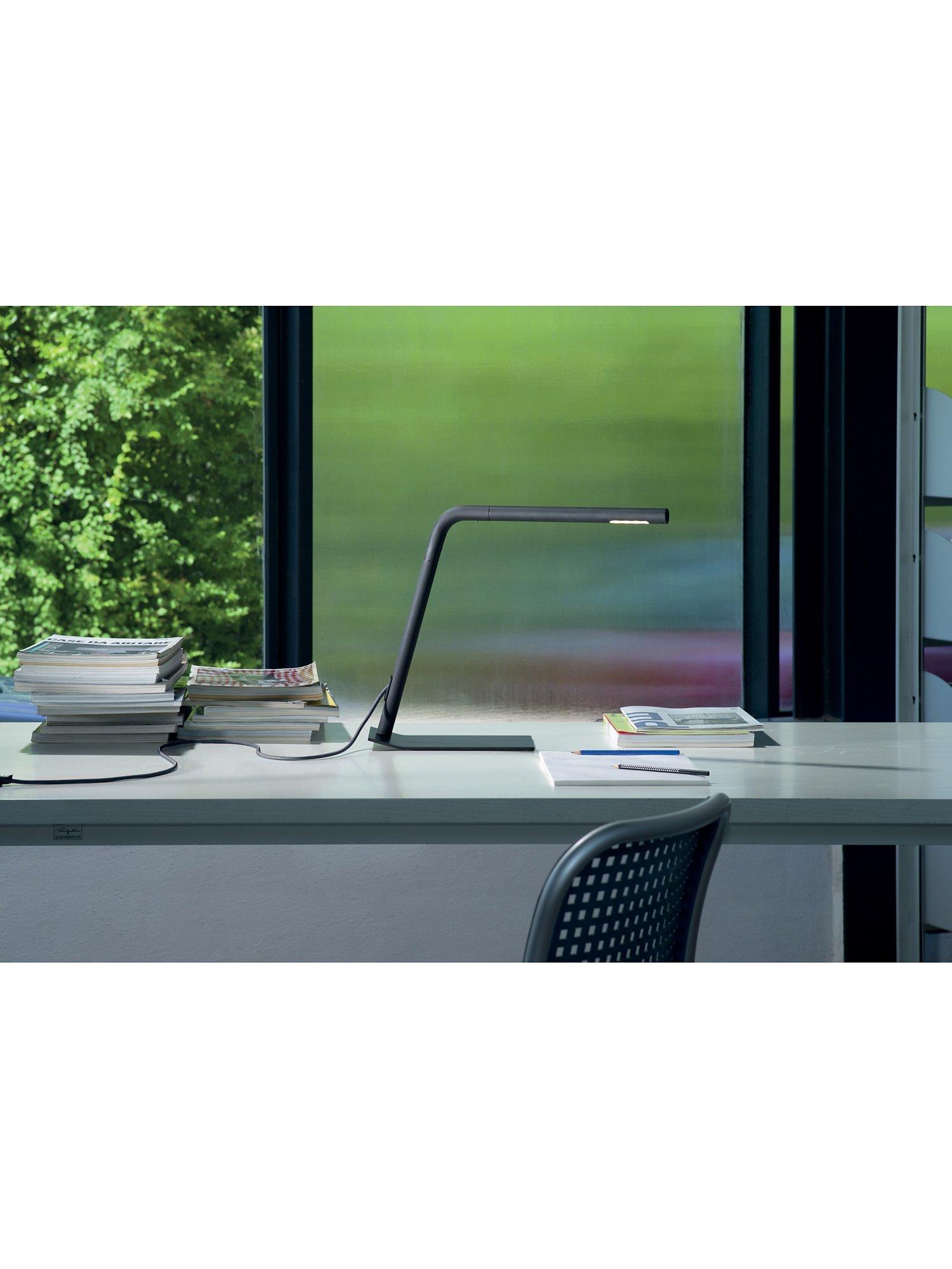 Designed in 1968 by Elio Martinelli and made in Italy for Martinelli Luce, this direct light reading lamp features two sleek resin bodies. The lower part turns on a steel base to give you 360-degree rotation and control of the light, making it ideal for home office desks and reading nooks.