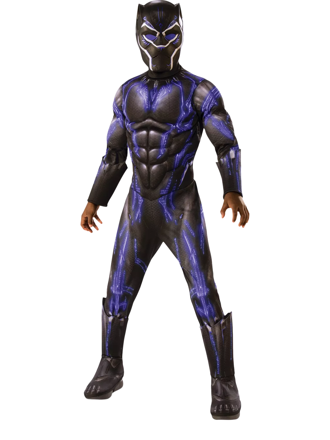 Feel the power of Wakanda with the Rubies Black Panther costume. This officially licensed ensemble includes a bodysuit with muscle chest details as well as a detailed mask to complete the transformation into the legendary hero. Perfect for cosplay or themed events, this costume embodies strength and style. Wakanda forever!
