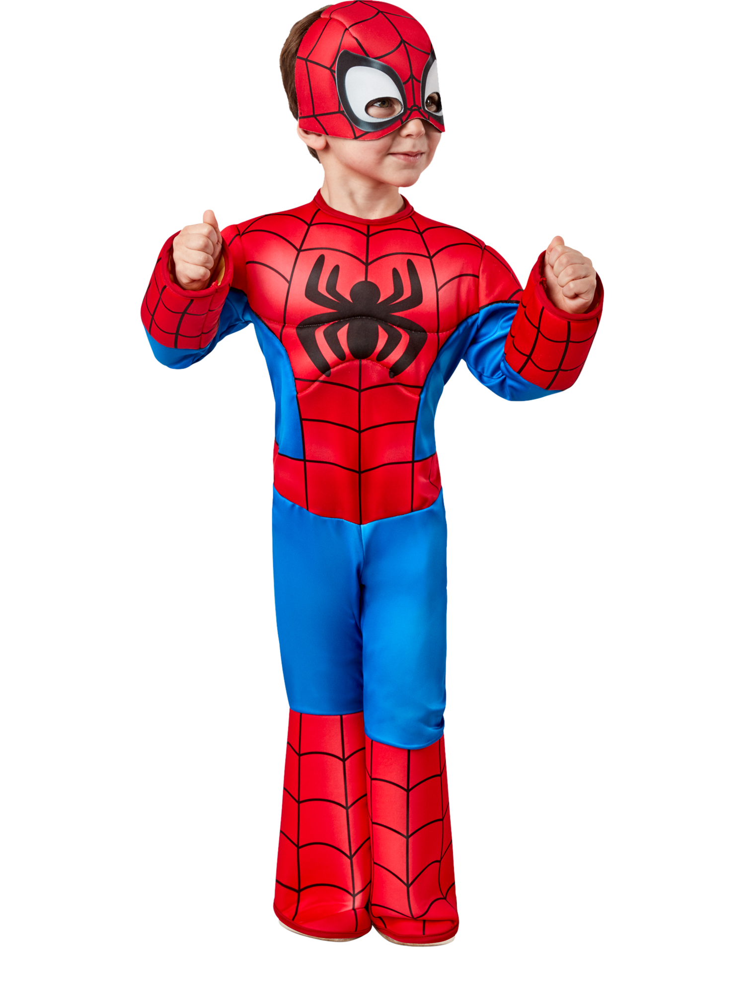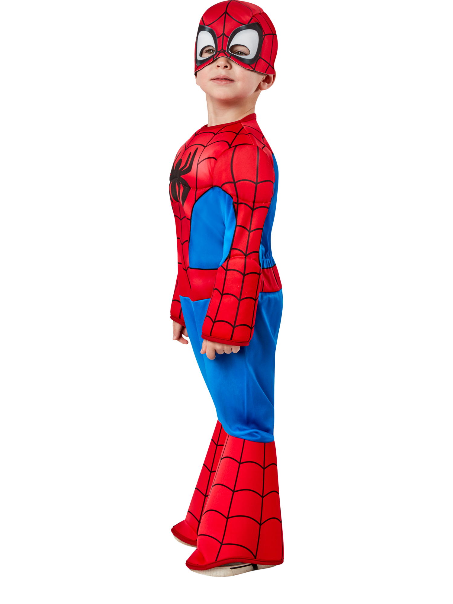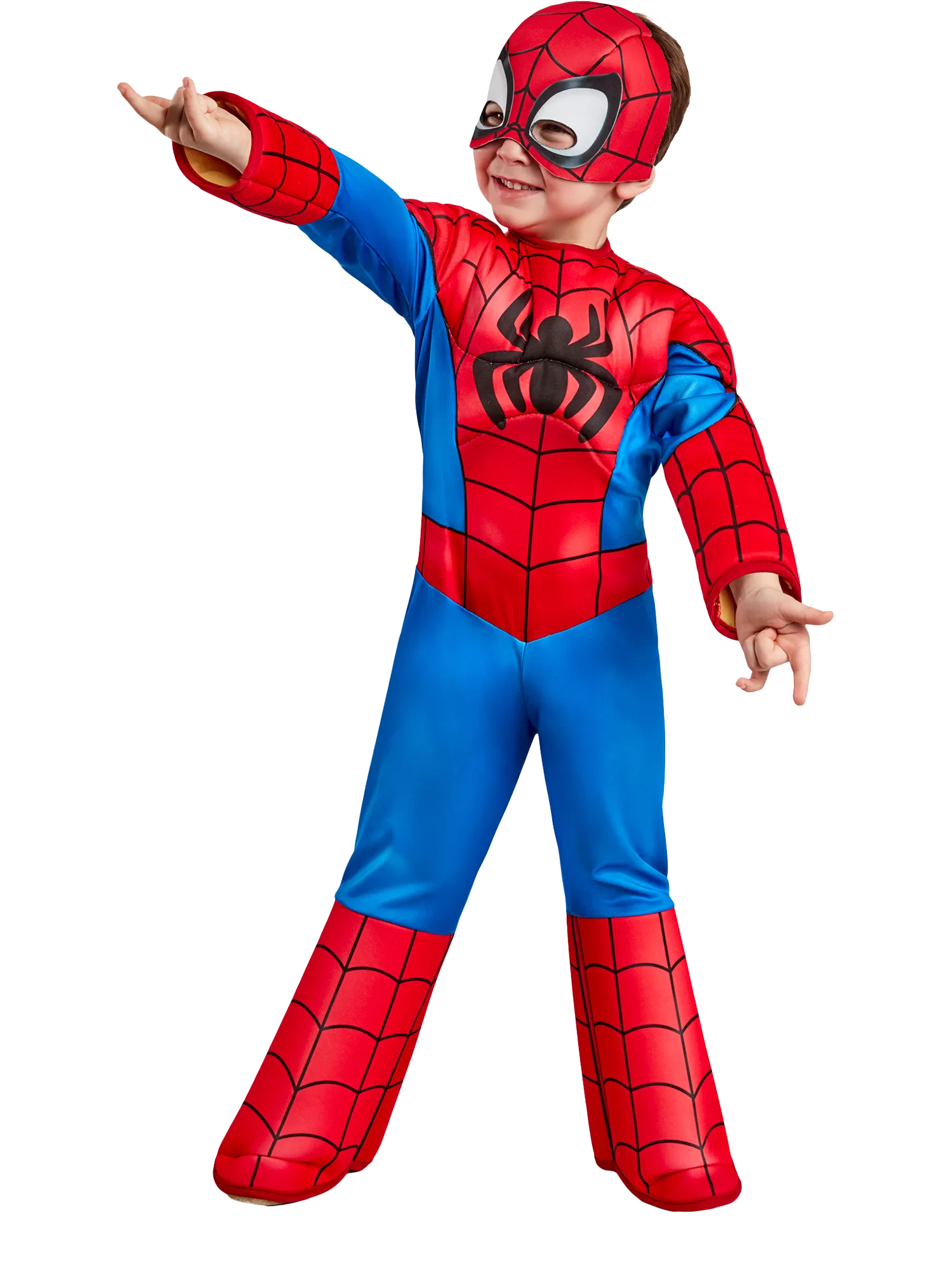 Spidey senses will tingle with delight with this super adorable Spider-Man toddler costume featuring padded chest and arms jumpsuit, along with a fabric headpiece. Swing into action and pick up the perfect present for any dress-up occasion this year.