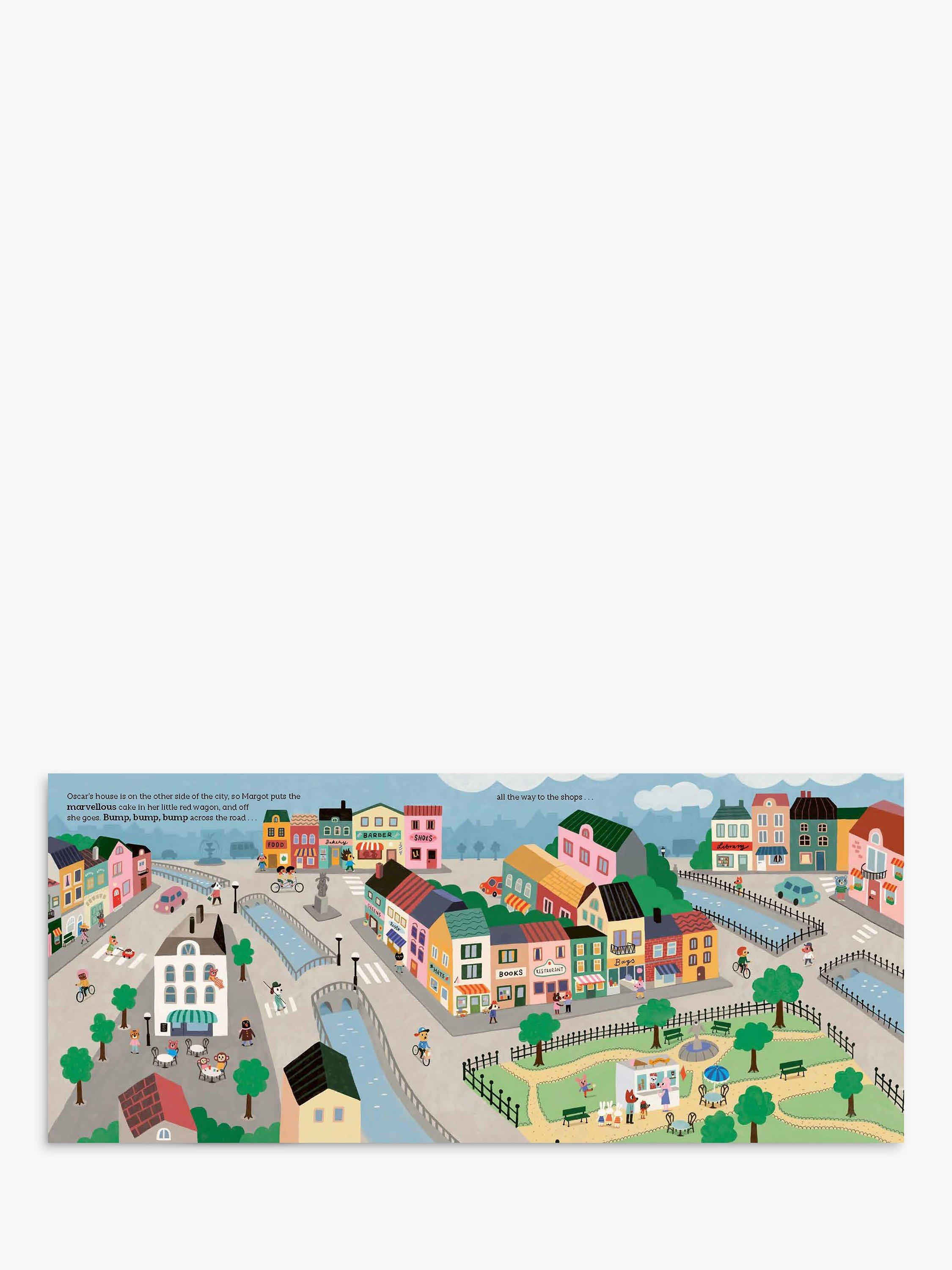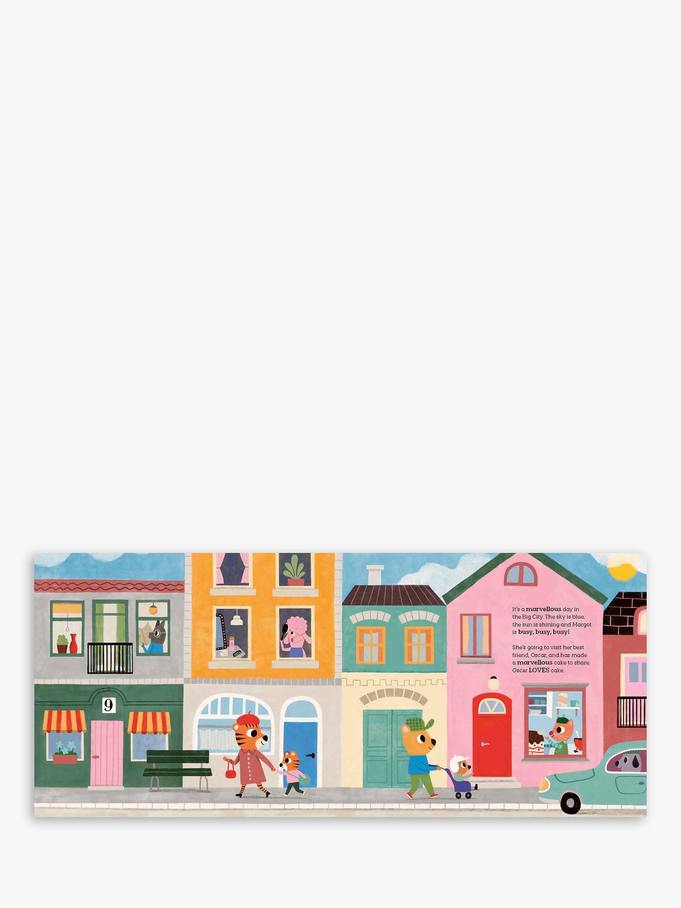 It's a marvellous day in the big city. The sky is blue, the sun is shining, and Margot has made a delicious cake for her best friend Oscar! Margot takes her little red wagon and off she goes with cake in tow. But by the time she reaches Oscar's house after having helped all her friends along the way, will there be ANY cake left to share?